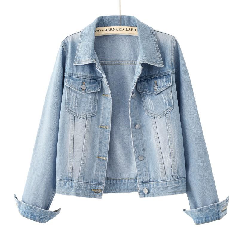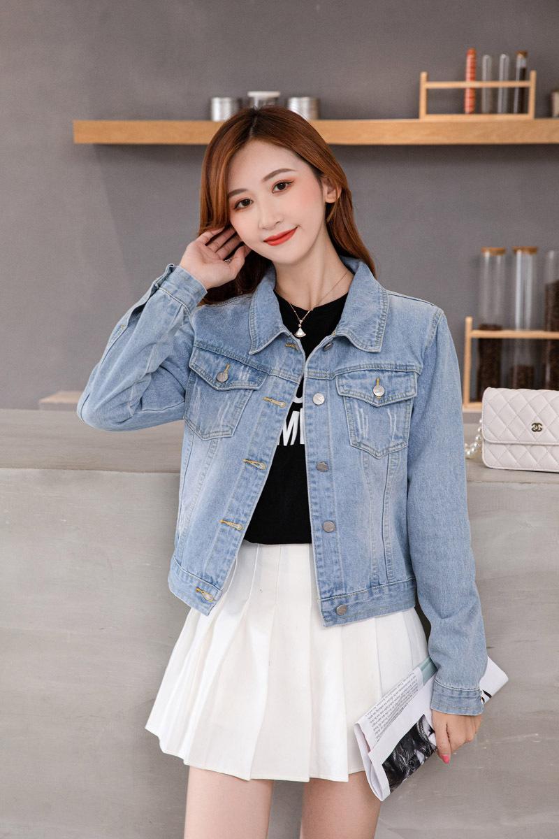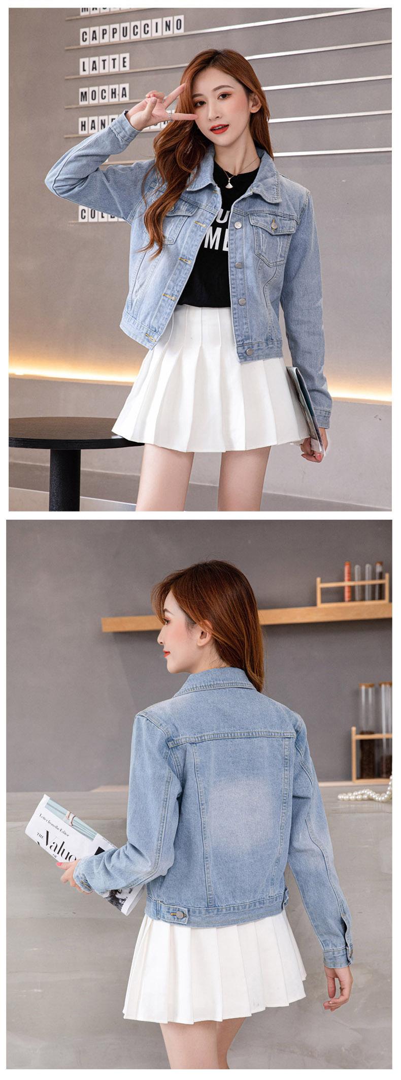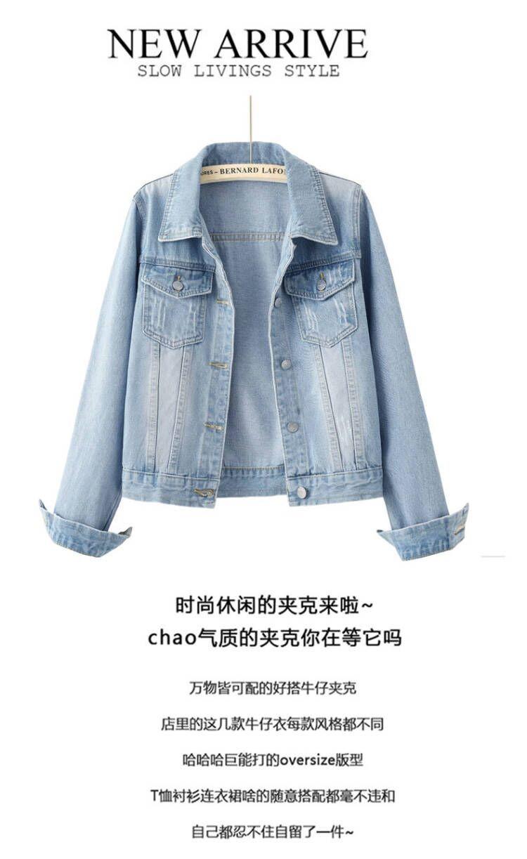 Foto Real de Chaqueta de Mezclilla para Mujer Primavera y Otoño 2024 Nuevo Estilo Coreano Diseño Holgado Versátil Estilo Hong Kong Chaqueta de Trabajo Top