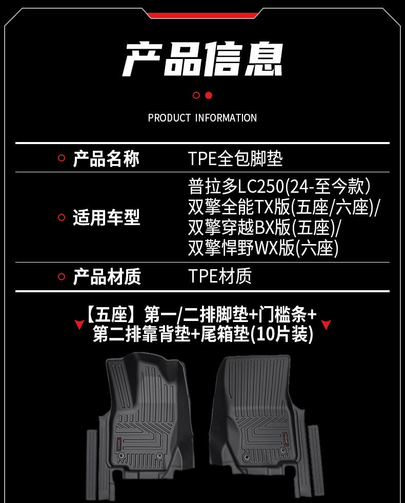 2024-present prado lc250 special floor mat + trunk mat + backrest mat seven seats right-hand drive - 9 pieces