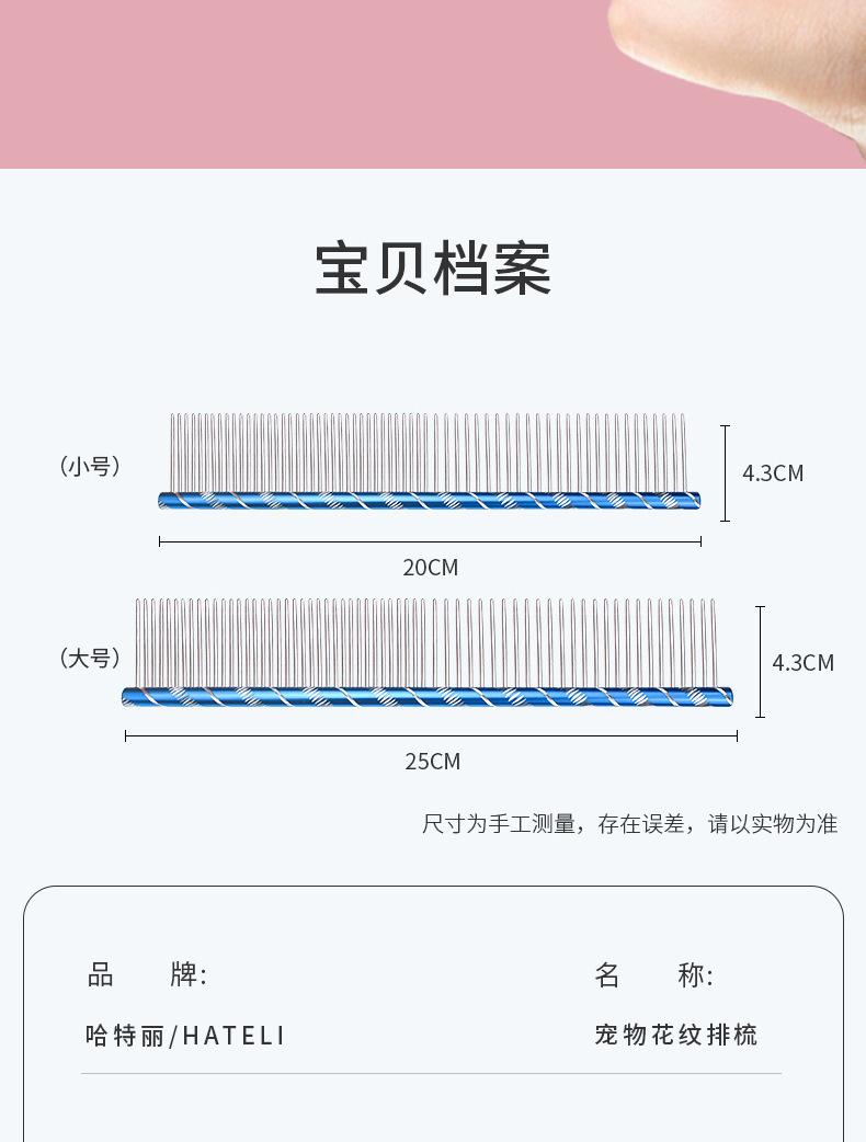 Peine para Perro Mascota Teddy Peine de Filas Suministros Peine de Acero Perro de Pelo Largo Perro Grande Apertura de Nudos Belleza Estilismo 20cm