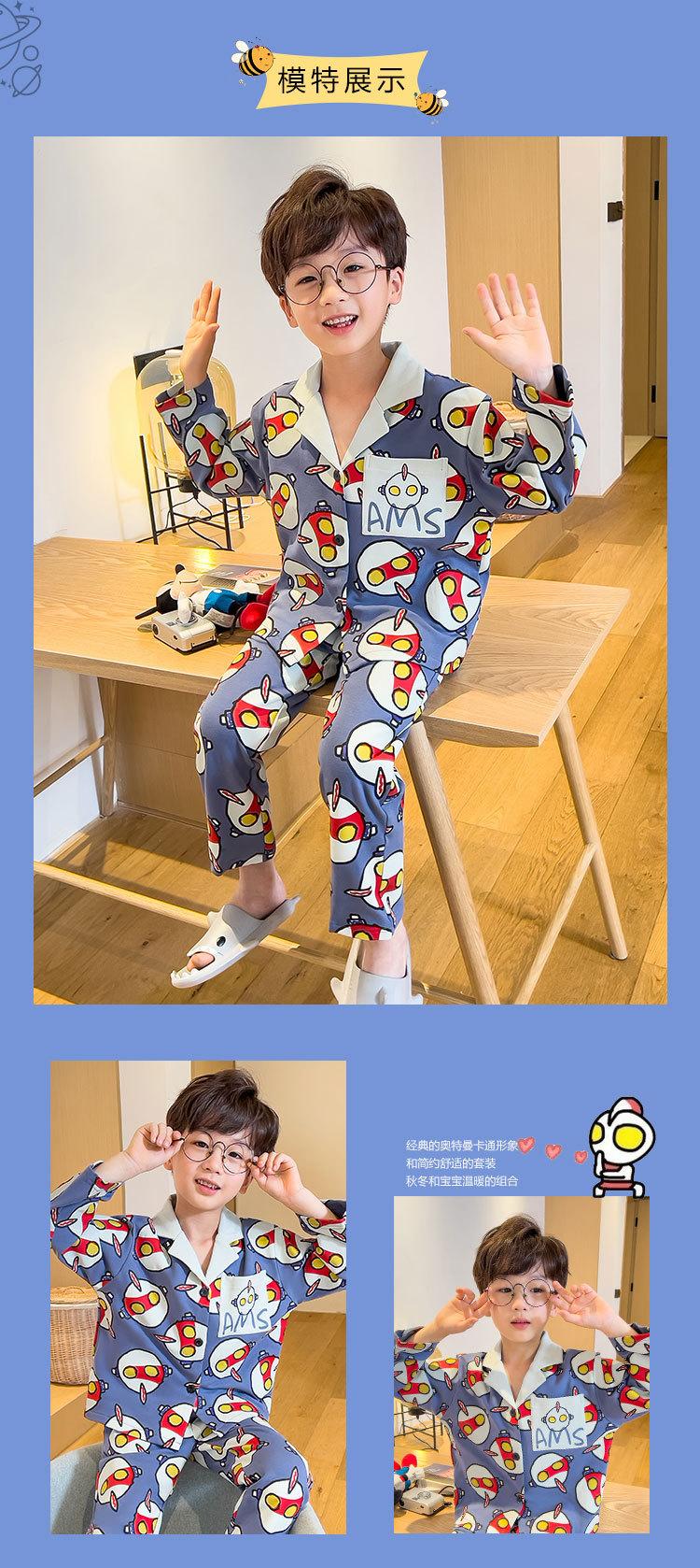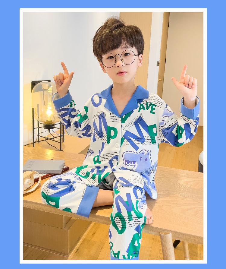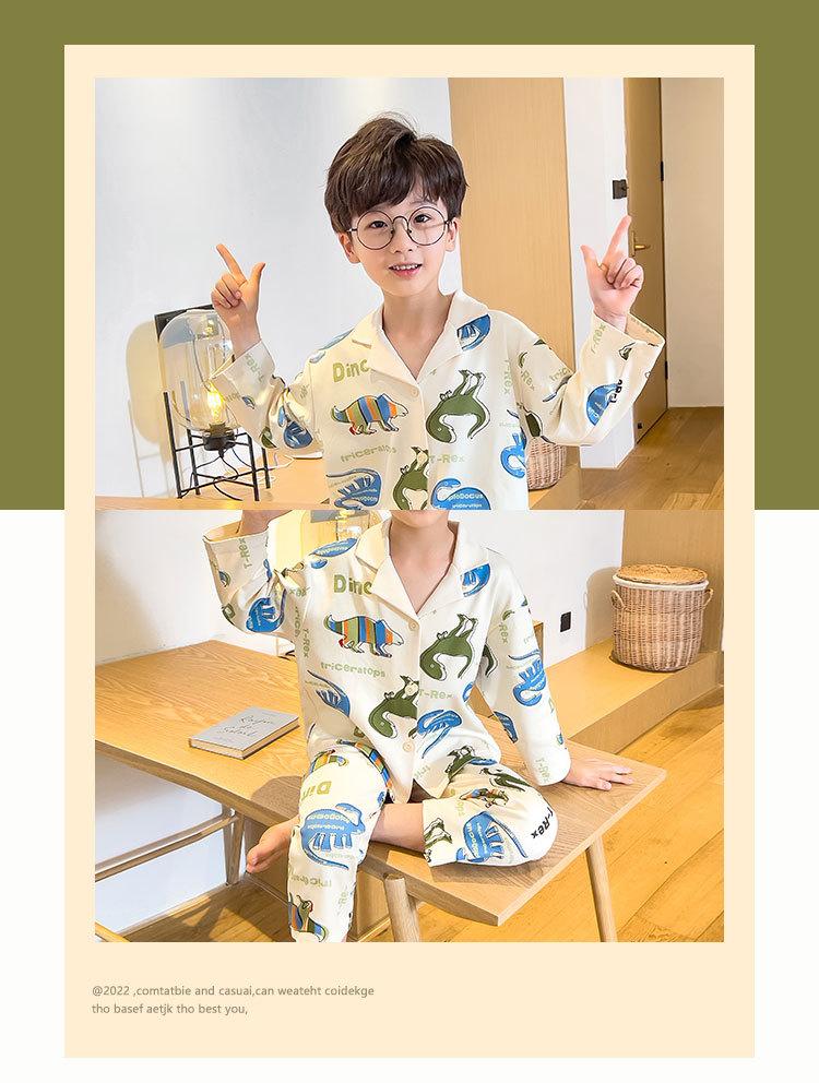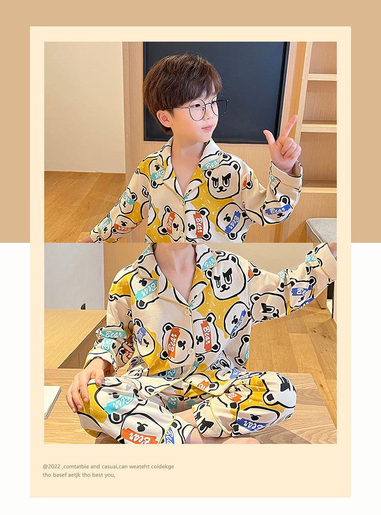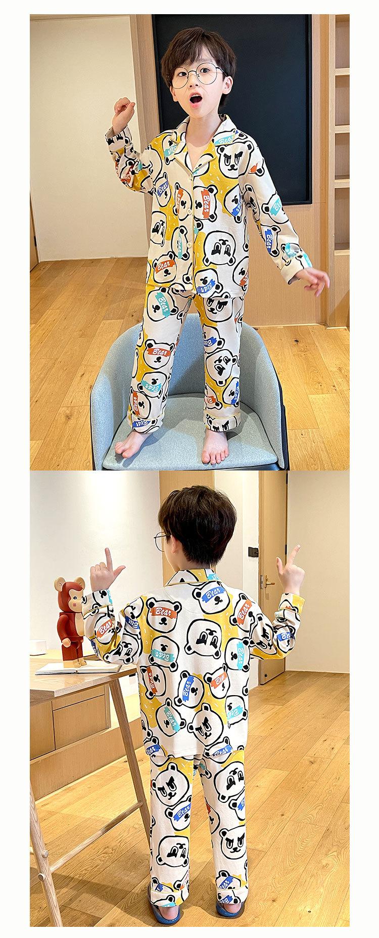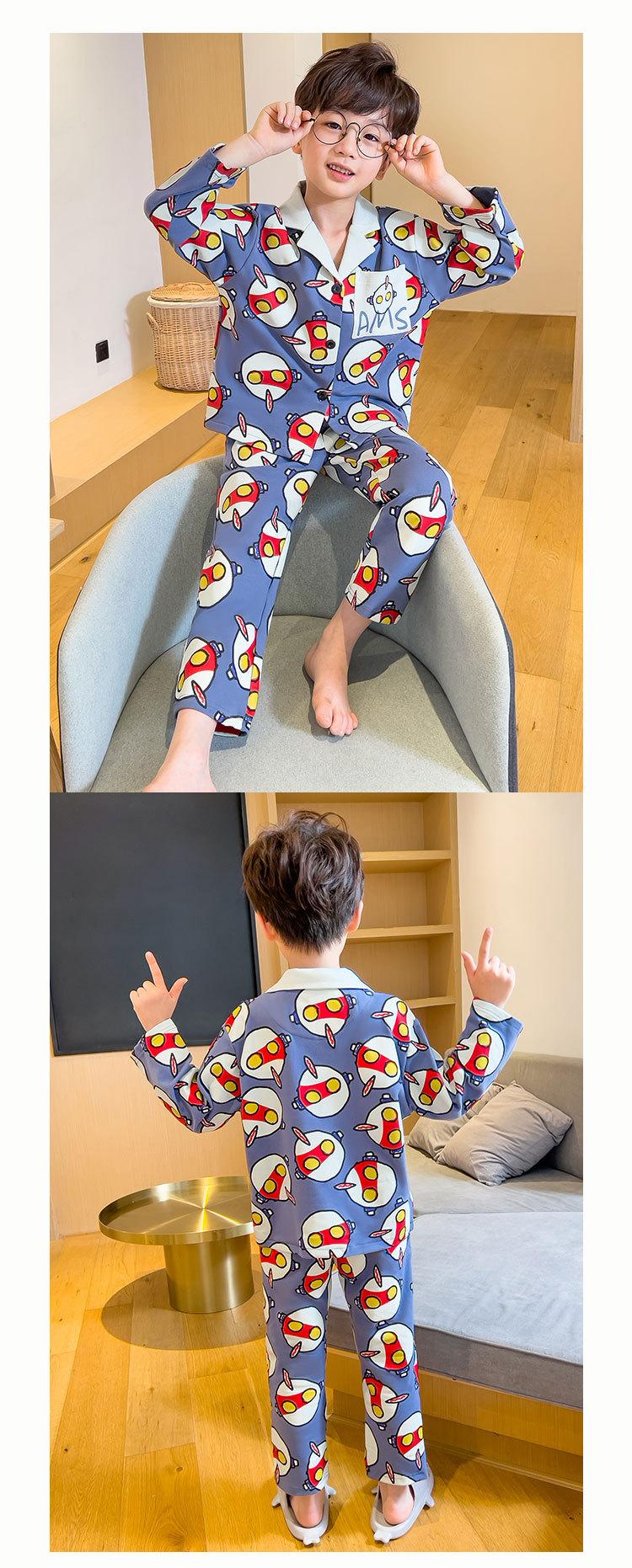 Pijamas para niños Primavera y Otoño manga larga algodón peinado pijamas para niños caricatura cárdigan para niños medianos y grandes ropa de casa