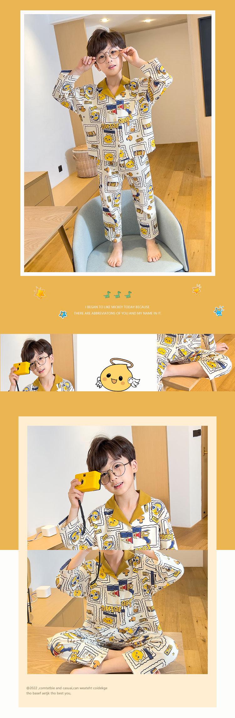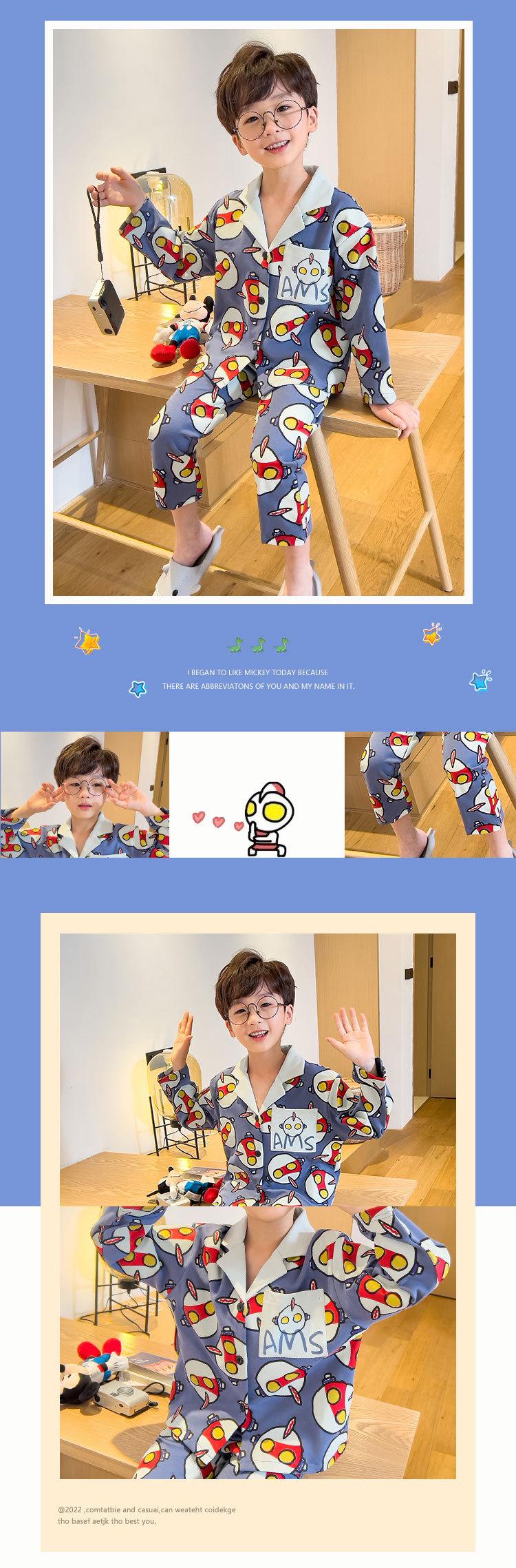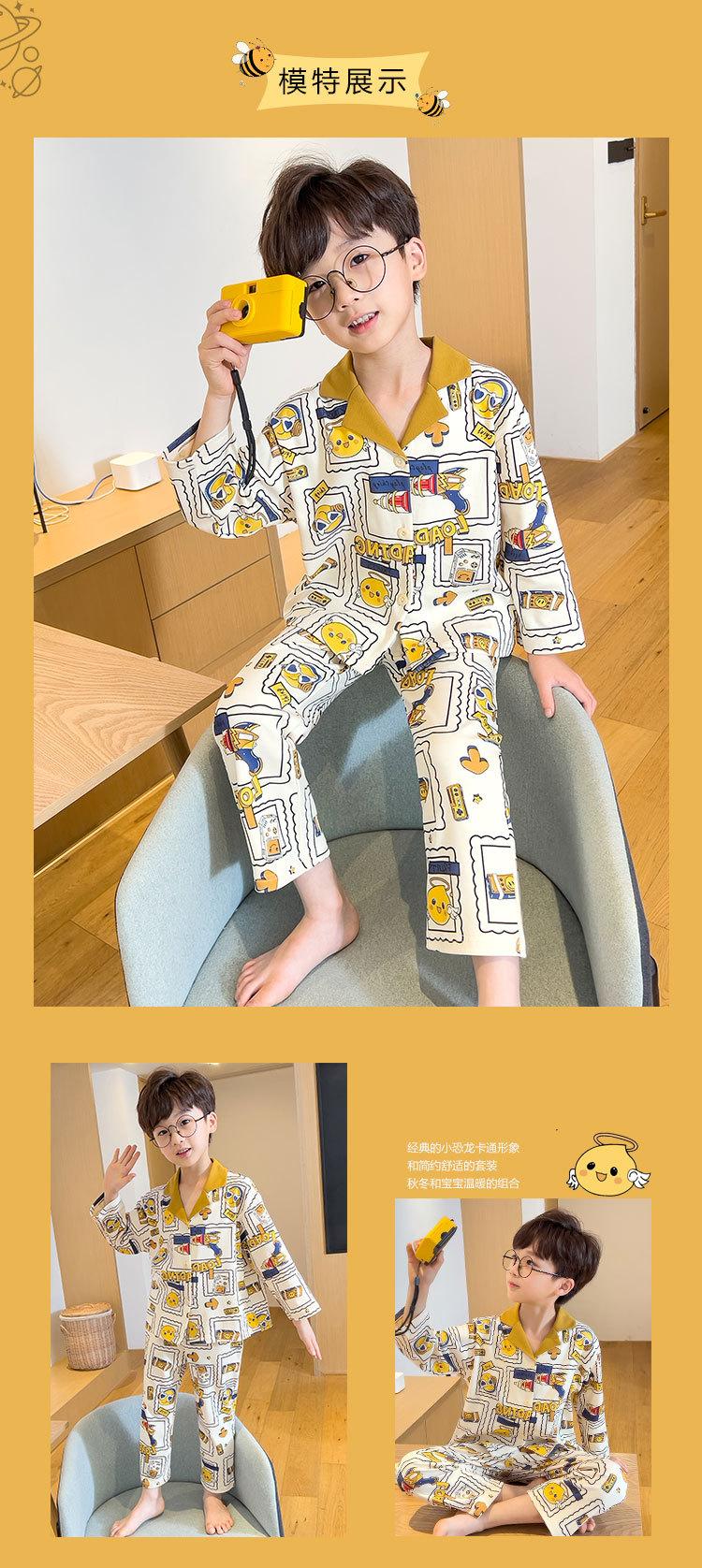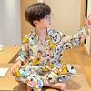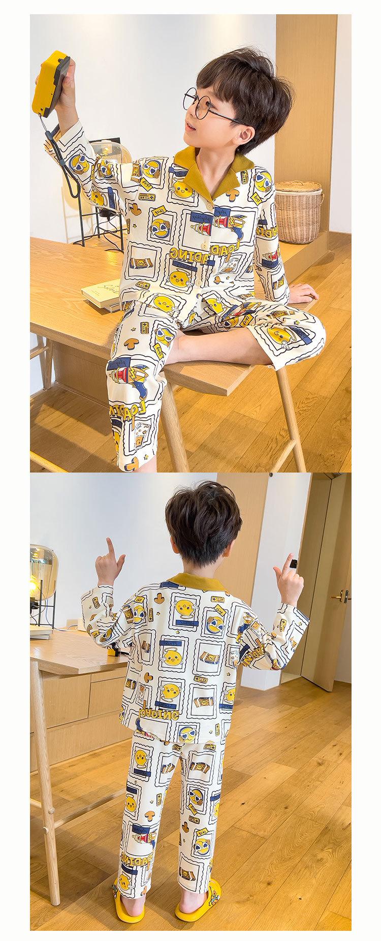 Pijamas para niños Primavera y Otoño manga larga algodón peinado pijamas para niños caricatura cárdigan para niños medianos y grandes ropa de casa