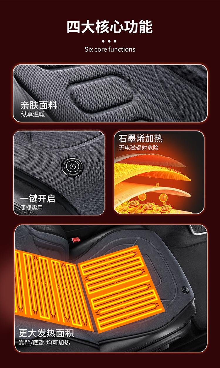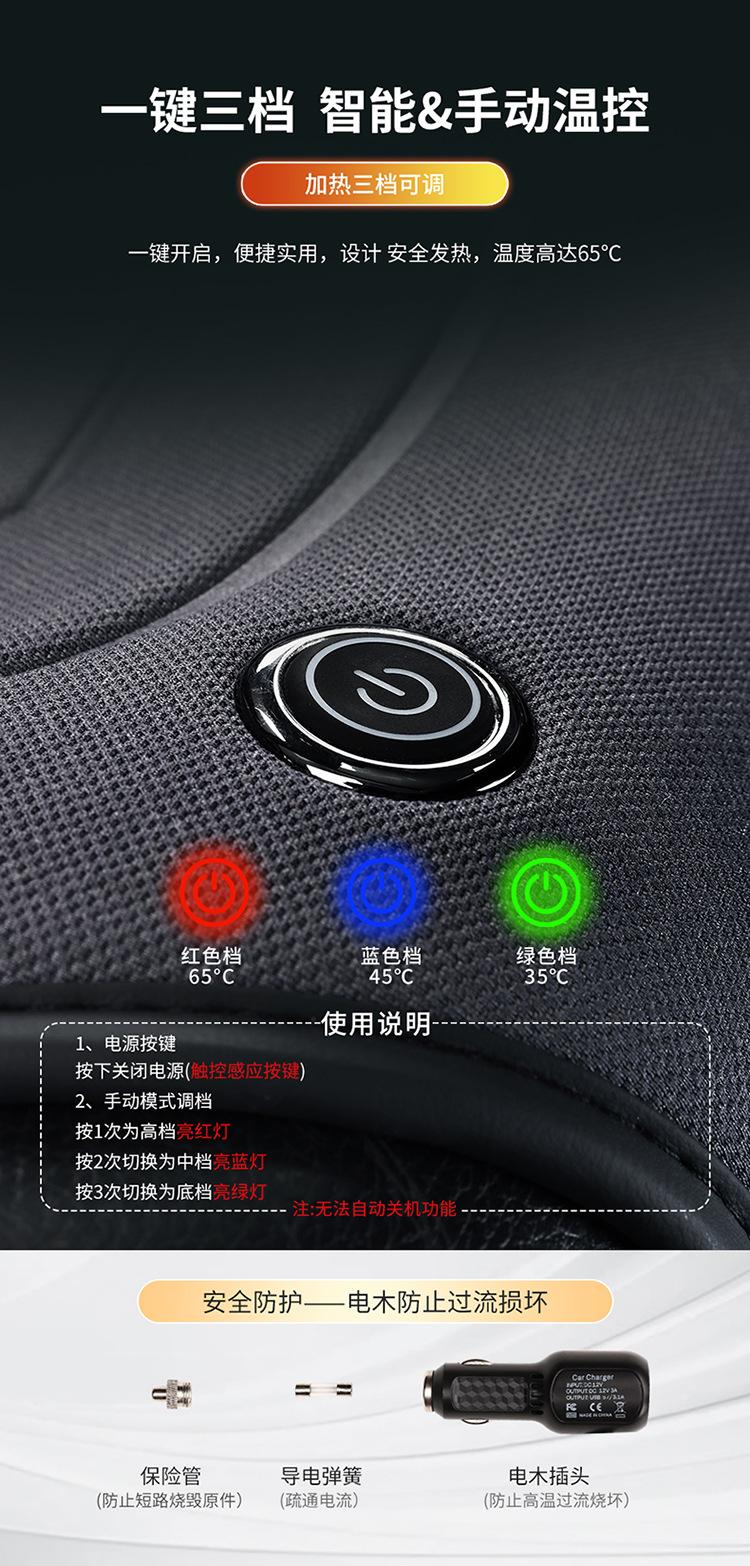 Cojín Calefactable para Asiento de Coche por Inducción Invierno Cálido Almohadilla para Asiento Calefacción de Grafeno Enchufe Encendedor de Cigarrillos 12V/24V Universal