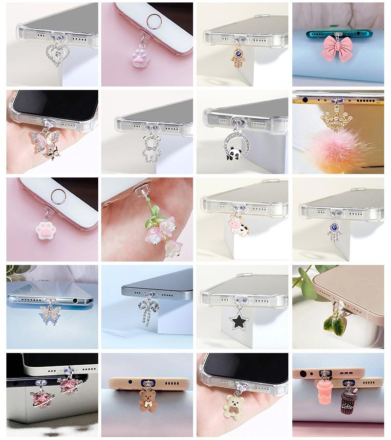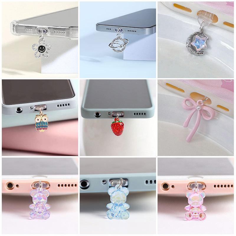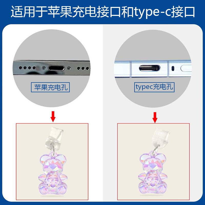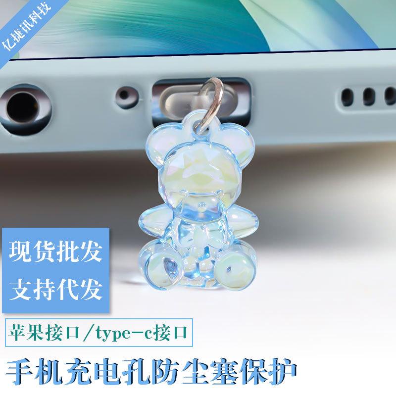 Tapón antipolvo con diseño de oso transfronterizo para el orificio de carga del teléfono móvil Apple, tapón antipolvo con interfaz de auriculares tipo C de dibujos animados, tapón de goma