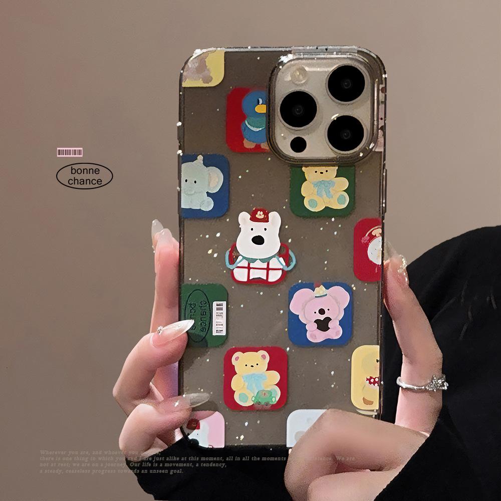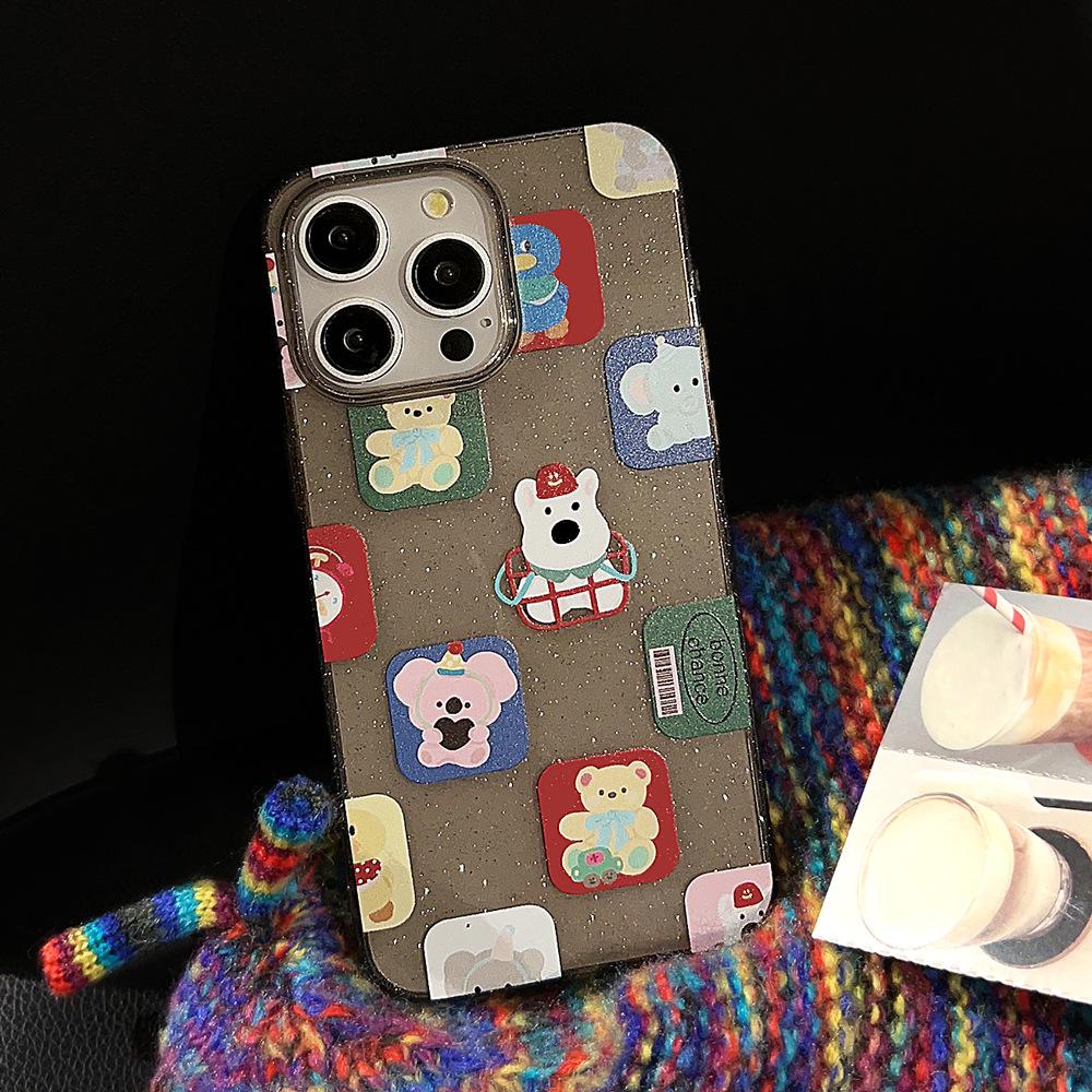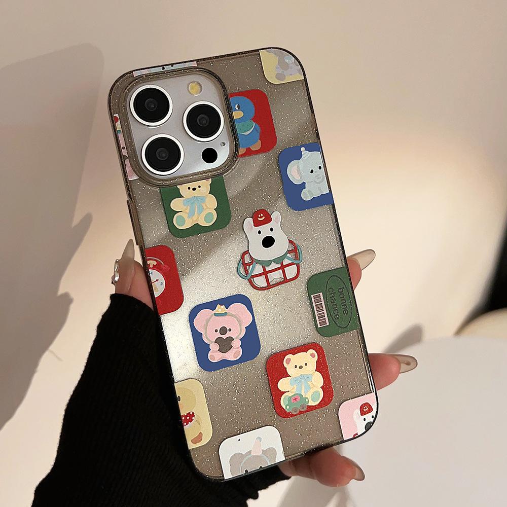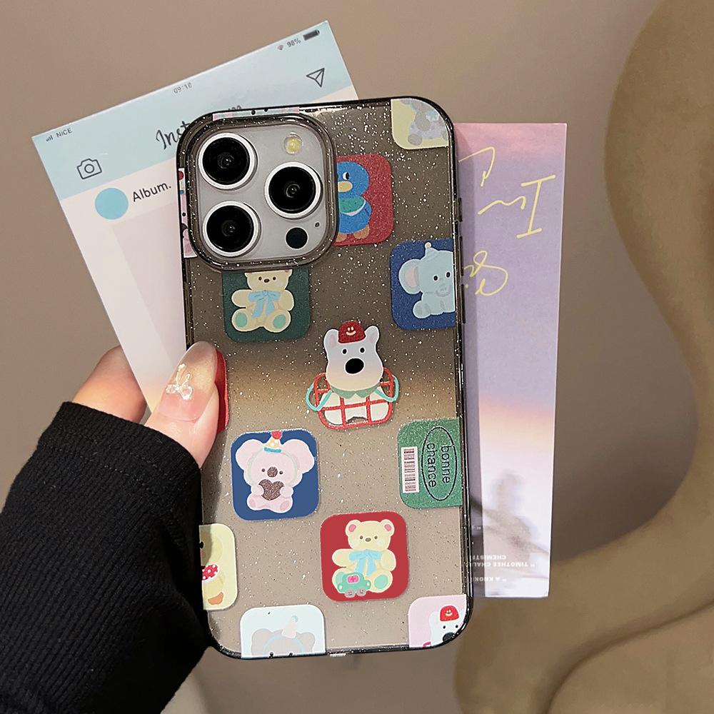 Funda para iPhone 15 con diseño de dibujos animados y bloques de color, con purpurina en polvo, para iPhone 14, Pro Max, color negro, resistente a caídas, funda blanda para iPhone 16, funda blanda para iPhone 13, funda blanda para iPhone 12.