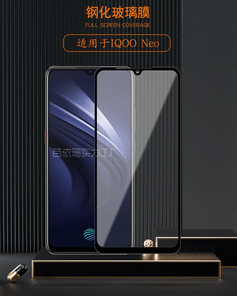 Adecuado para IQOONeo Película templada de pantalla completa vivo Serigrafía Cobertura de pegamento completo Película protectora de vidrio templado para teléfono móvil