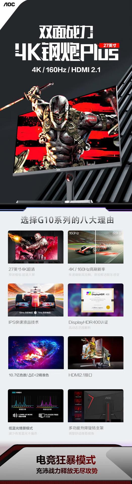 Compra Monitor para deportes electrónicos AOC U27G10 de 27,4 pulgadas, resolución K HD de 160 Hz, HDR400, LCD IPS de alta velocidad y amplia visión al por mayor en Joom.pro