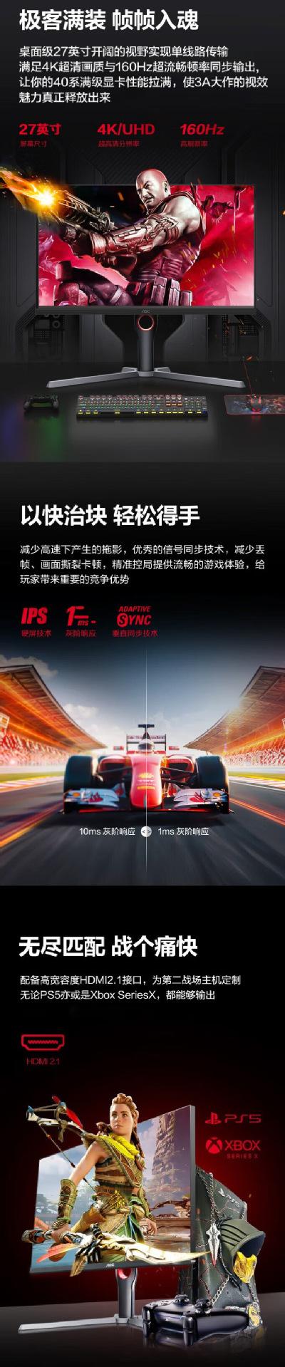 Monitor para deportes electrónicos AOC U27G10 de 27,4 pulgadas, resolución K HD de 160 Hz, HDR400, LCD IPS de alta velocidad y amplia visión