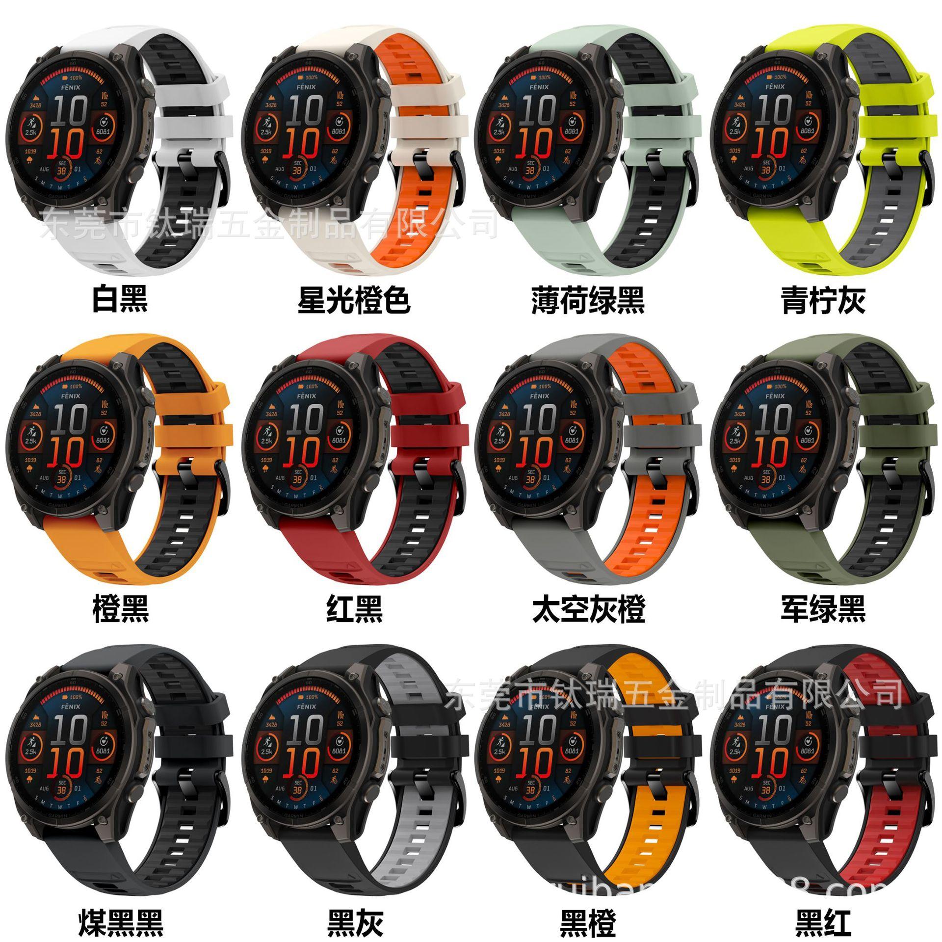 [Nombre del producto] Aplicable a Garmin Fenix8 correa de silicona bicolor original oficial hebilla de acero inoxidable correa deportiva de liberación rápida