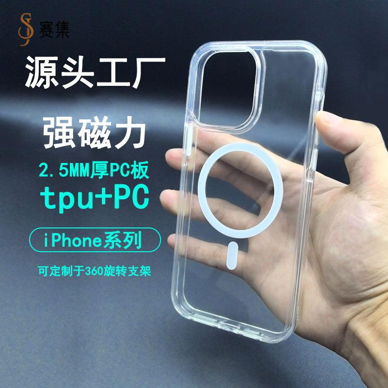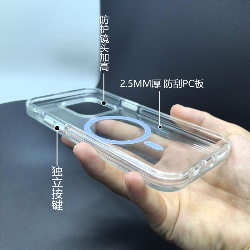 Adecuado para iPhone15 Funda transparente de PC magnética para teléfono móvil Personalizada Apple 14Promax Funda engrosada Bolsa de aire para cerveza Anticaídas