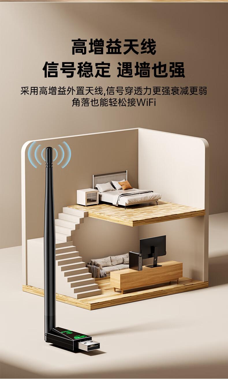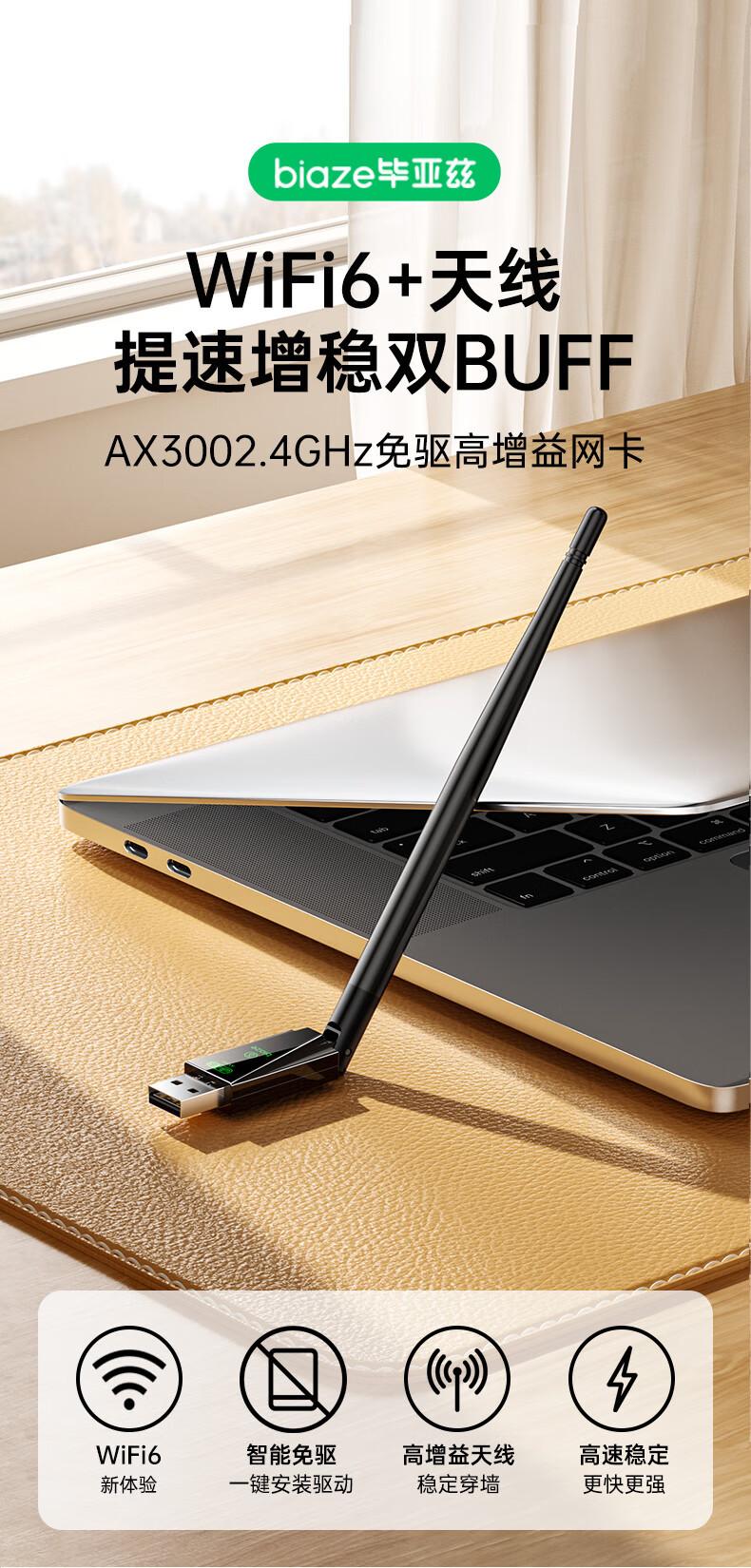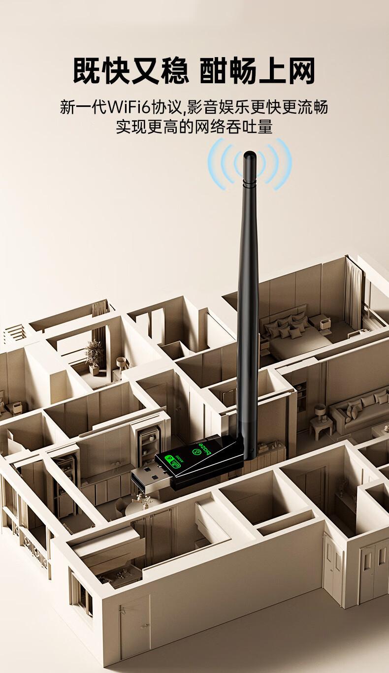 Tarjeta de red inalámbrica USB Biaz WiFi6 sin controlador, antena externa de alta ganancia para ordenador de escritorio y portátil (Reino Unido)