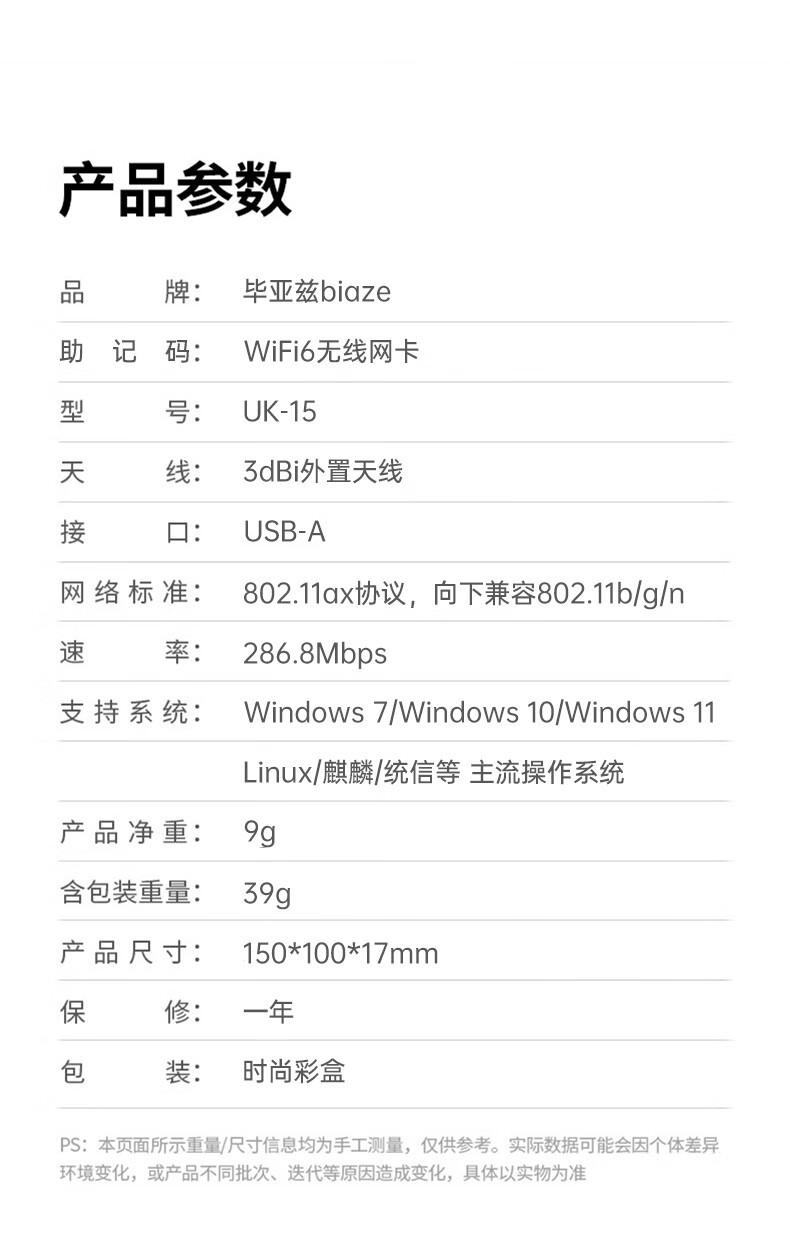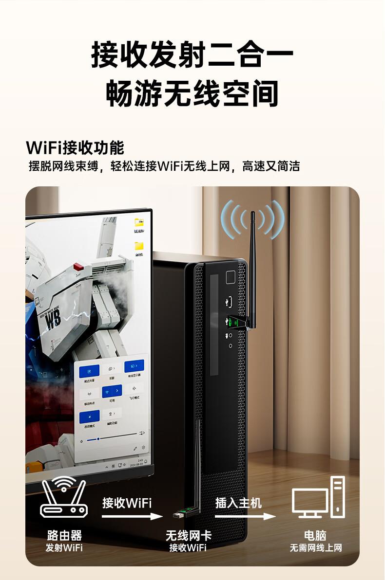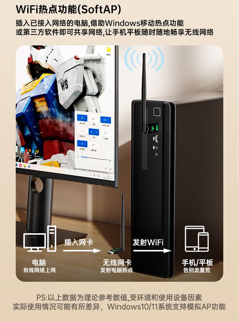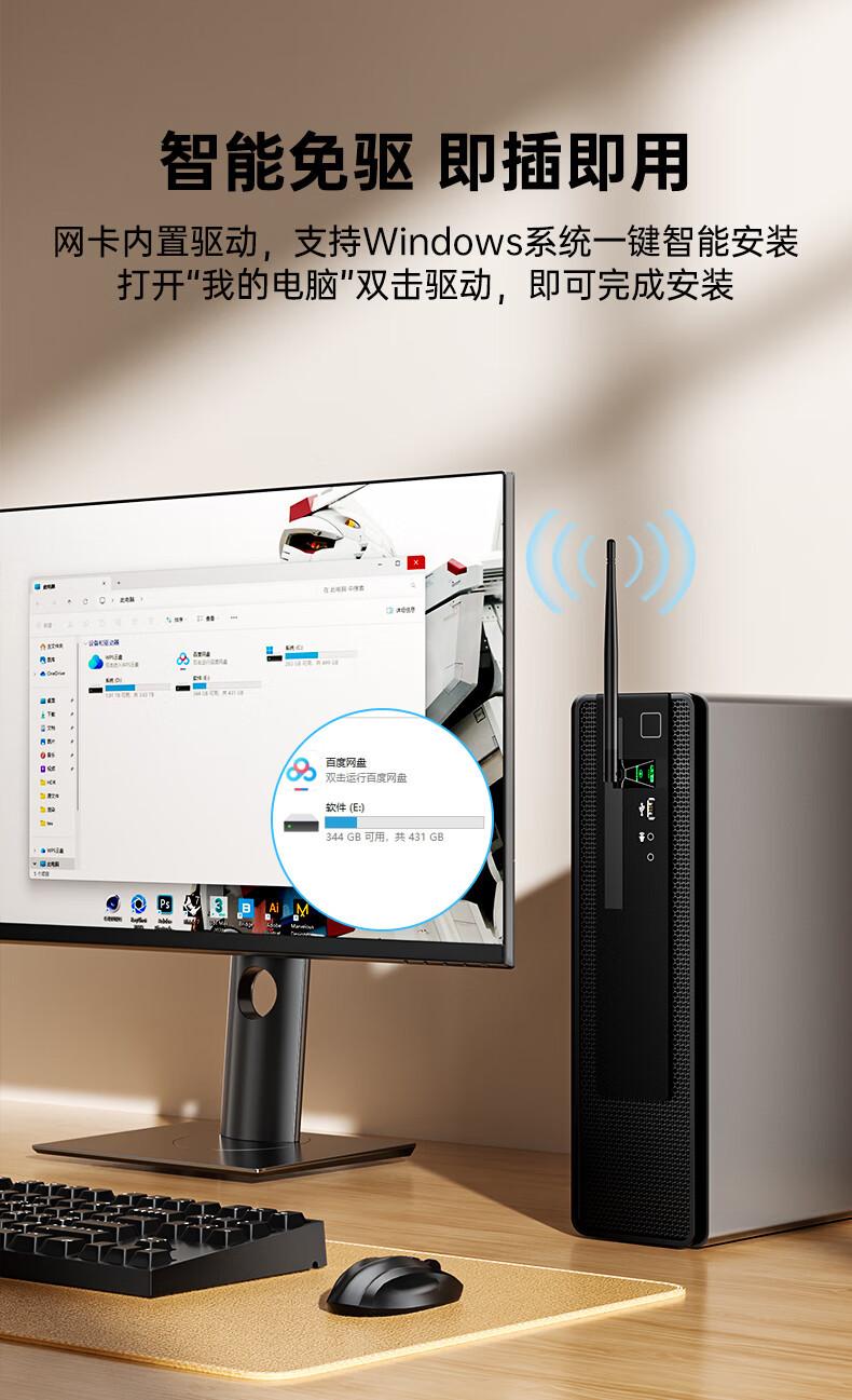 Tarjeta de red inalámbrica USB Biaz WiFi6 sin controlador, antena externa de alta ganancia para ordenador de escritorio y portátil (Reino Unido)