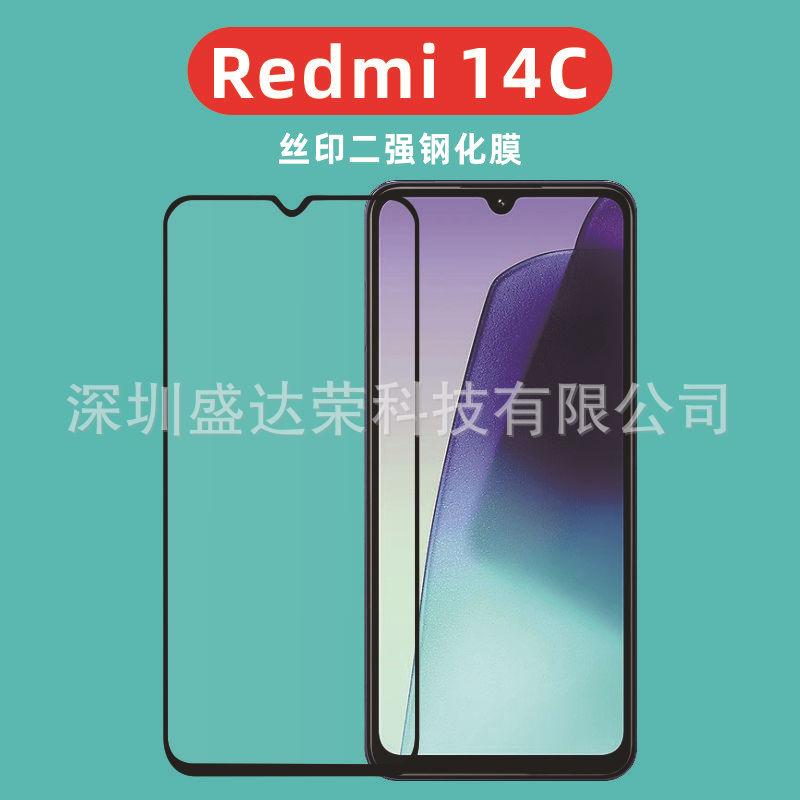 Para Redmi 14C Película templada Serigrafía Dos películas de vidrio resistentes Redmi 14c Película de vidrio negro