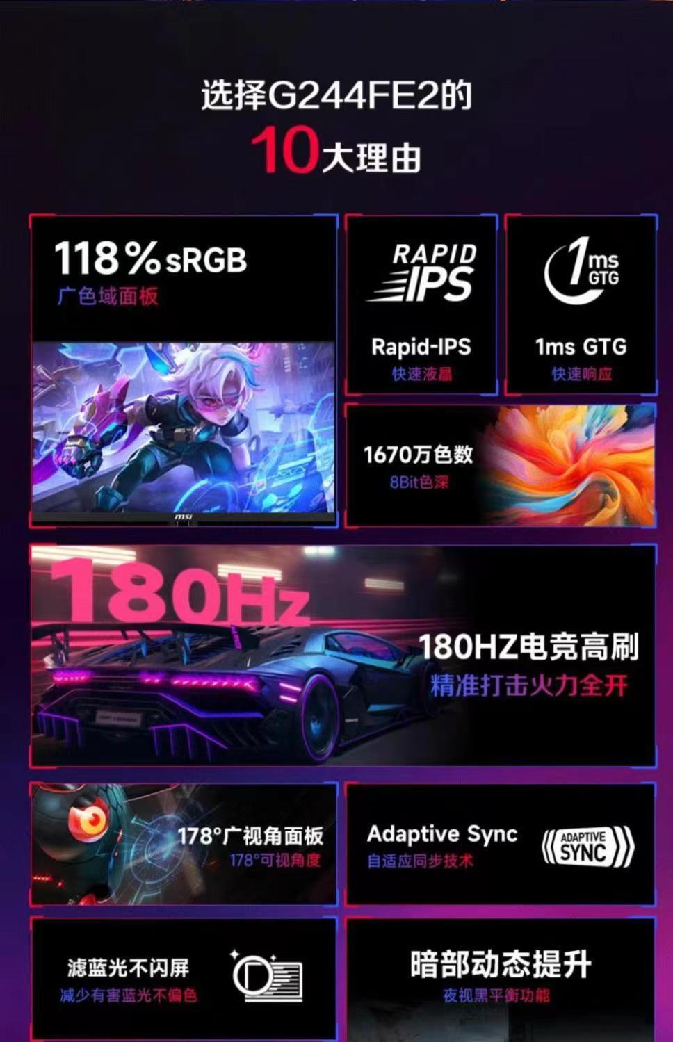 Computadora de escritorio MAG G244F E2 de 23.8" (180 Hz, 8 bits), 1080P HD, pantalla IPS de competición eléctrica
