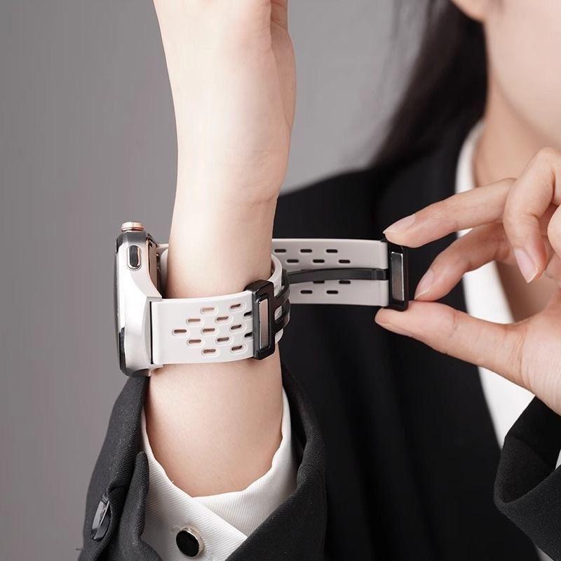 Adecuado para Gt4 Huawei Watch Fit Watch4Pro Correa de Silicona Transpirable Correa Magnética con Hebilla Plegable Samsung