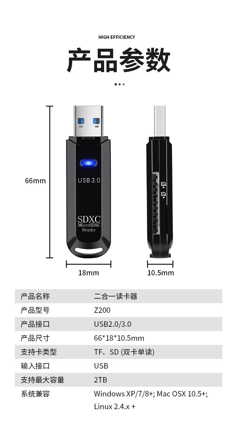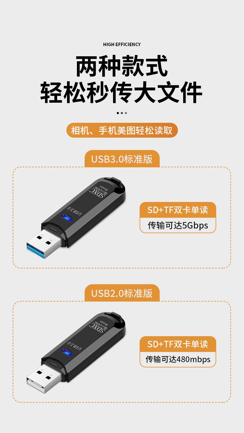 Lector de Tarjetas USB2.0Tfsd para Tarjetas de Memoria de Teléfono Móvil Dos en Uno para Computadora 3.0 Lector de Tarjetas Dual Personalizado