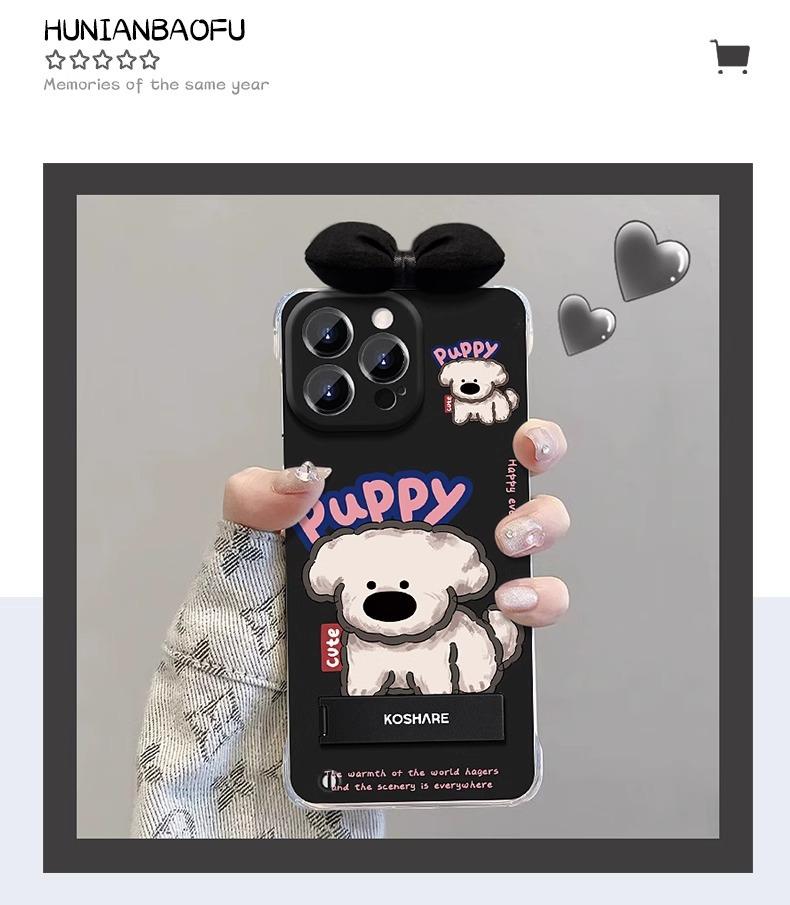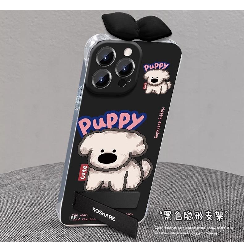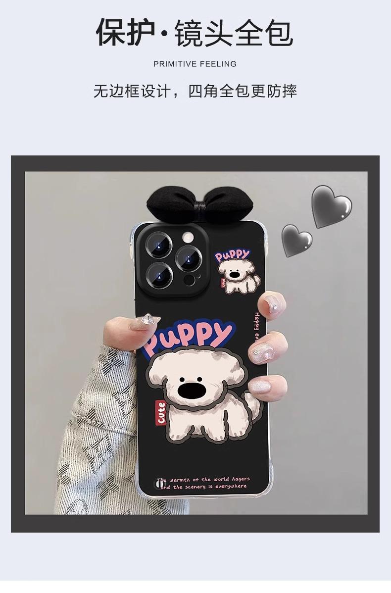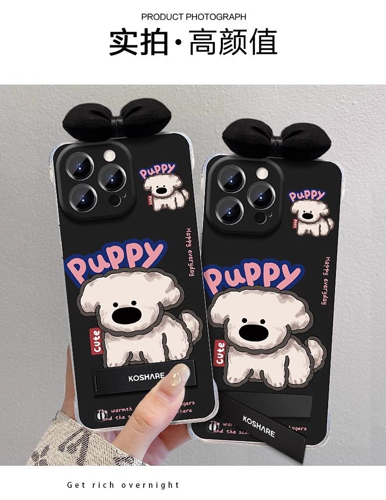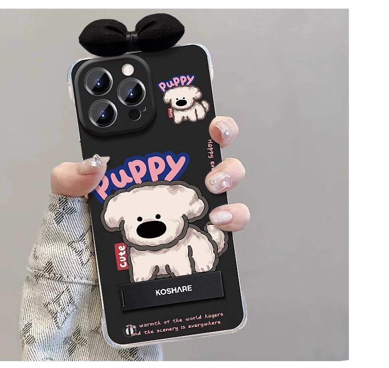 Soporte de lazo de cachorro de dibujos animados para funda de teléfono Apple 14 13PROMAX transparente sin marco 12 ultrafino XR