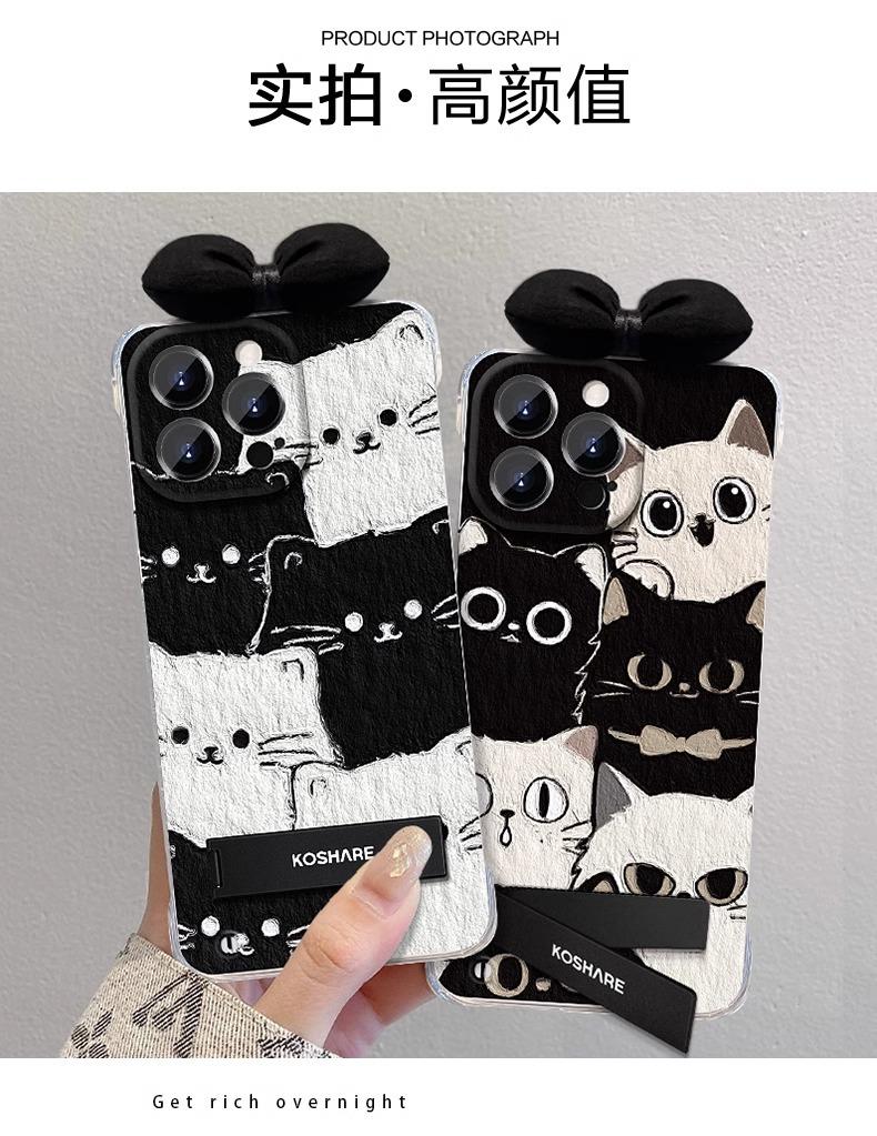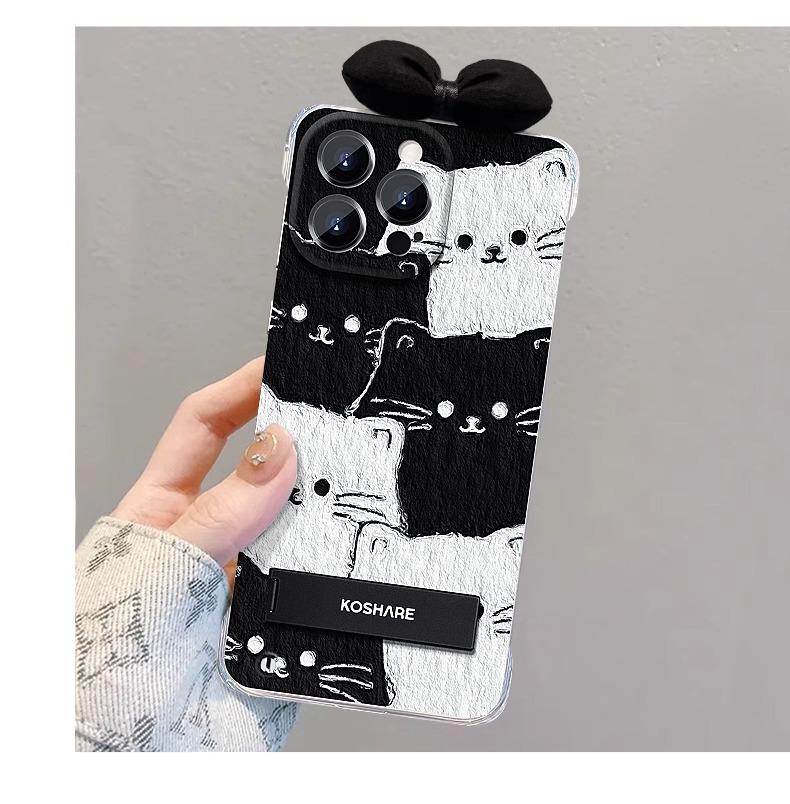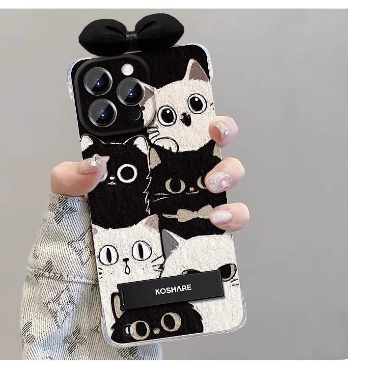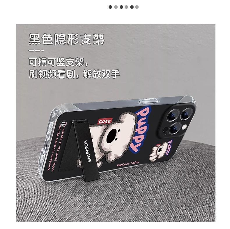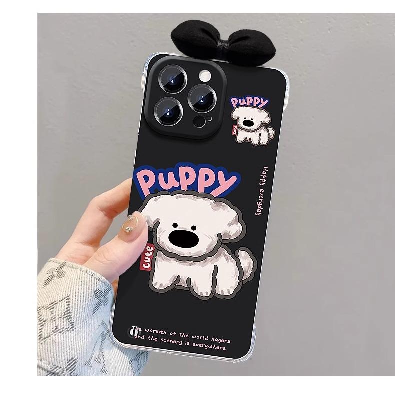 Soporte de lazo de cachorro de dibujos animados para funda de teléfono Apple 14 13PROMAX transparente sin marco 12 ultrafino XR