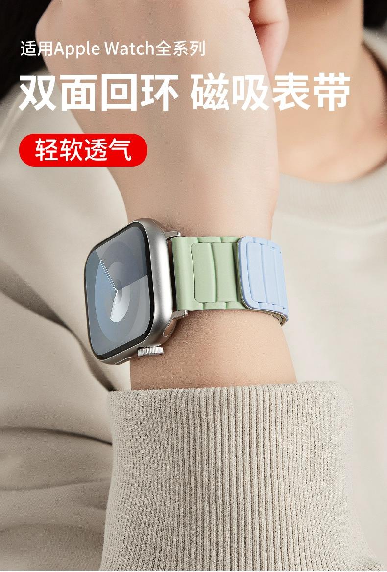 Adecuado para Correa iWatch Bucle Magnético de Silicona Bicolor Applewatch Apple S9 Watch Rotación Magnética