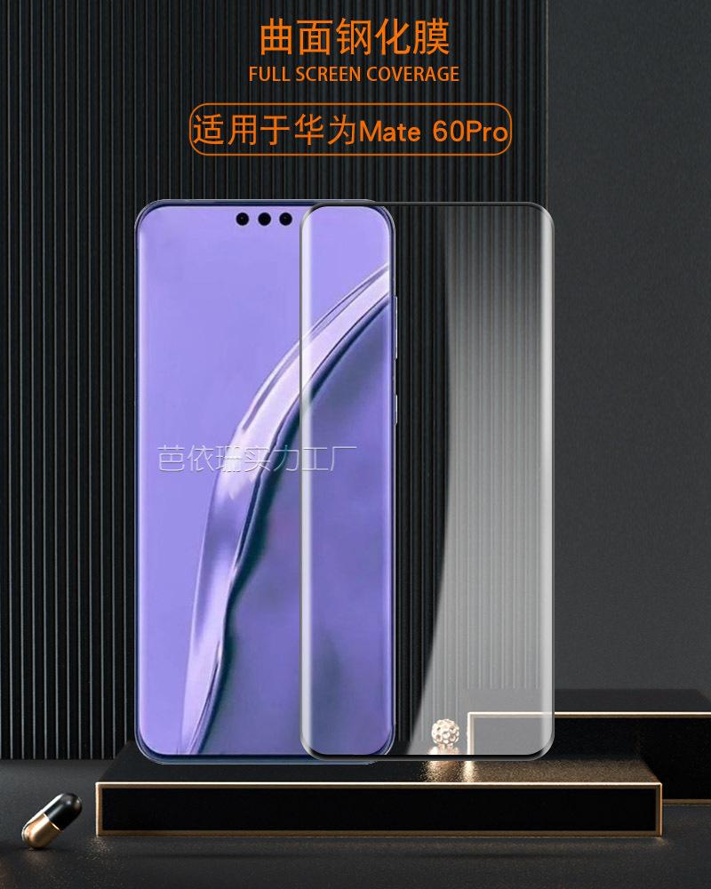 Huawei Mate 60 Pro curveD 3D hot-bent full screen [siDe glue outlet] black bare chip, Huawei Mate 60 Pro curve...