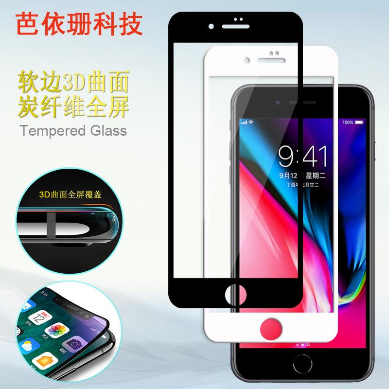 Adecuado para iPhone 8, película templada de borde suave, 8 Plus, fibra de carbono, curva 3D, cobertura de pantalla completa, película de vidrio templado