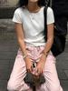 Compra Camiseta de manga corta de color liso para mujer, nuevo diseño de verano 2023, estilo adelgazante, elegante y a la moda, camiseta corta con hombros descubiertos. al por mayor en Joom.pro