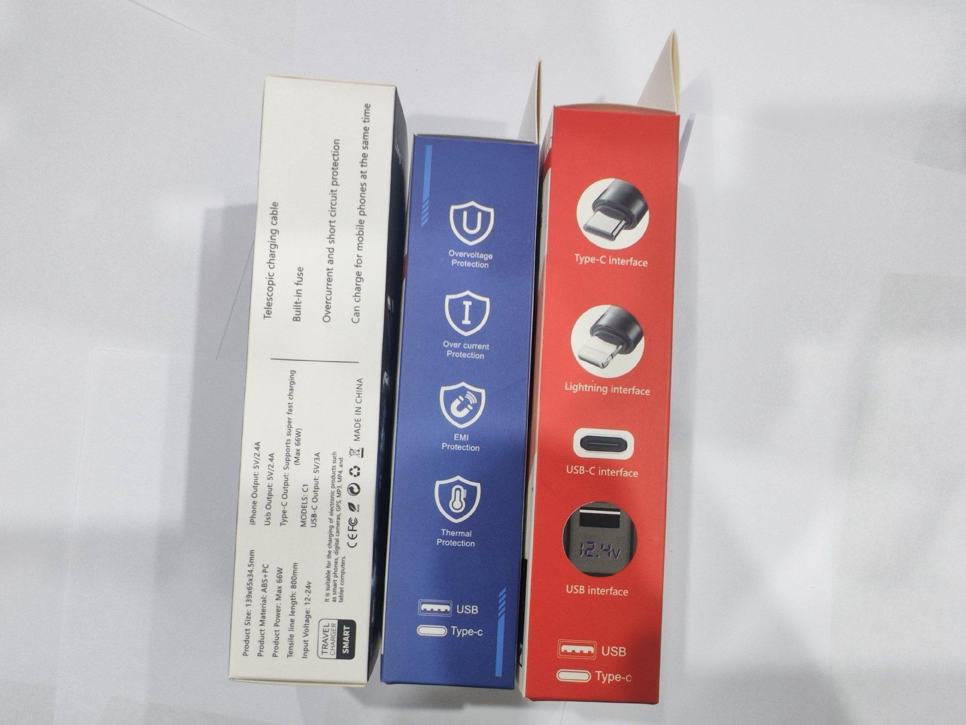 Q9 car charger apple+type-c, X8 wrapped in color box, D2 packed in color box, C1 color box package, D3 packed in color box