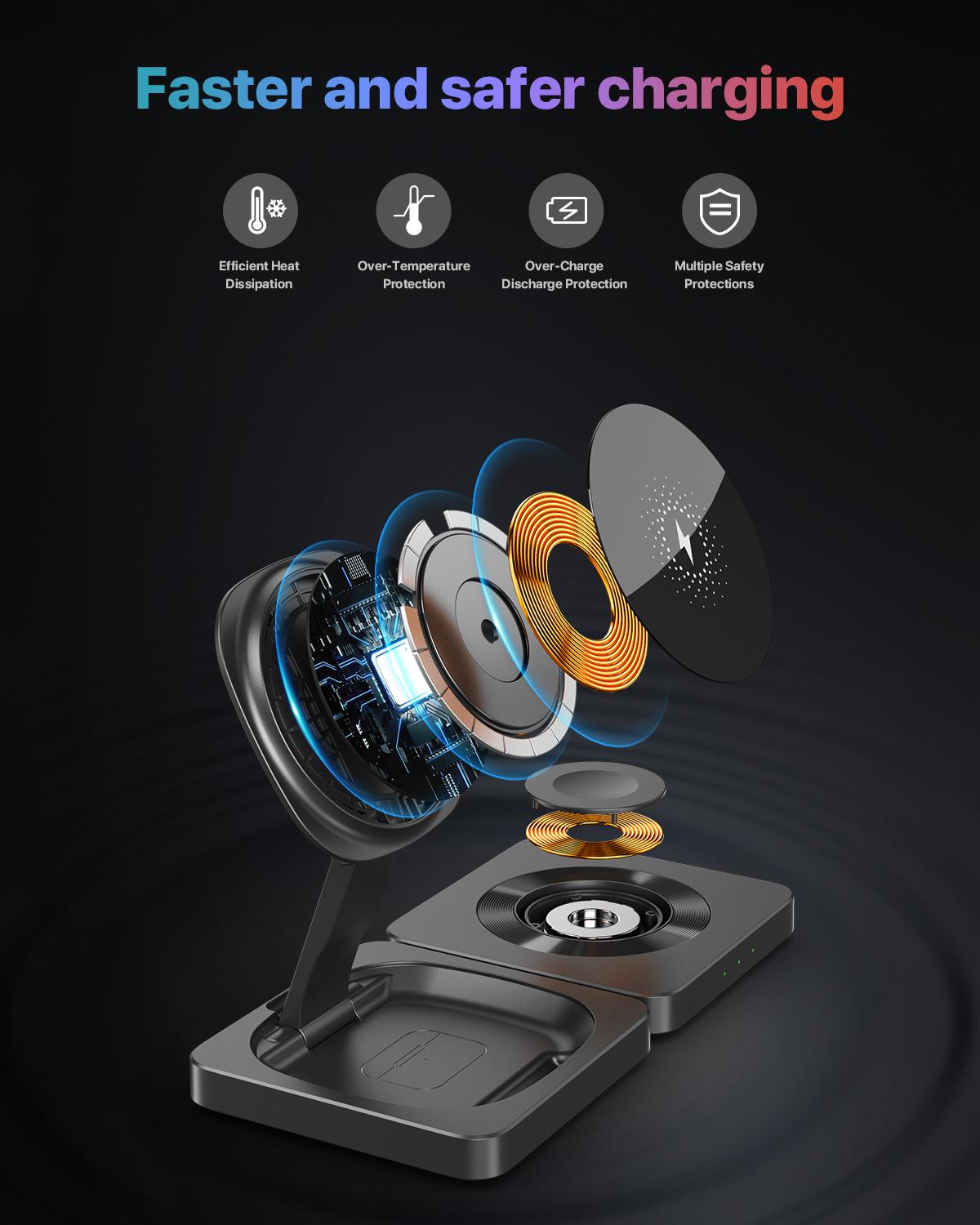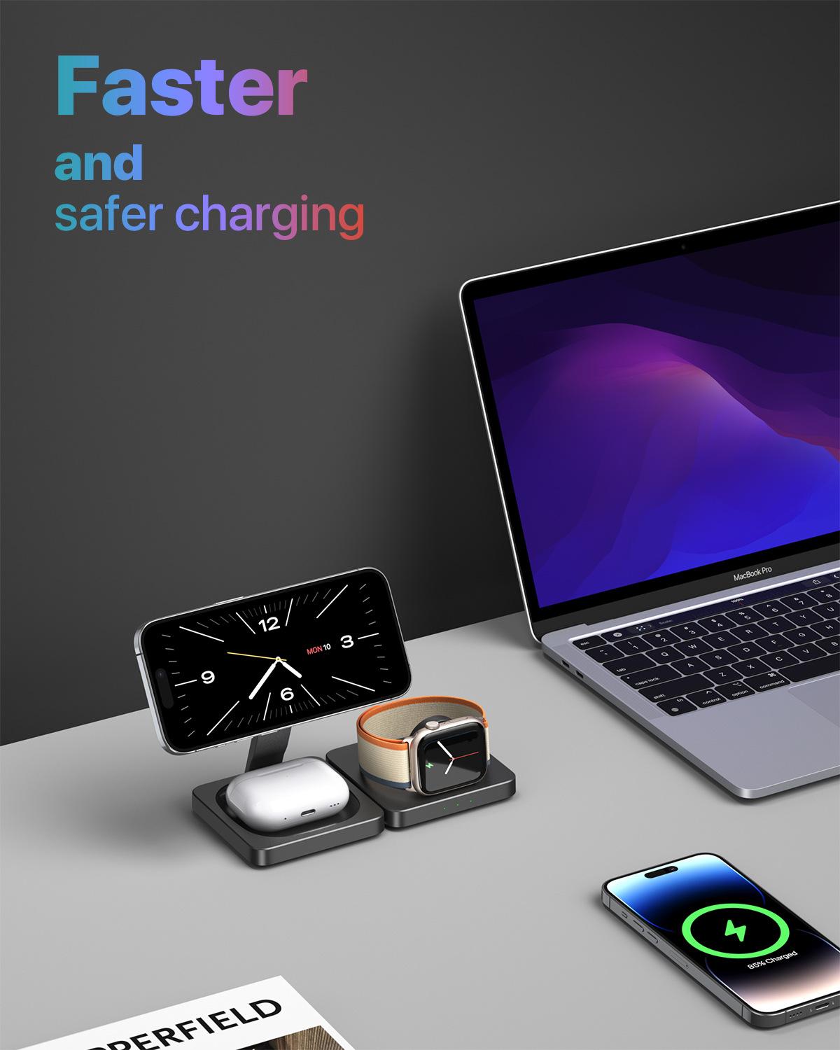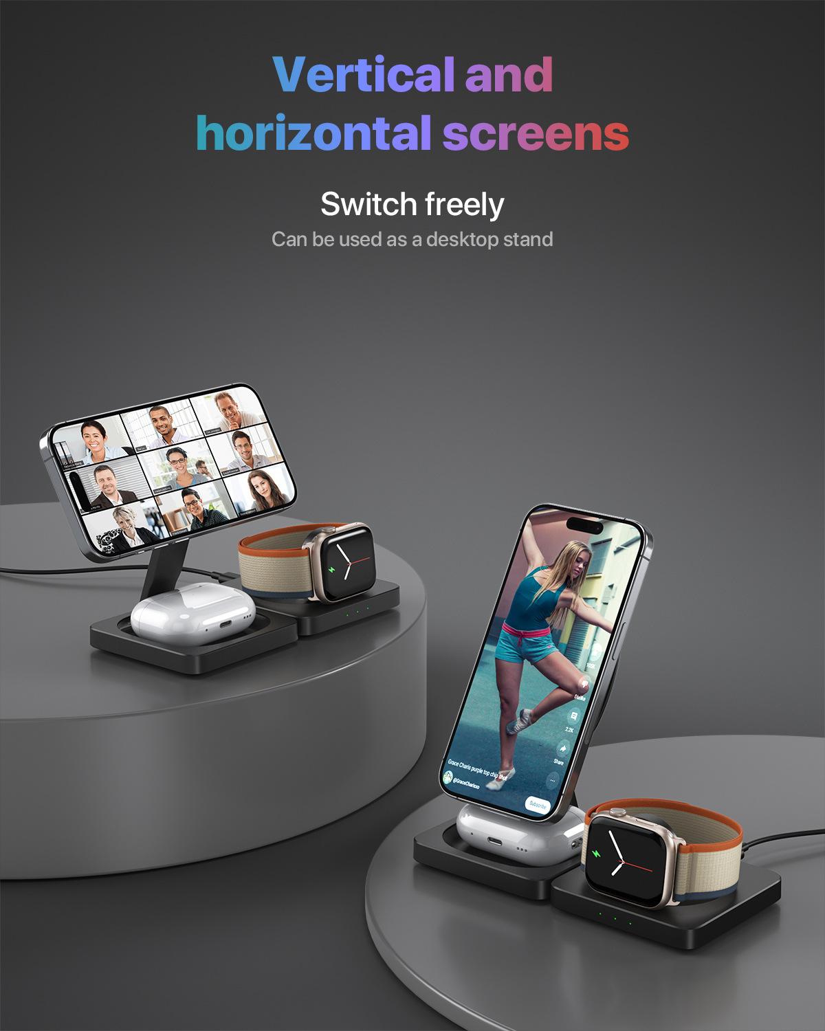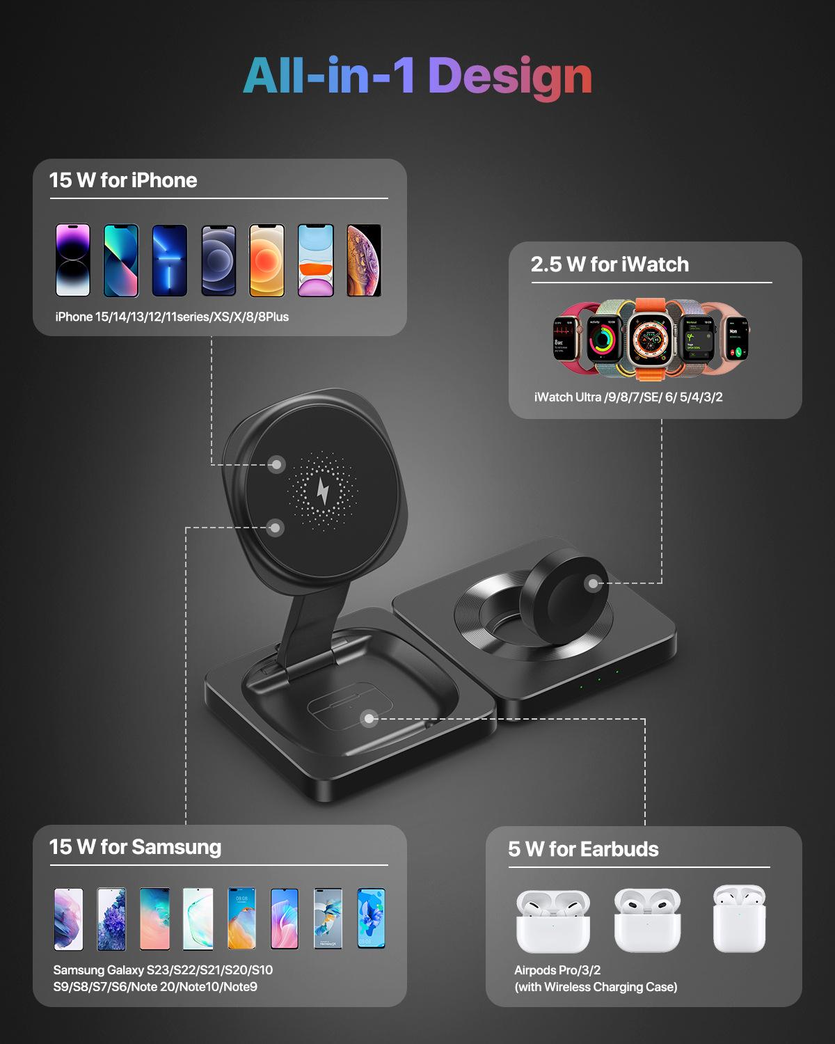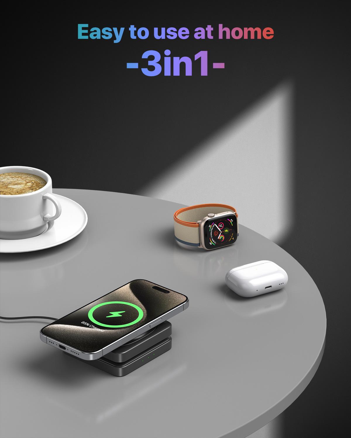 Cargador inalámbrico tres en uno portátil transfronterizo, soporte de carga rápida para teléfono móvil para Apple Watch, carga inalámbrica para auriculares