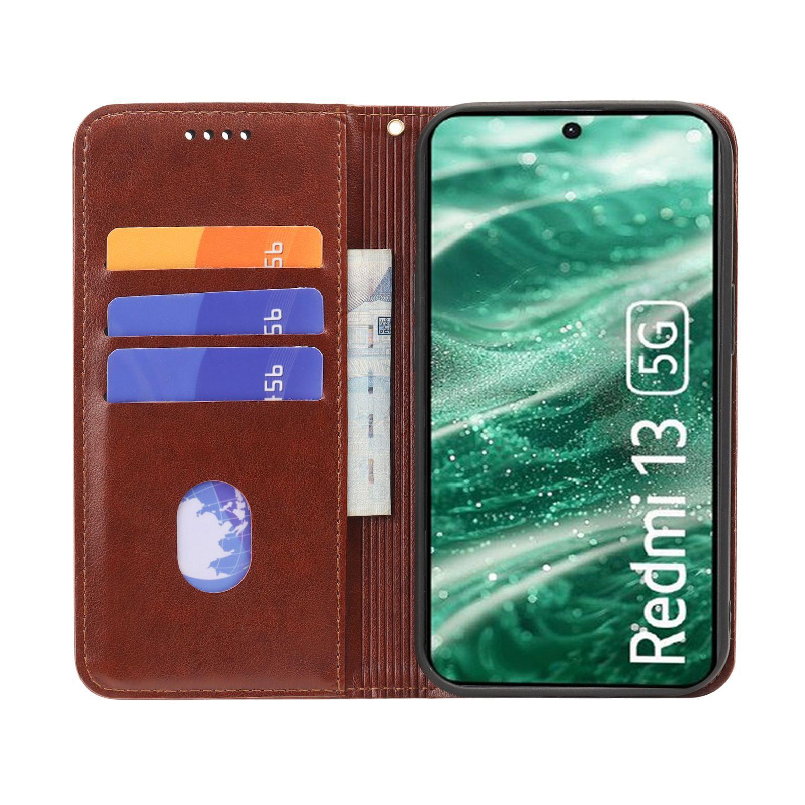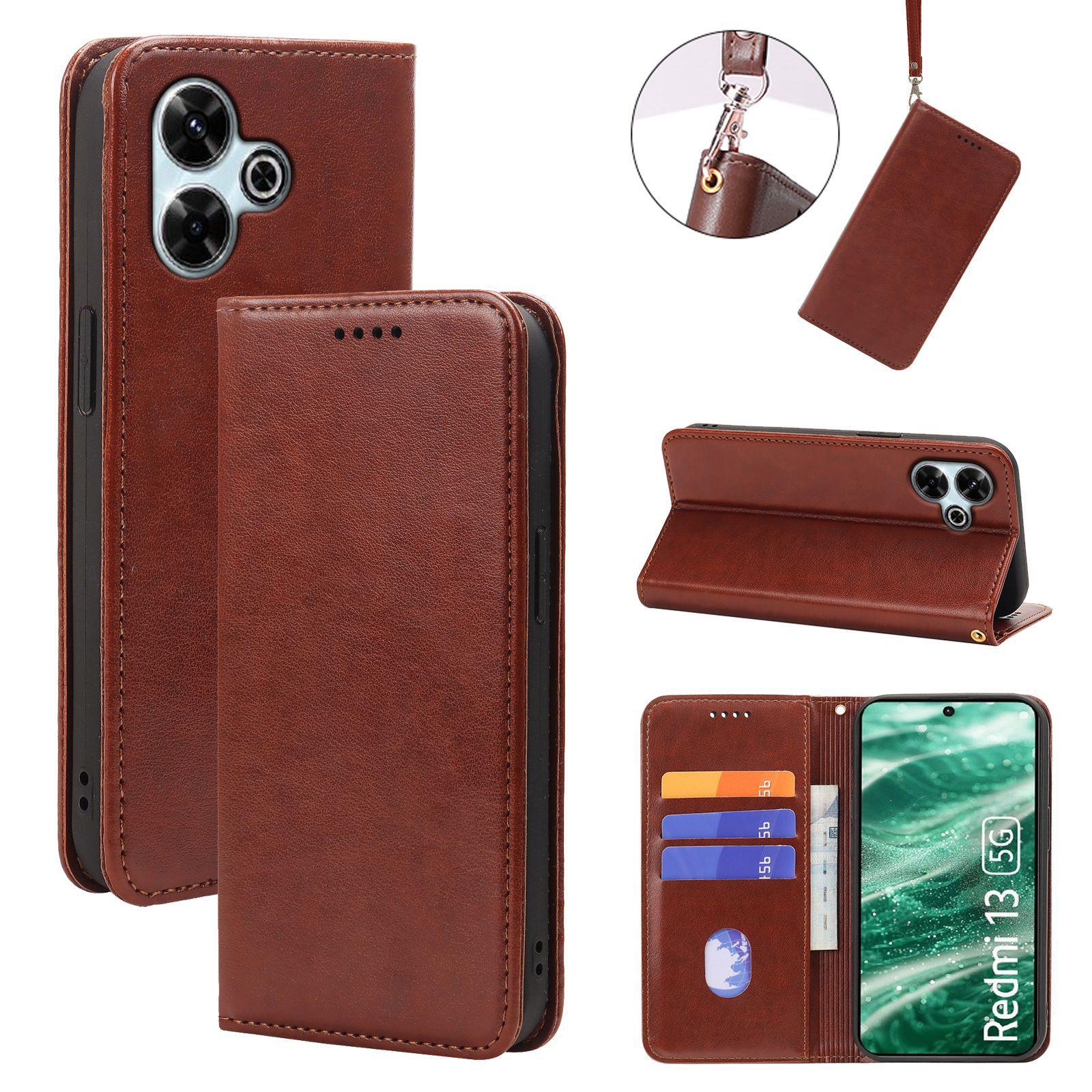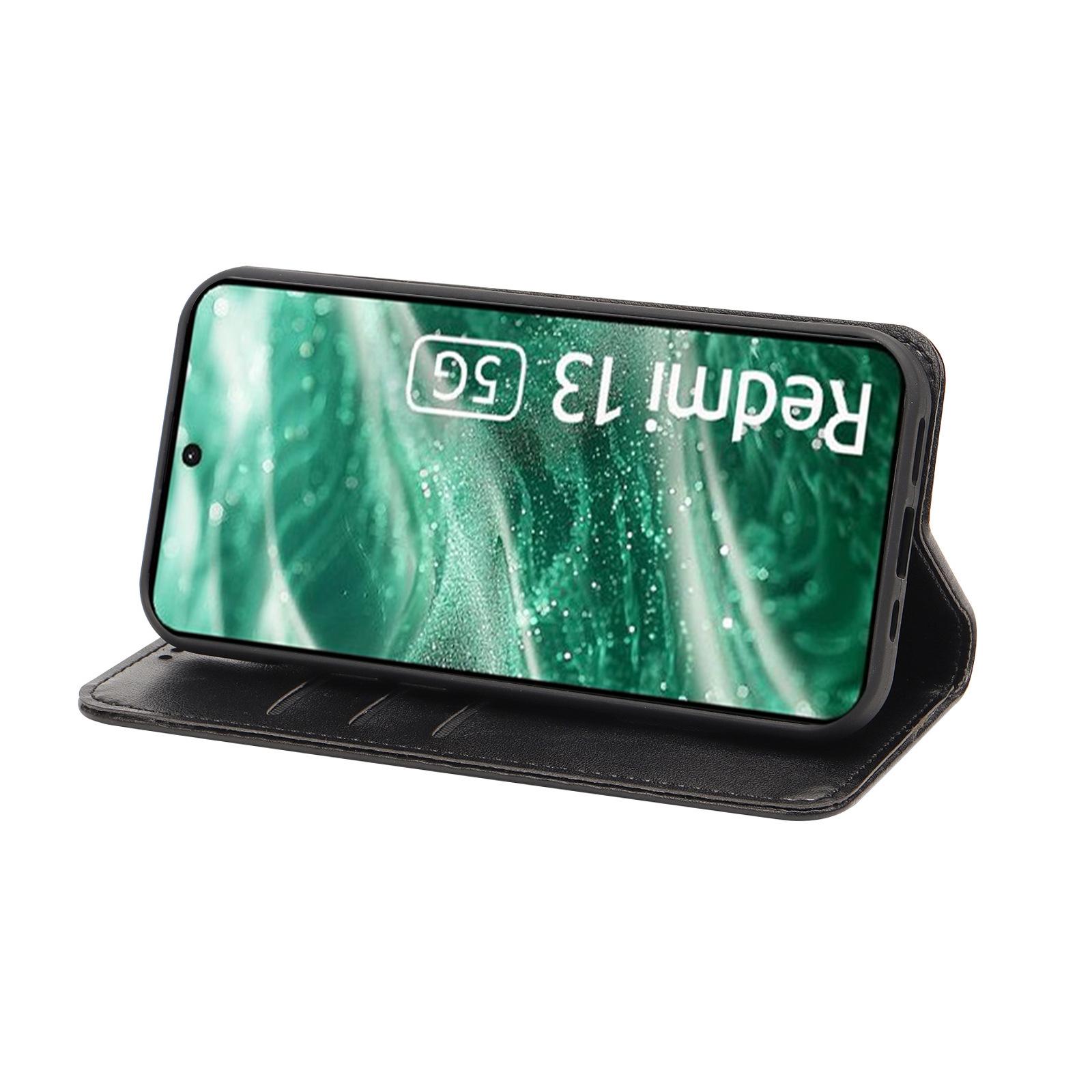 Adecuado para Teléfono Móvil Red Rice Note14pro Funda de Cuero Redmi12 Patrón Caballo Loco Fuerte Magnético 14C Funda Protectora para Teléfono Móvil con Tapa