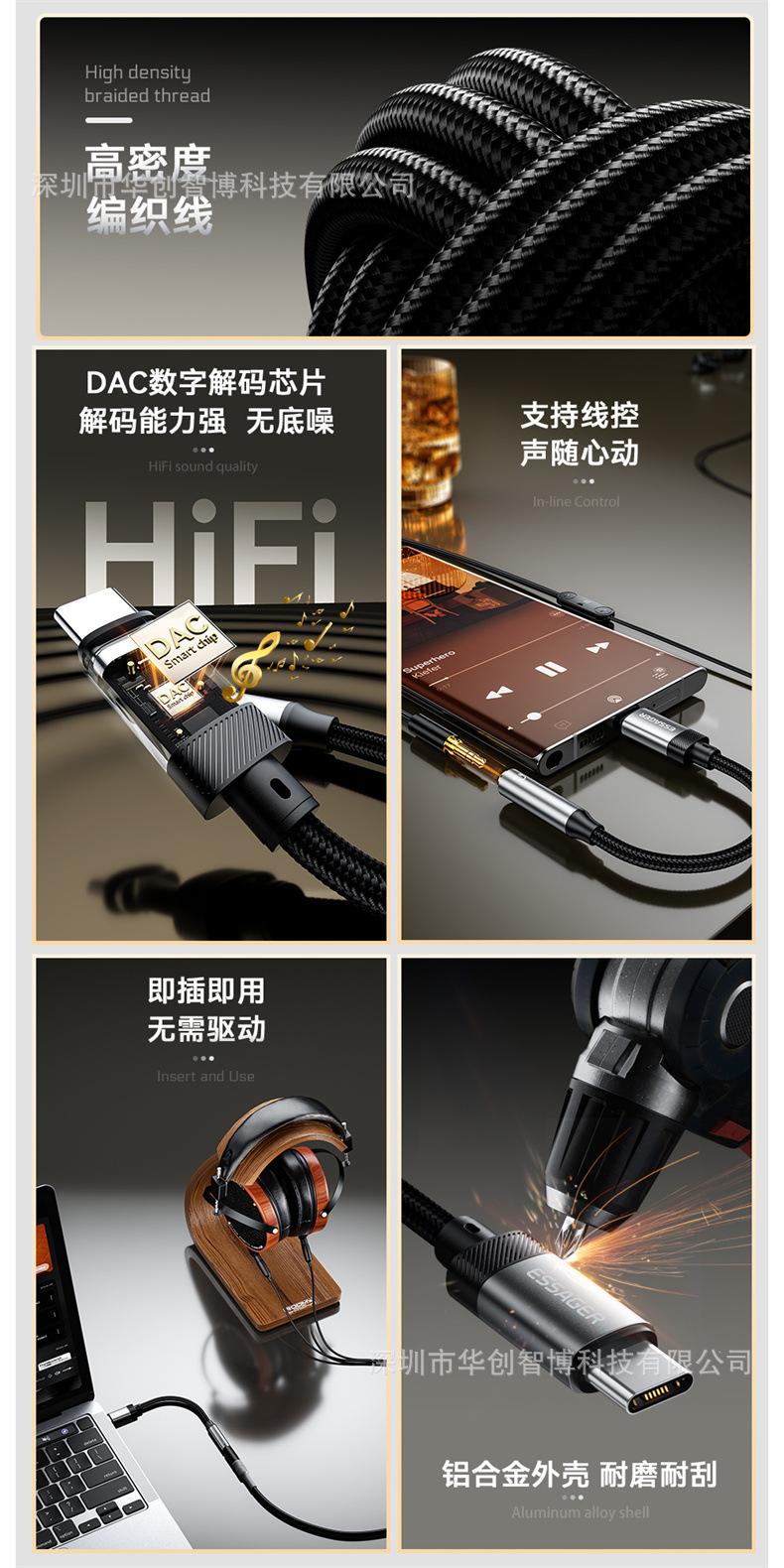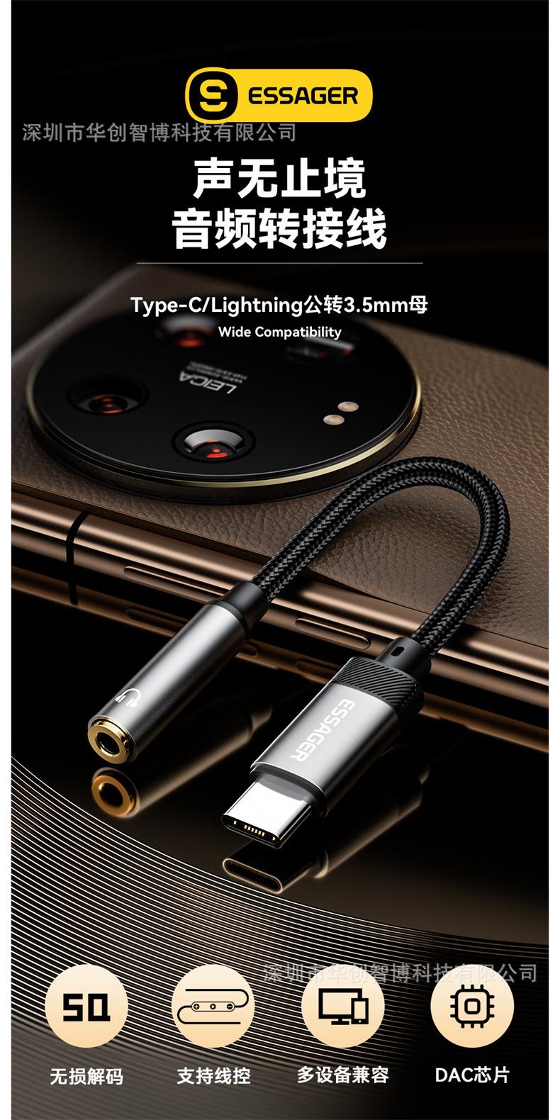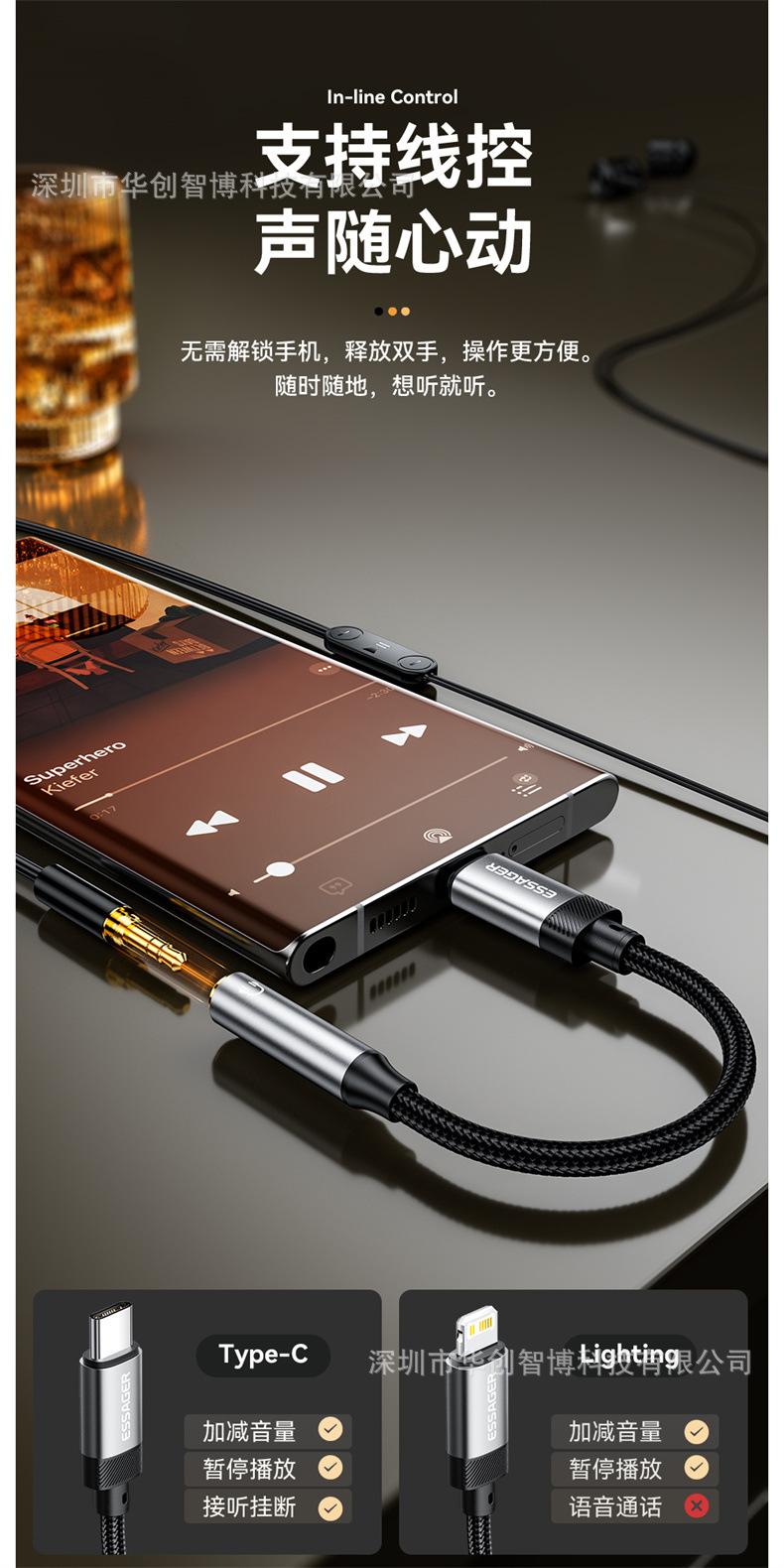 [Características del Producto] Chip de decodificación digital DAC integrado, interfaz Tipo-c que se puede insertar en ambas direcciones, admite funciones de escuchar música/llamadas/control de línea y es compatible con auriculares Apple/Android.