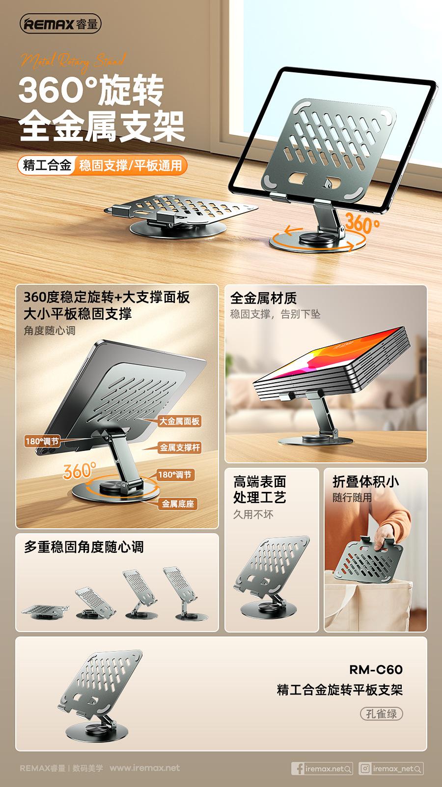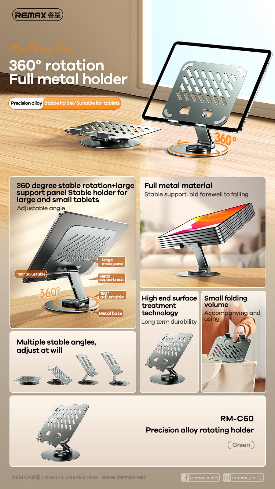 Soporte para teléfono móvil giratorio de aleación de aluminio REMAX Seiko Soporte plano de metal plegable RM-C60