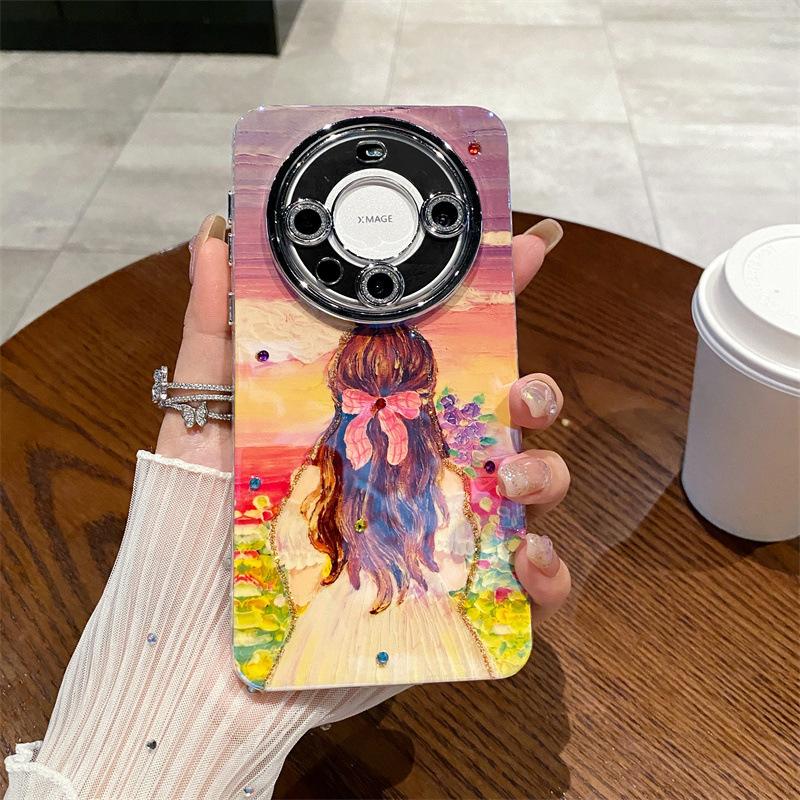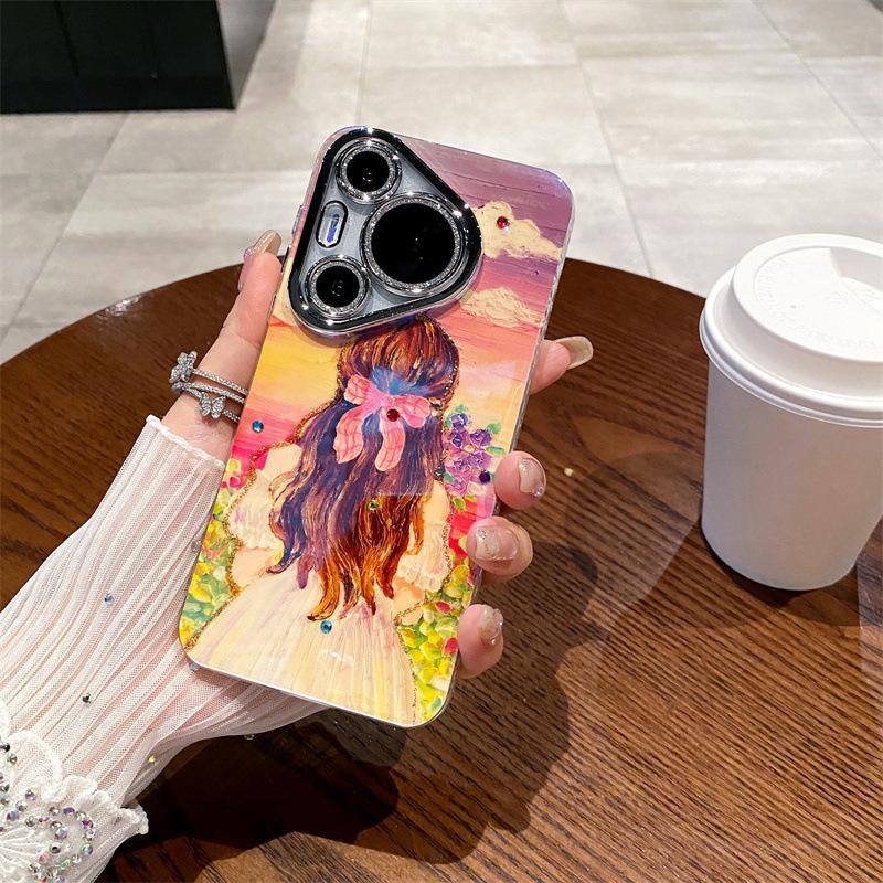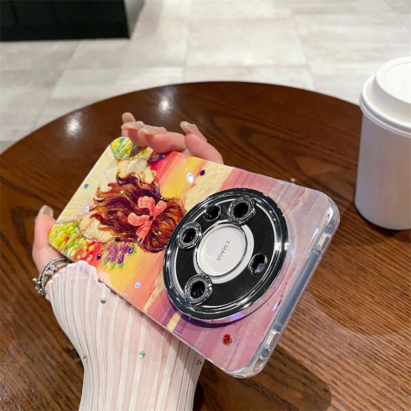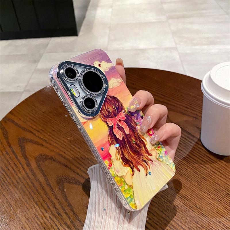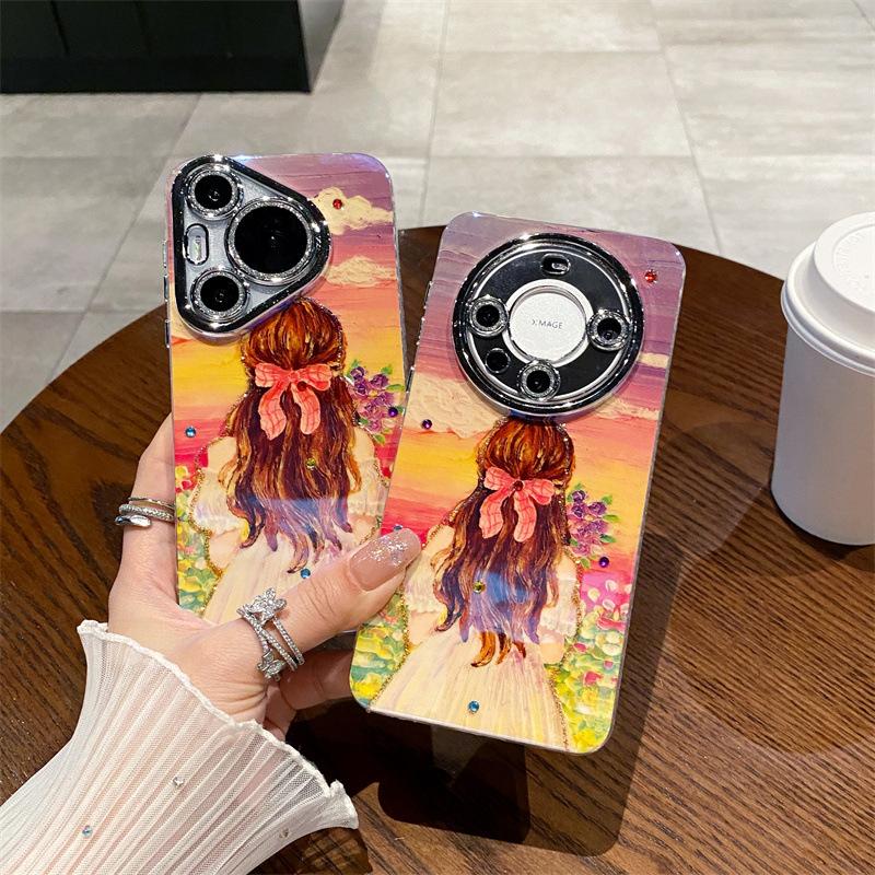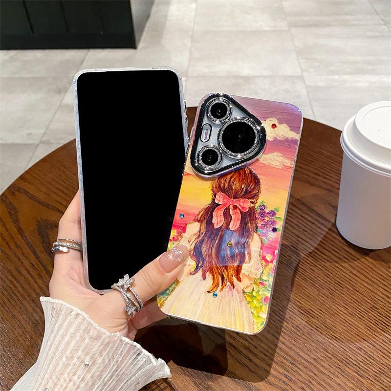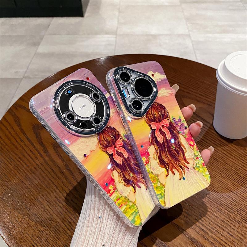 Funda trasera con diamantes de imitación azules de estilo japonés y coreano para Huawei P70, funda para teléfono mate60pro, todo incluido, para mujer P70P