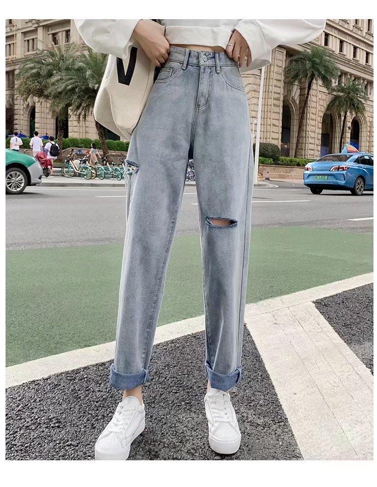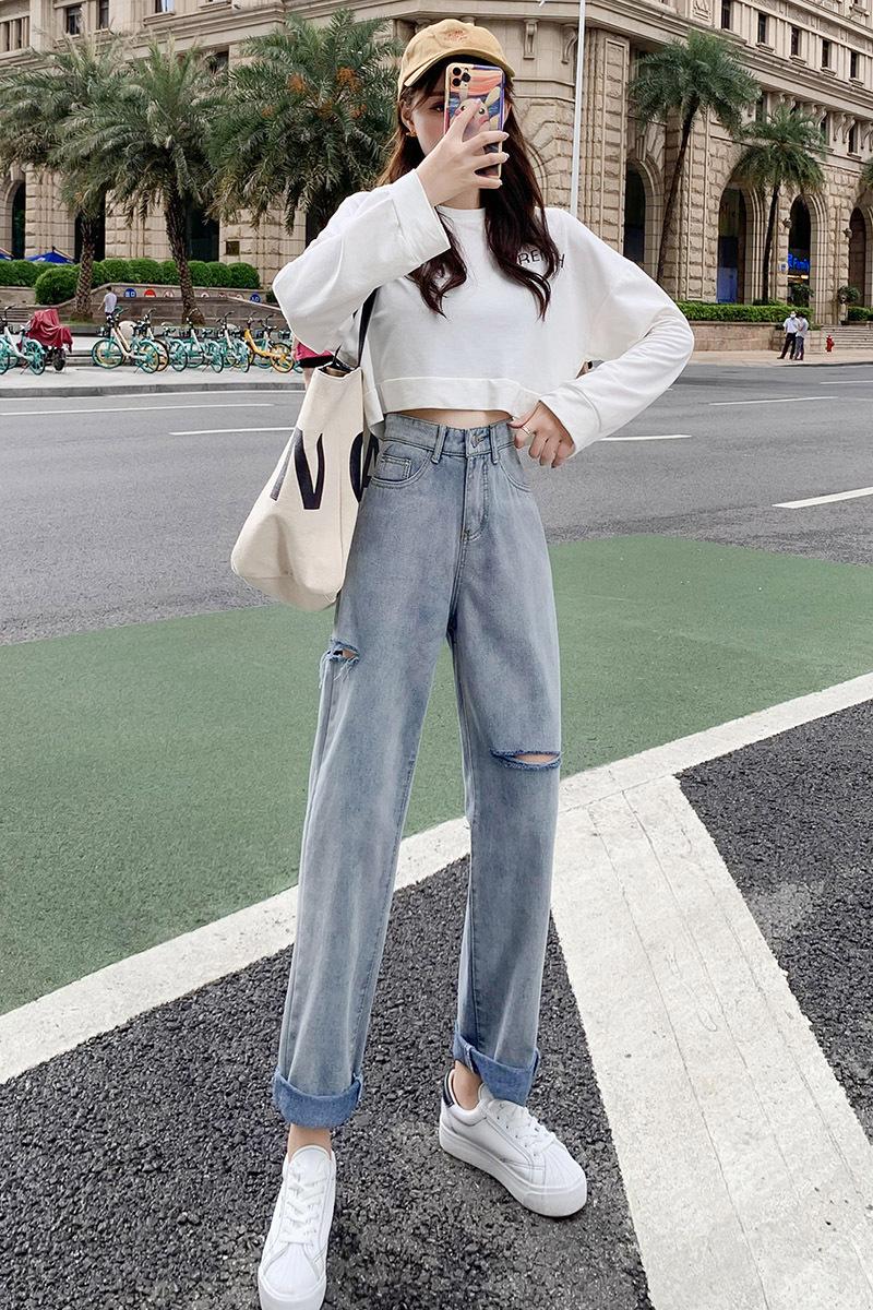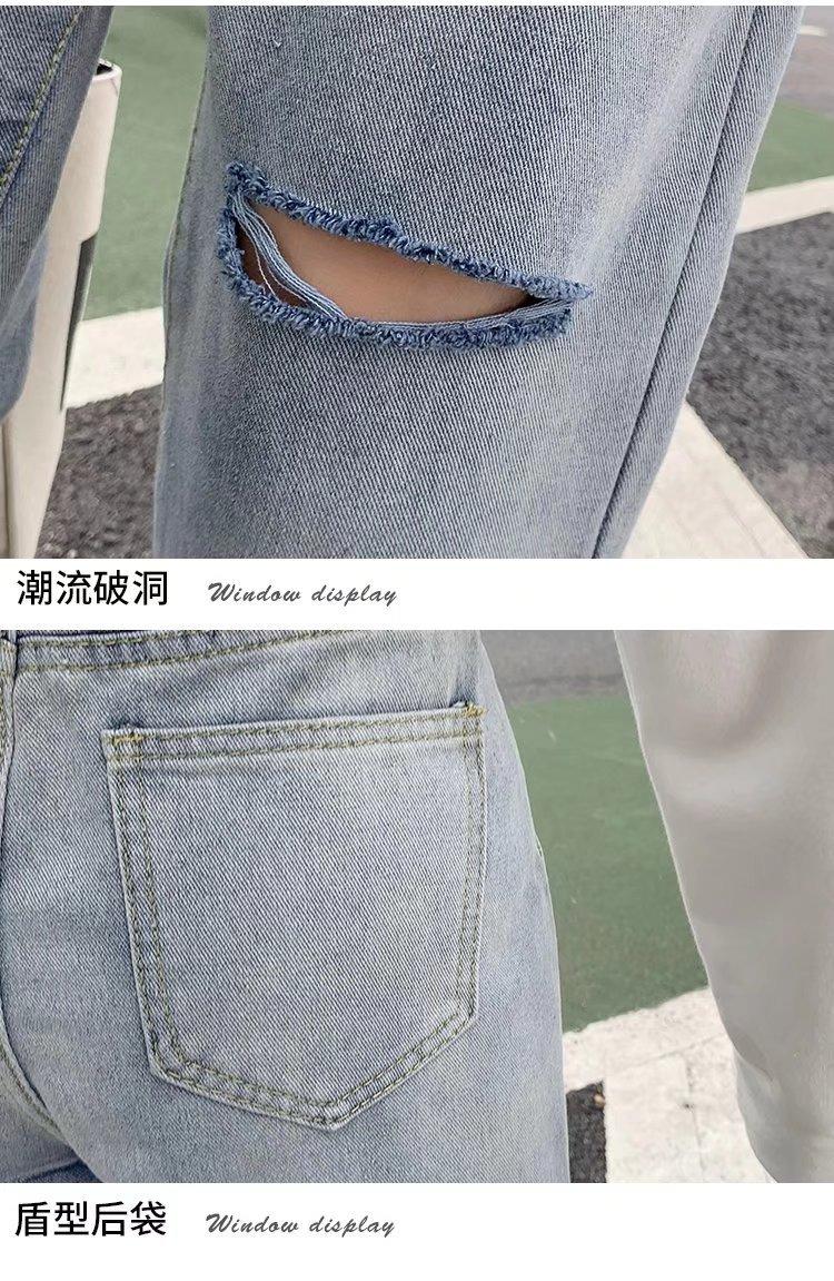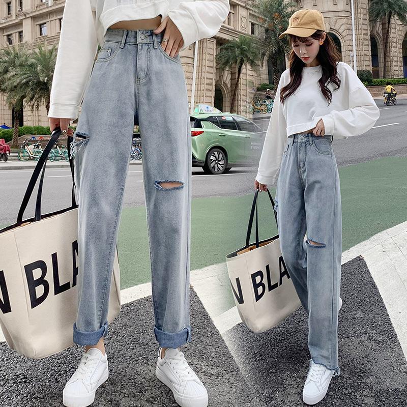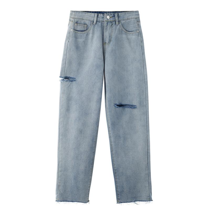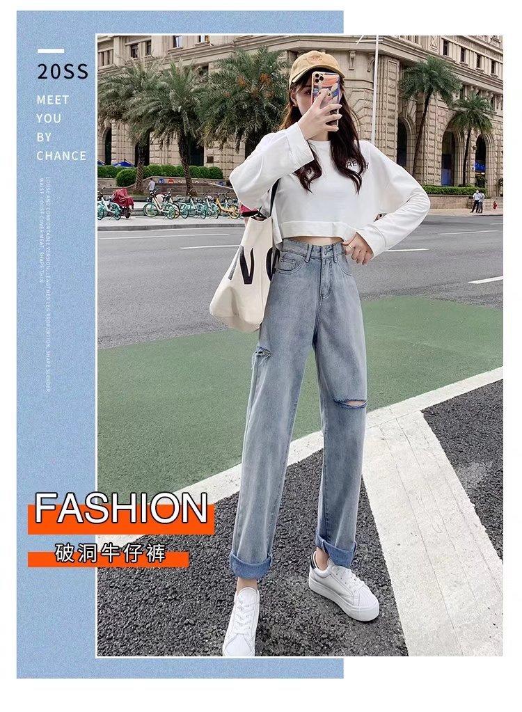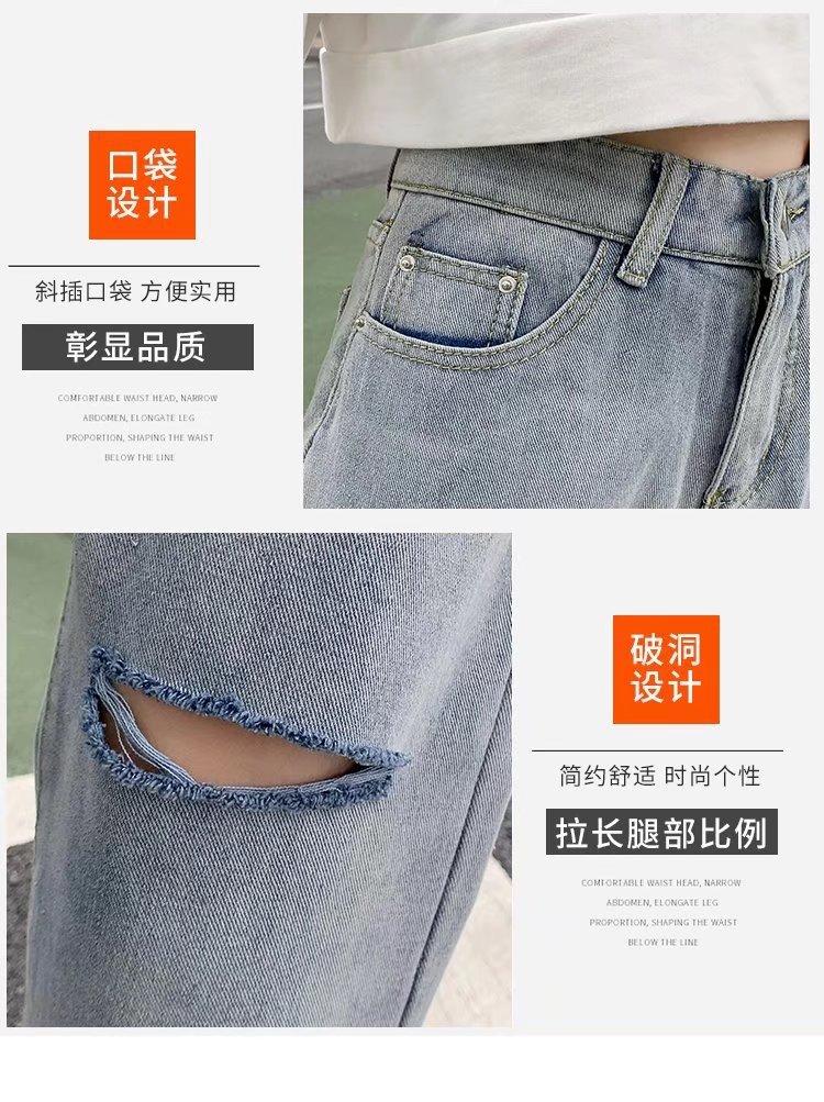 Pantalones vaqueros rotos para mujer, pantalones rectos de verano, nuevos pantalones de cintura alta, ajustados, de pierna ancha, pantalones coreanos holgados.