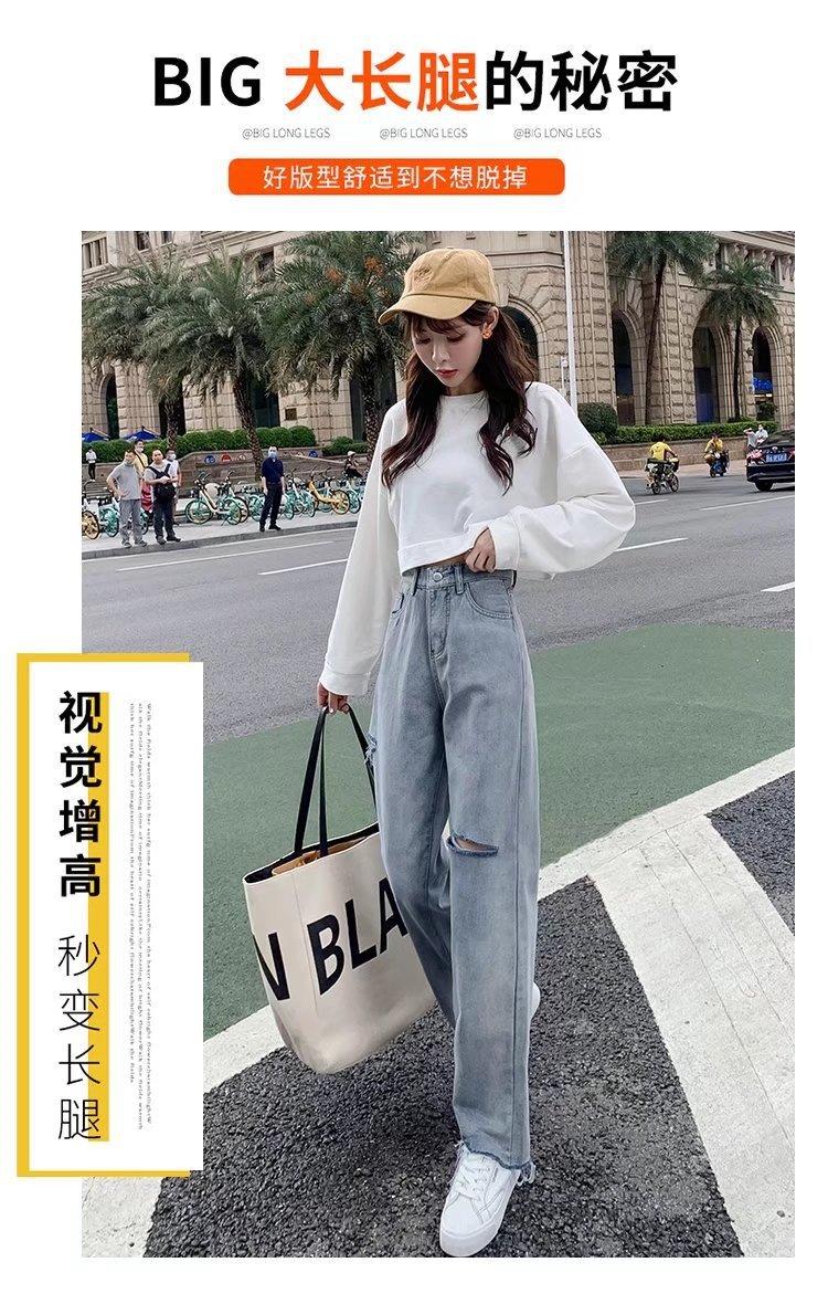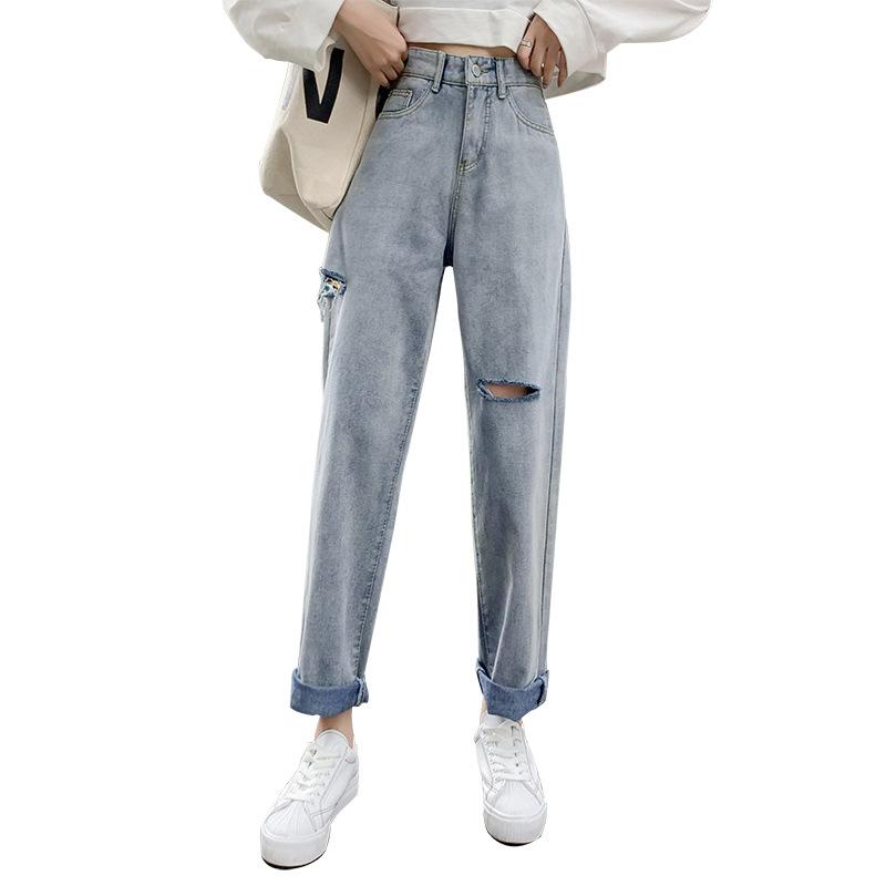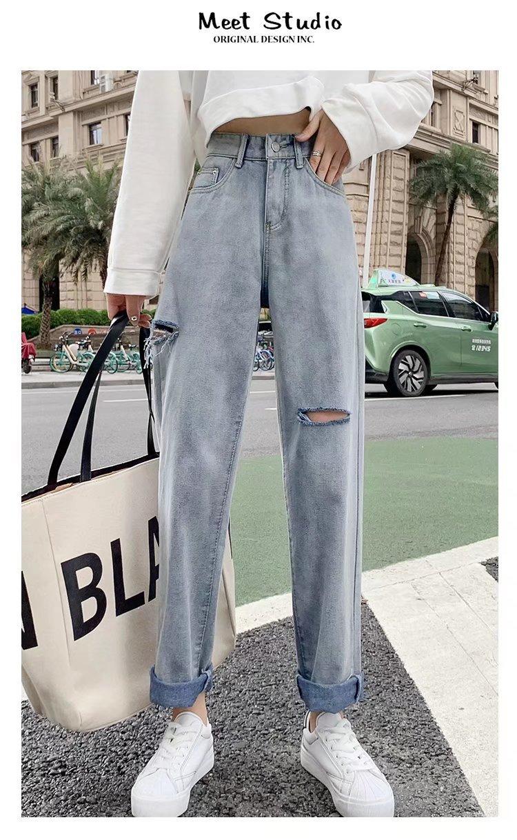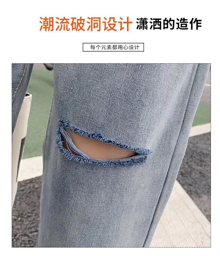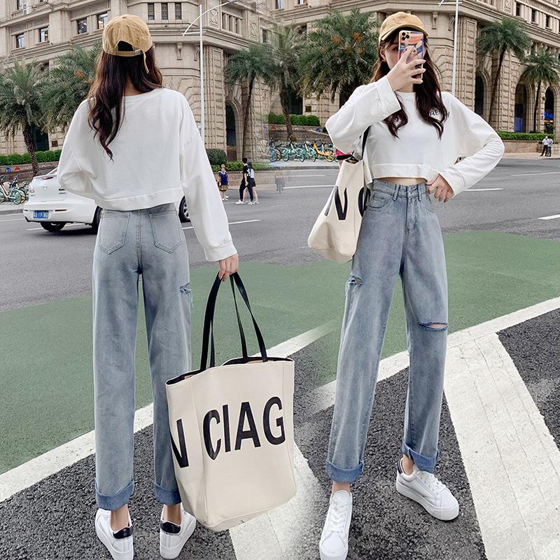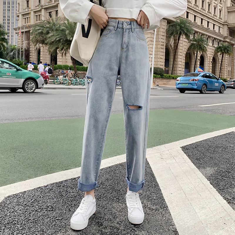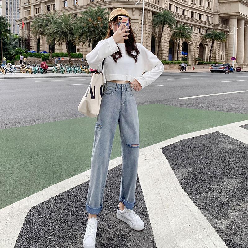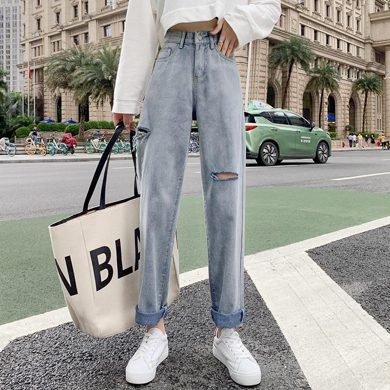 Pantalones vaqueros rotos para mujer, pantalones rectos de verano, nuevos pantalones de cintura alta, ajustados, de pierna ancha, pantalones coreanos holgados.