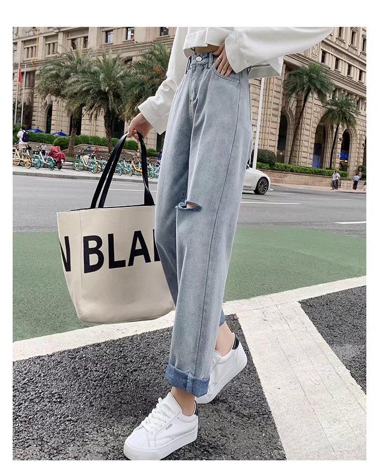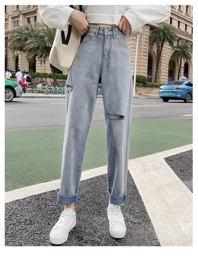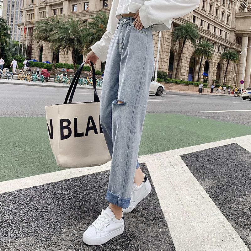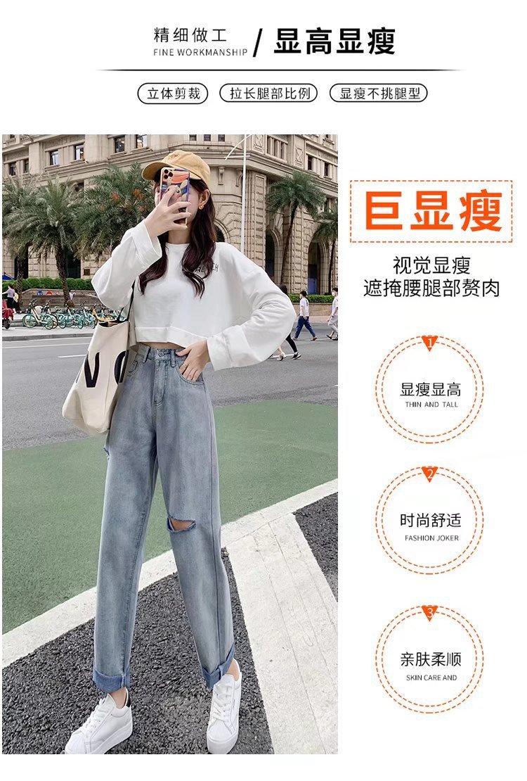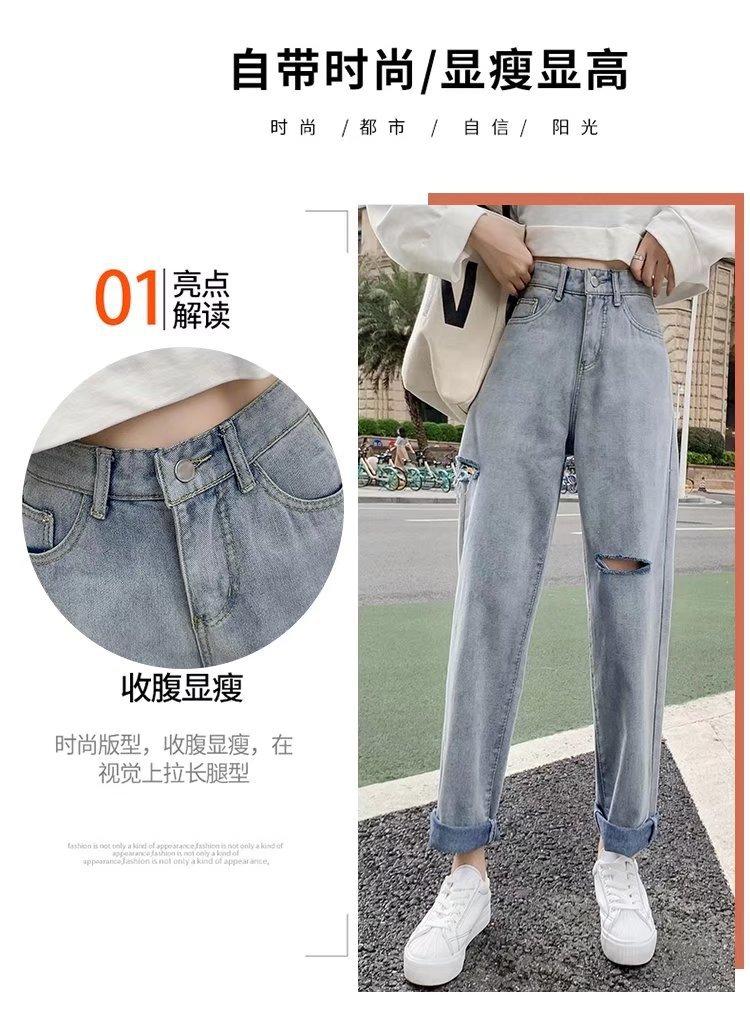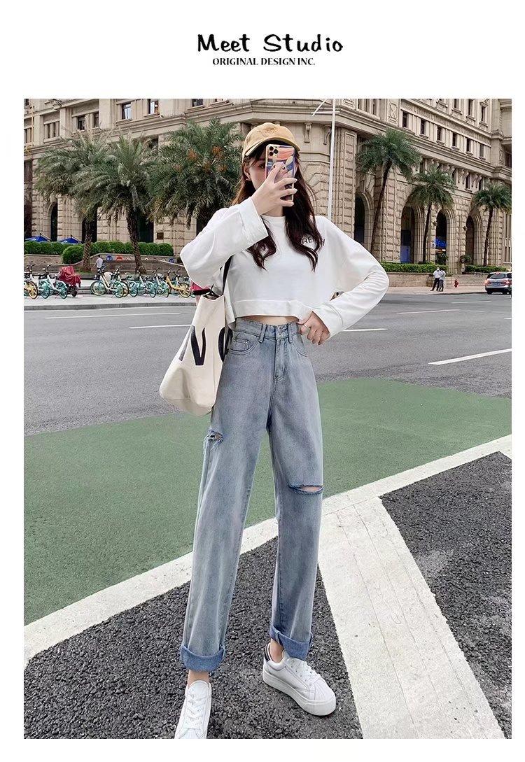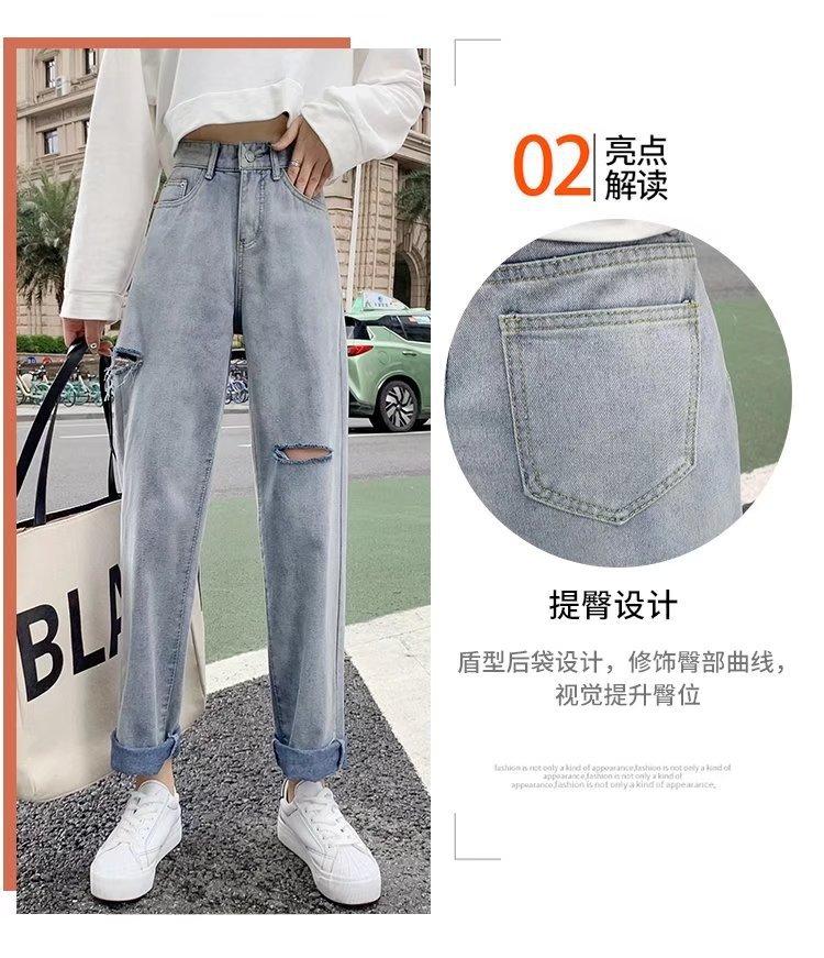 Pantalones vaqueros rotos para mujer, pantalones rectos de verano, nuevos pantalones de cintura alta, ajustados, de pierna ancha, pantalones coreanos holgados.