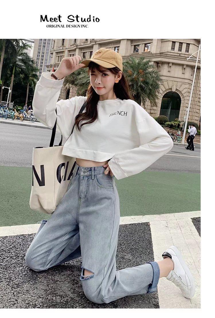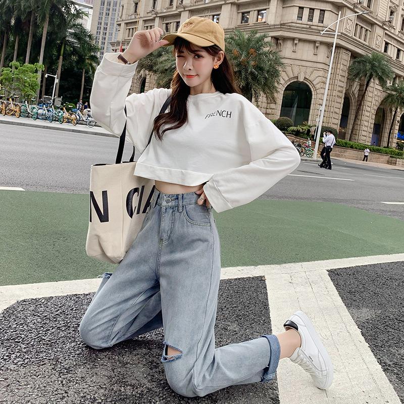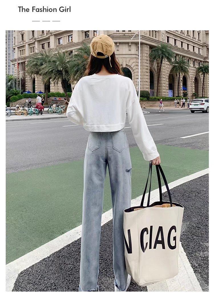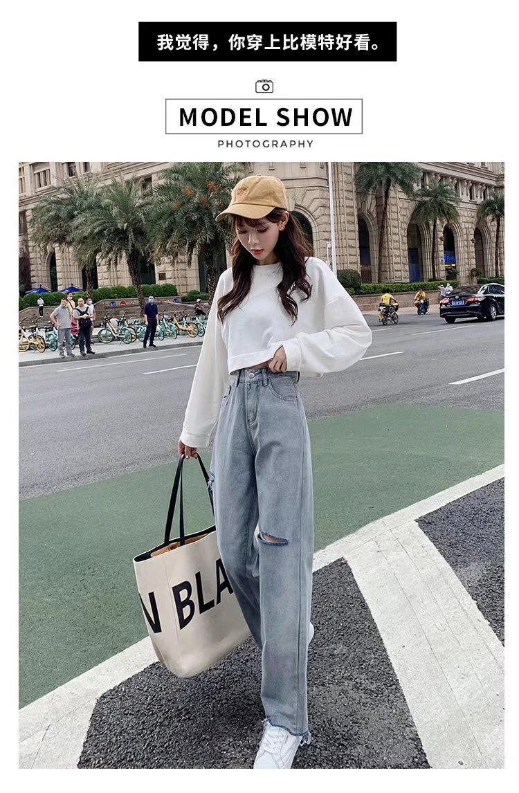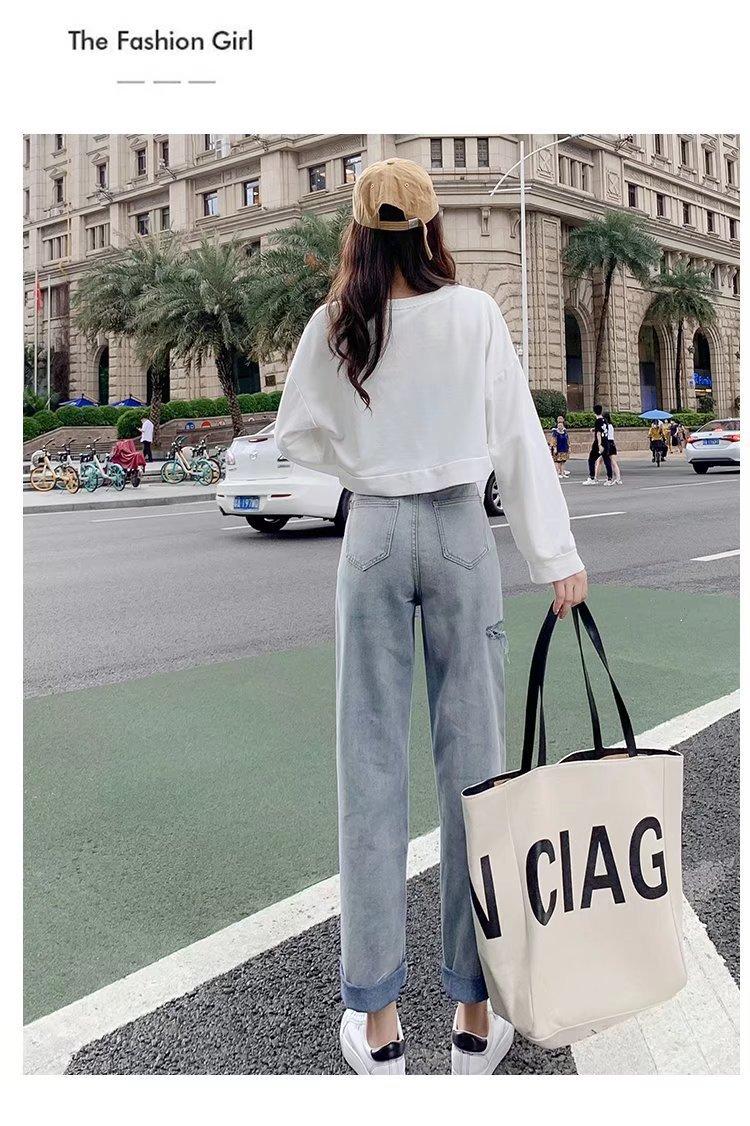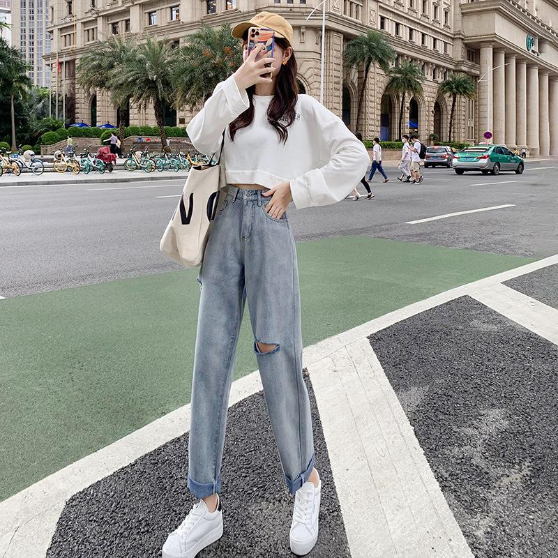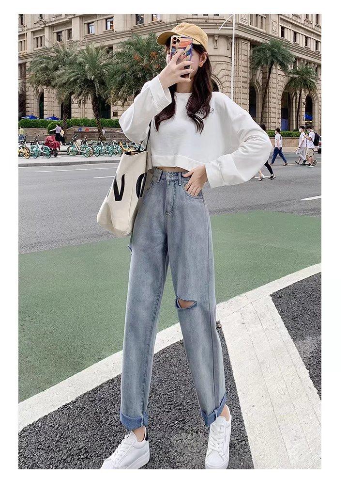 Pantalones vaqueros rotos para mujer, pantalones rectos de verano, nuevos pantalones de cintura alta, ajustados, de pierna ancha, pantalones coreanos holgados.