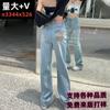 Vaqueros rotos lavados de talla grande 2024 para chicas gorditas en verano, pantalones de pierna ancha, rectos, sueltos y de cintura alta.