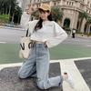 Pantalones vaqueros altos, holgados, de pierna ancha, de color claro, con bordes sin rematar, para mujer, estilo nuevo de verano, con cintura alta y ajustados.