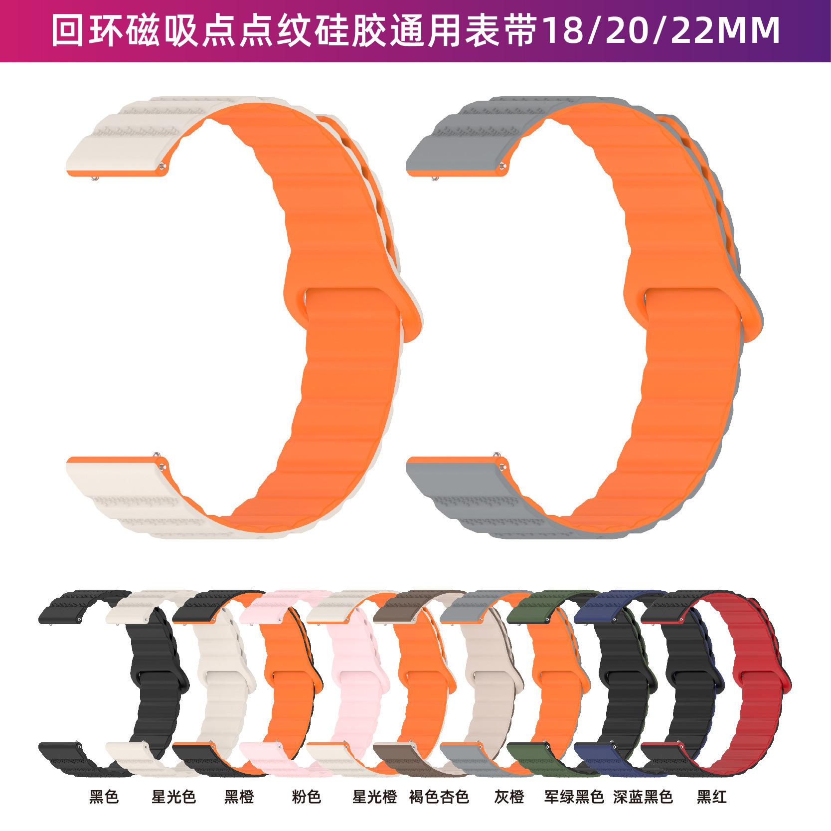Correa de repuesto de silicona de doble color con bucle magnético fuerte de 20 mm compatible con Huawei Watch y Samsung Jiaming.