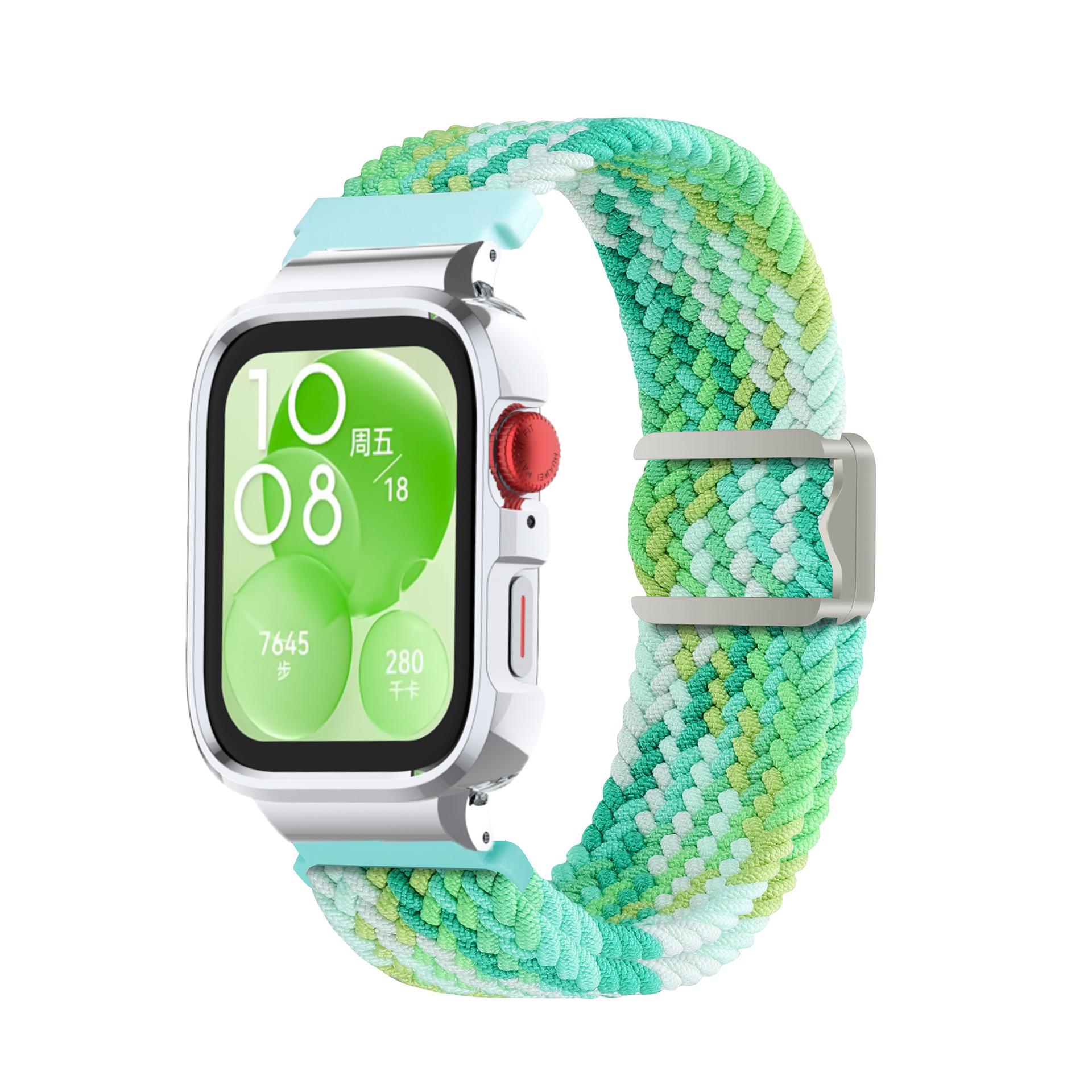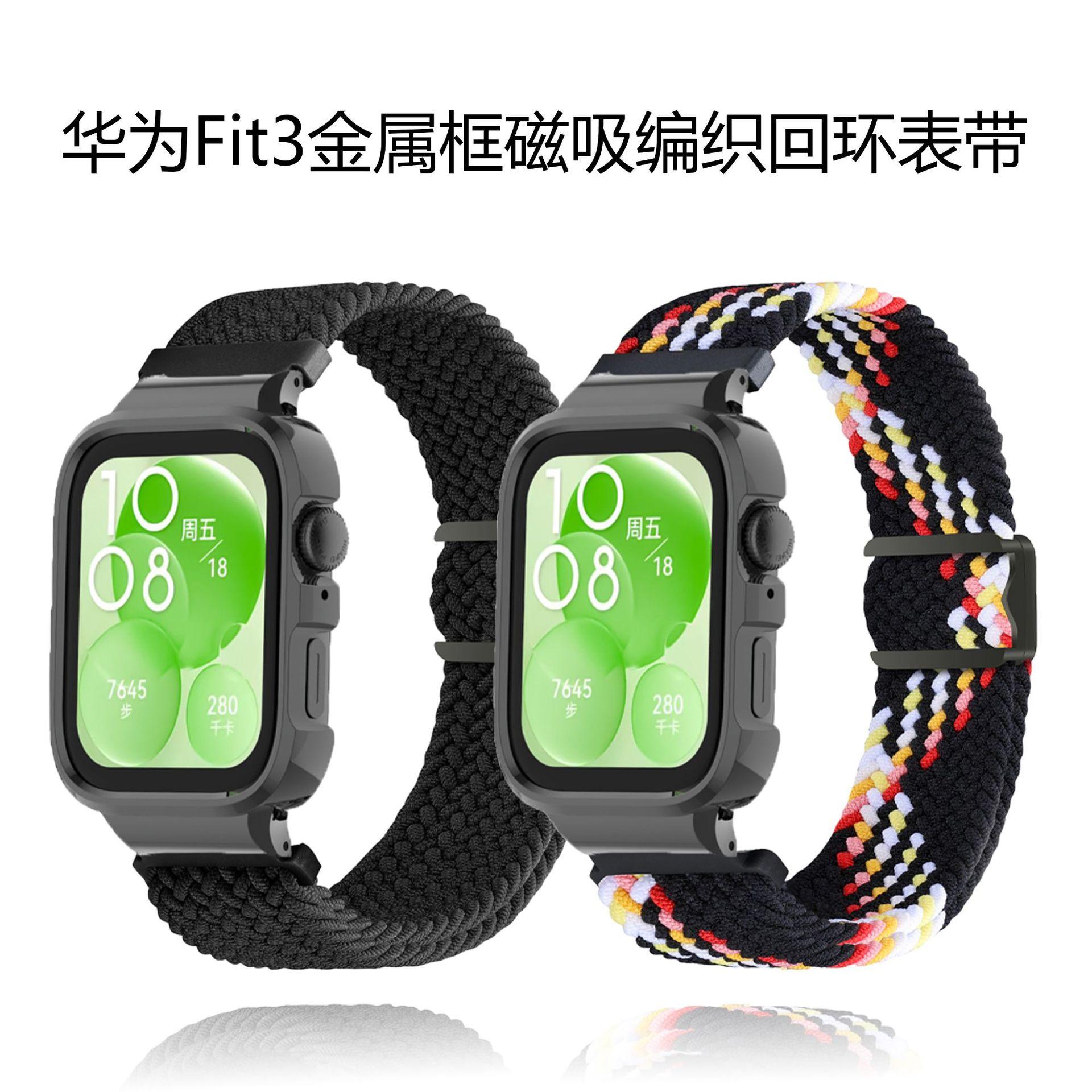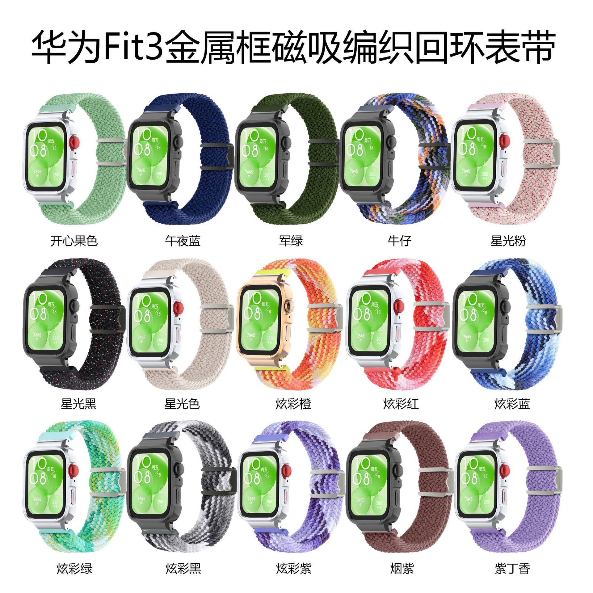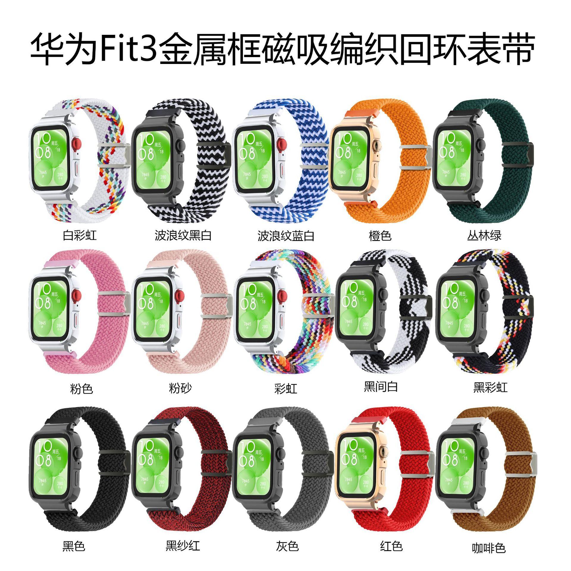 Correa para Huawei Watch Fit3 con hebilla magnética, correa de nailon elástica trenzada, marco de metal magnético