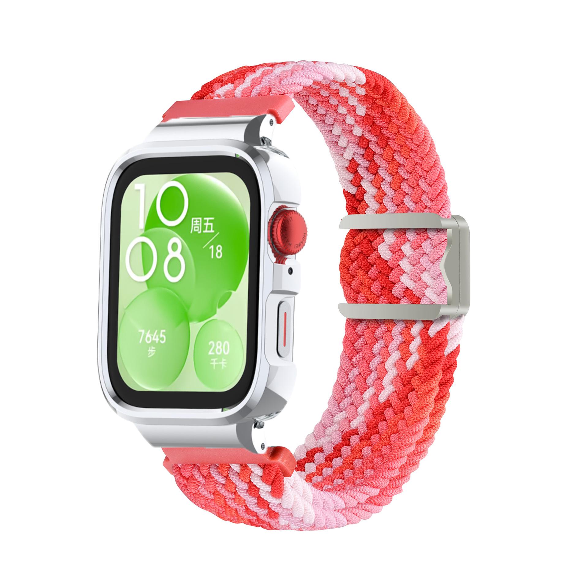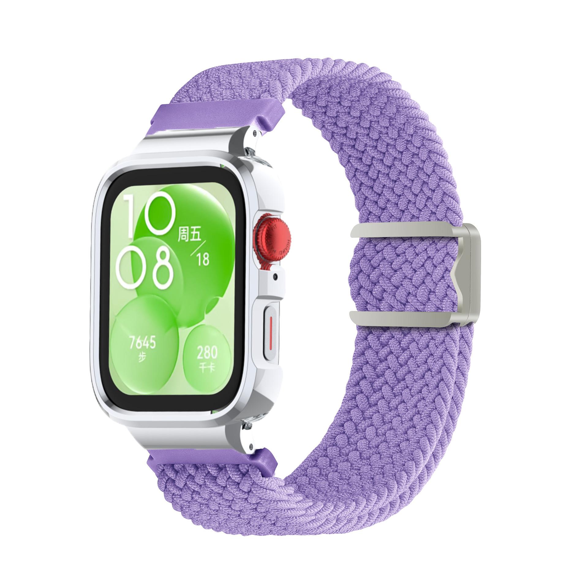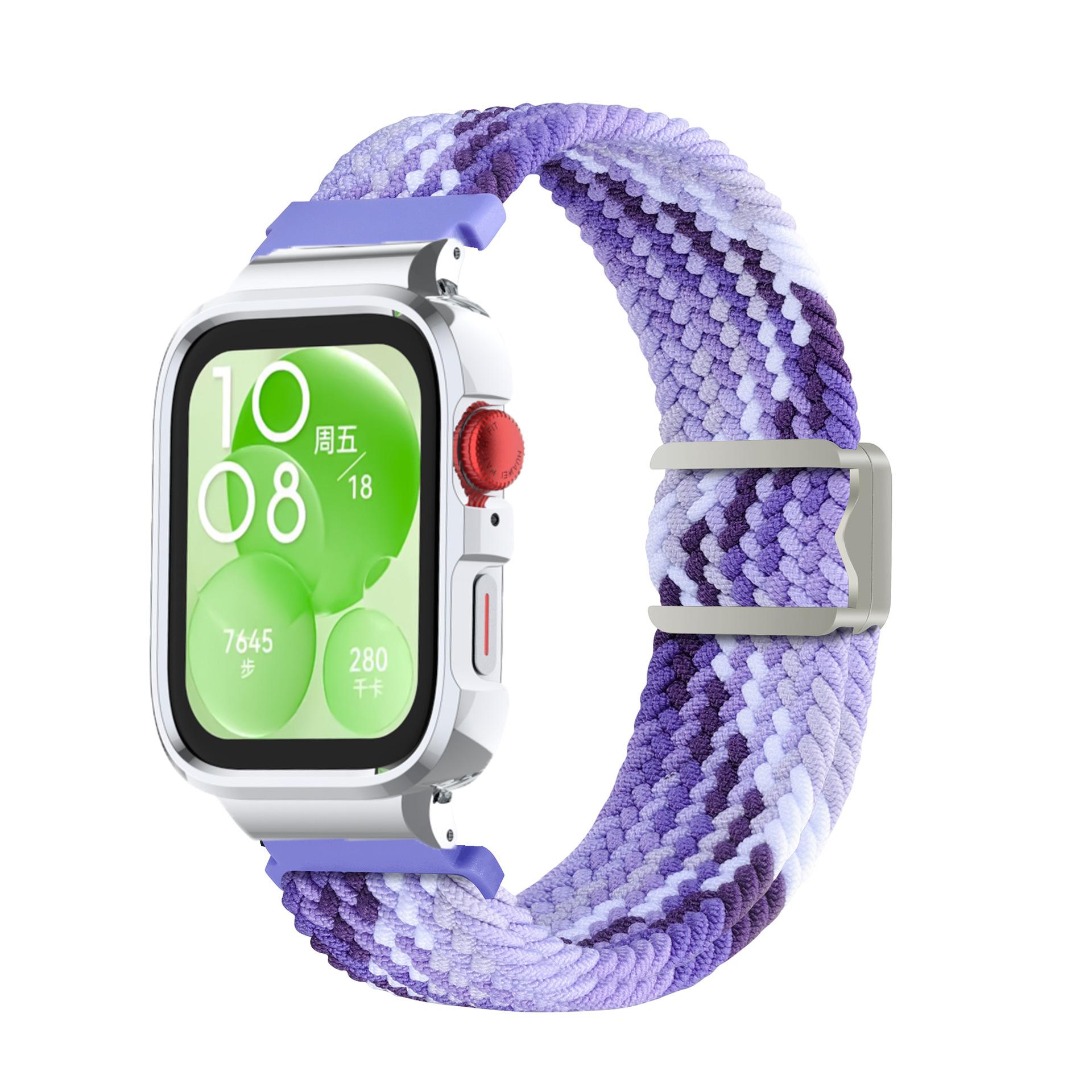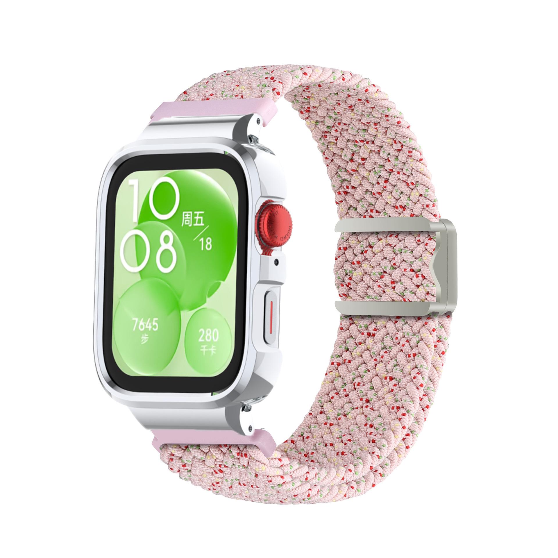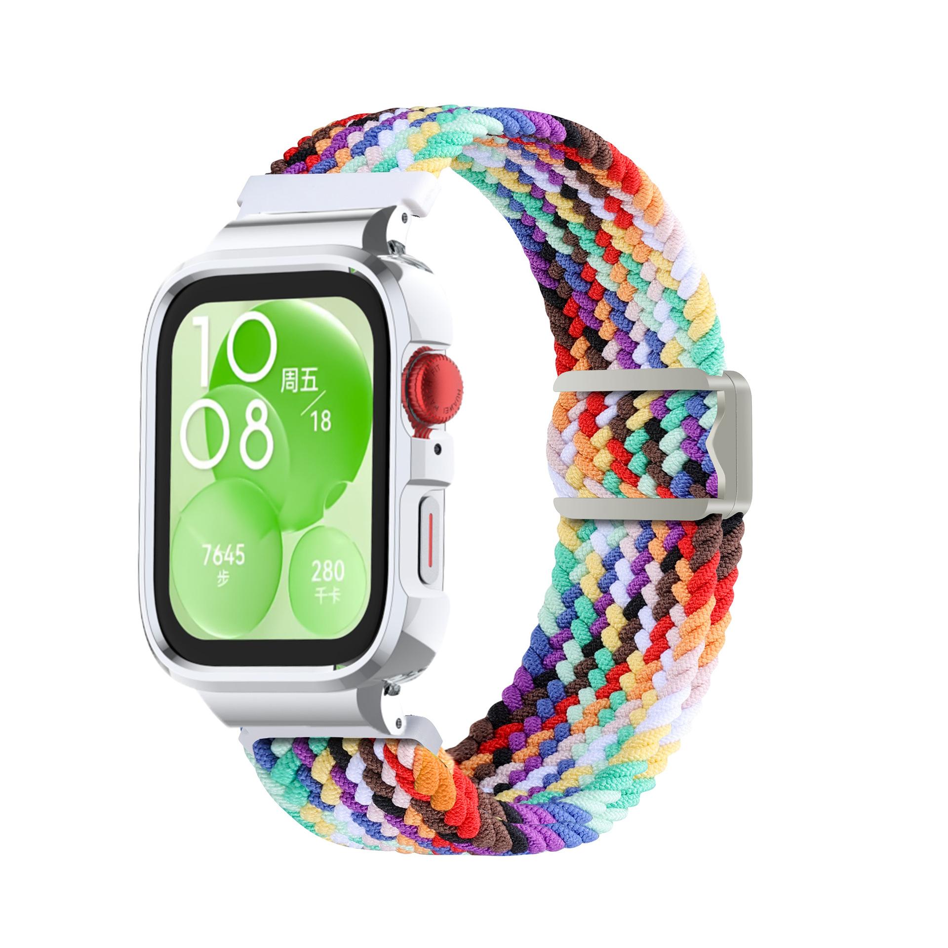 Correa para Huawei Watch Fit3 con hebilla magnética, correa de nailon elástica trenzada, marco de metal magnético