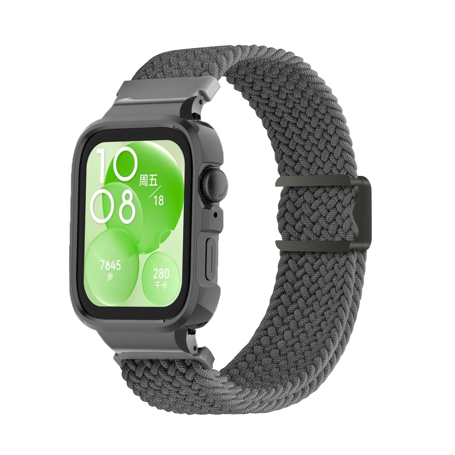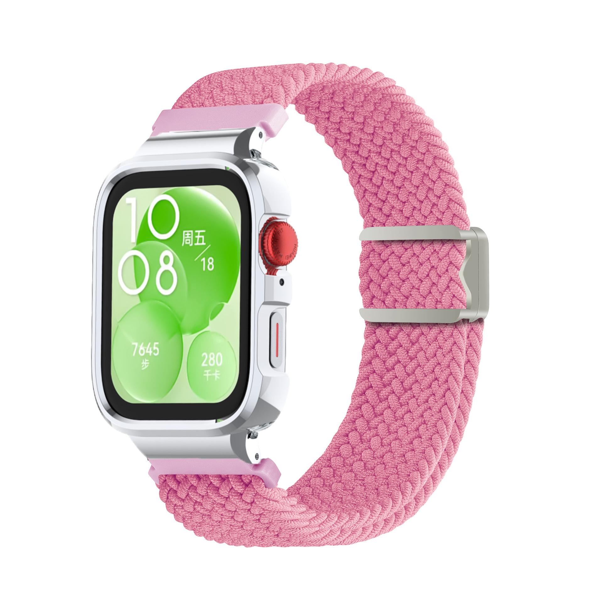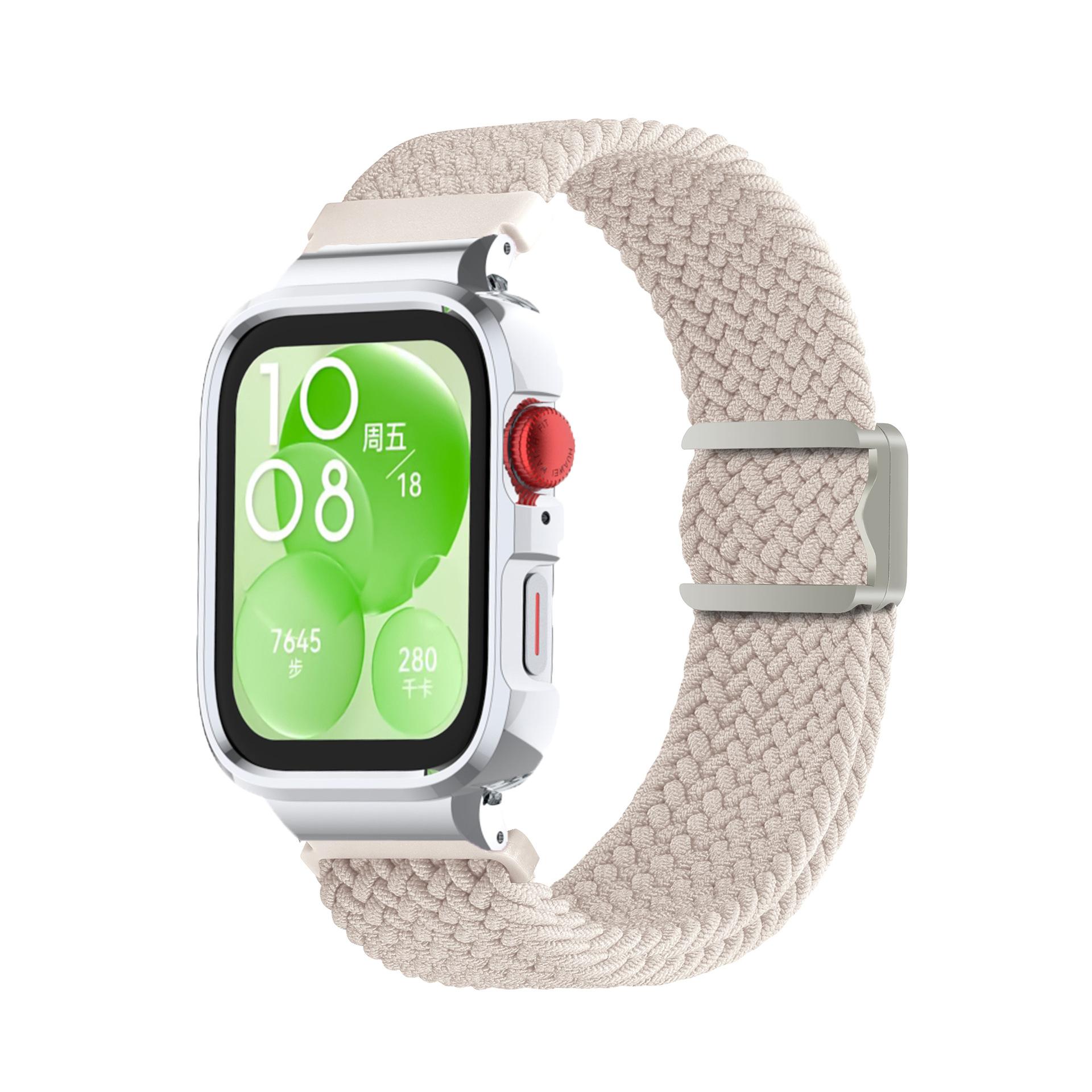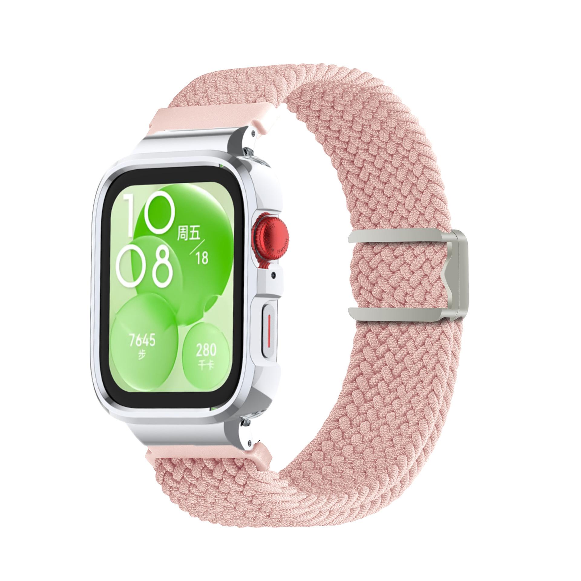 Correa para Huawei Watch Fit3 con hebilla magnética, correa de nailon elástica trenzada, marco de metal magnético