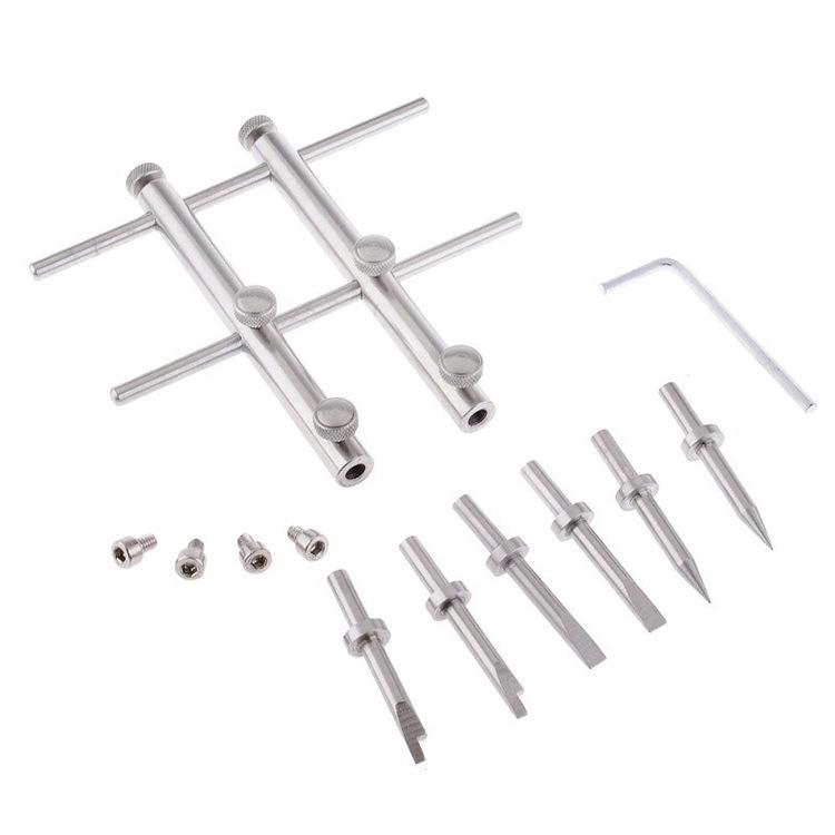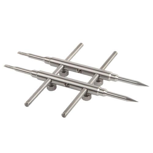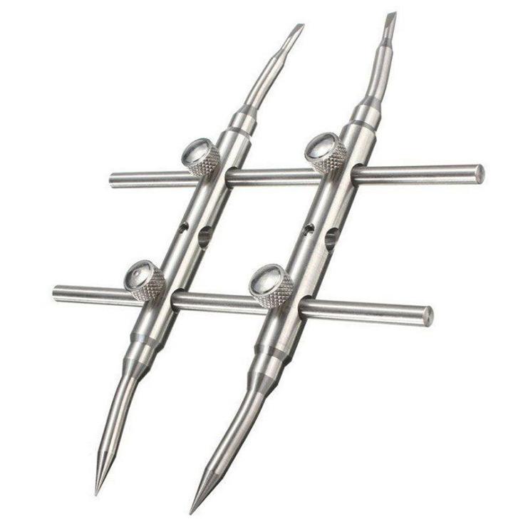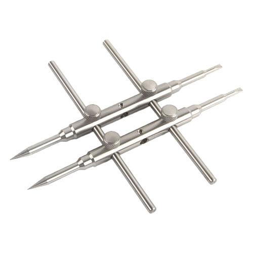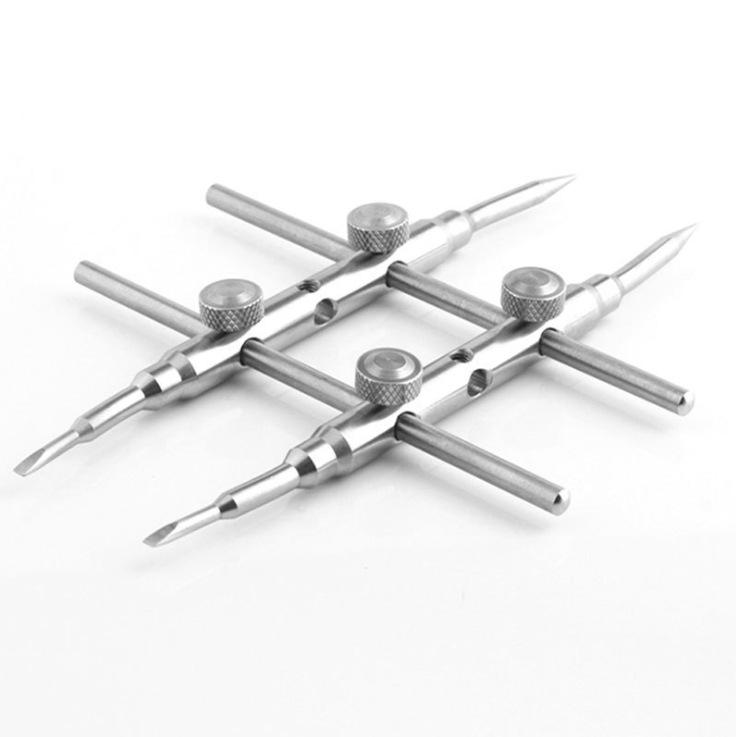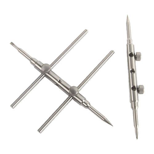 Fabricada en acero inoxidable 303 de alta dureza, es utilizada por personal de mantenimiento profesional en estaciones de mantenimiento para desmontar y montar diversas lentes. Su apertura es de 25 a 110 mm. Es fácil de usar. Sus tres filas de orificios permiten extender la herramienta para penetrar el cuerpo de la lente. Permite desmontar lentes de cine de 25 mm, supertelescopios de 110 mm, prismas de topografía, microscopios, telescopios para observación de aves, etc.