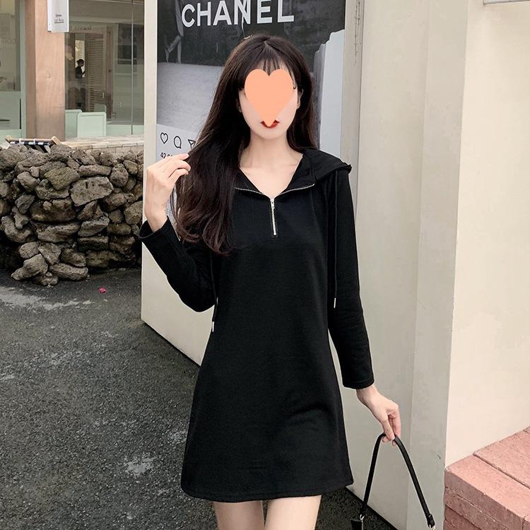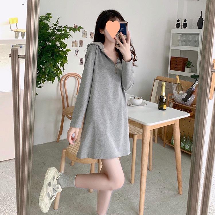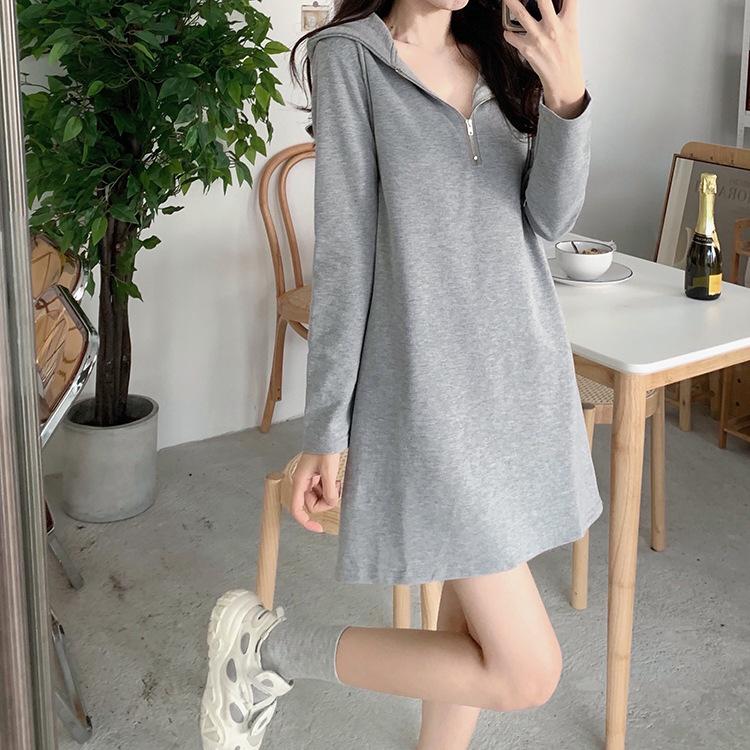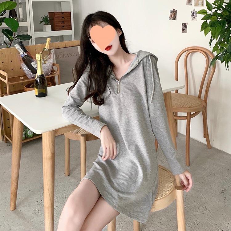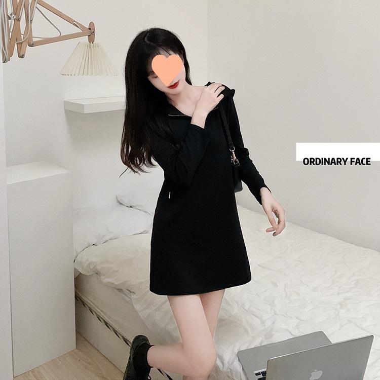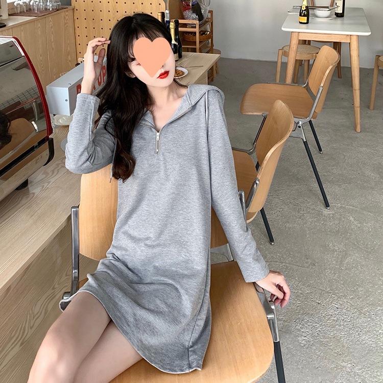 Compra Vestido de suéter con capucha para chica gordita para mujer, otoño e invierno, nuevo, ropa de mujer de talla grande, vestido de parte inferior suelto y adelgazante de longitud media al por mayor en Joom.pro