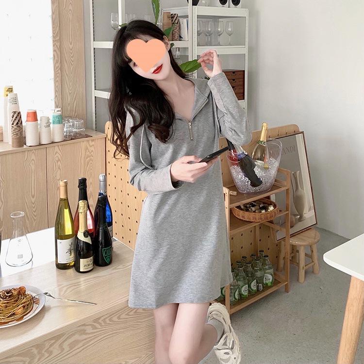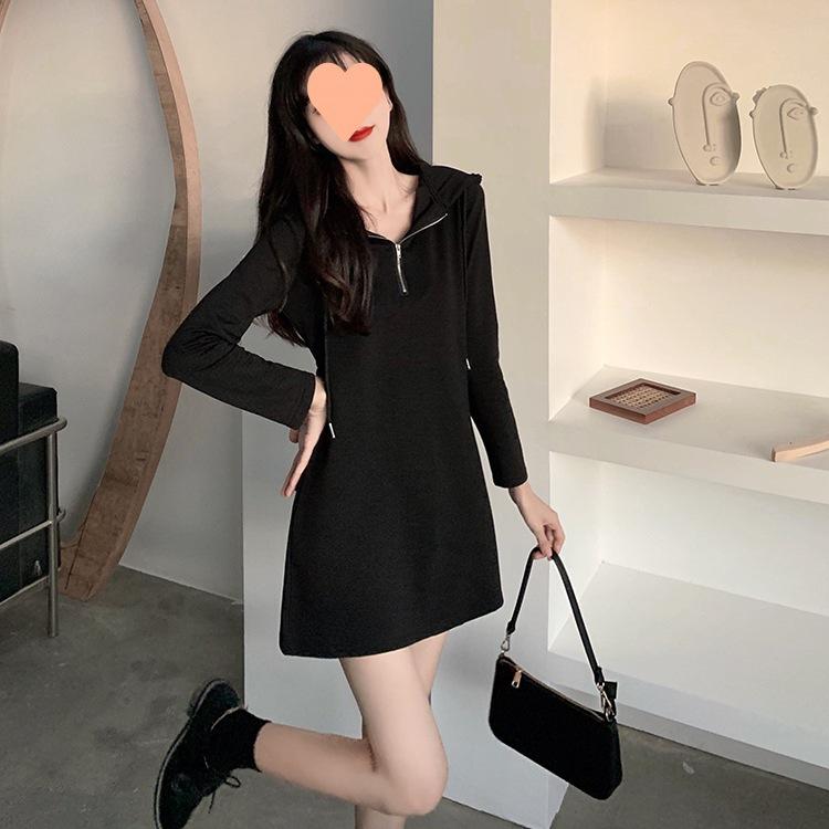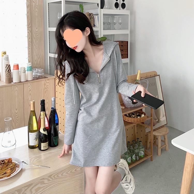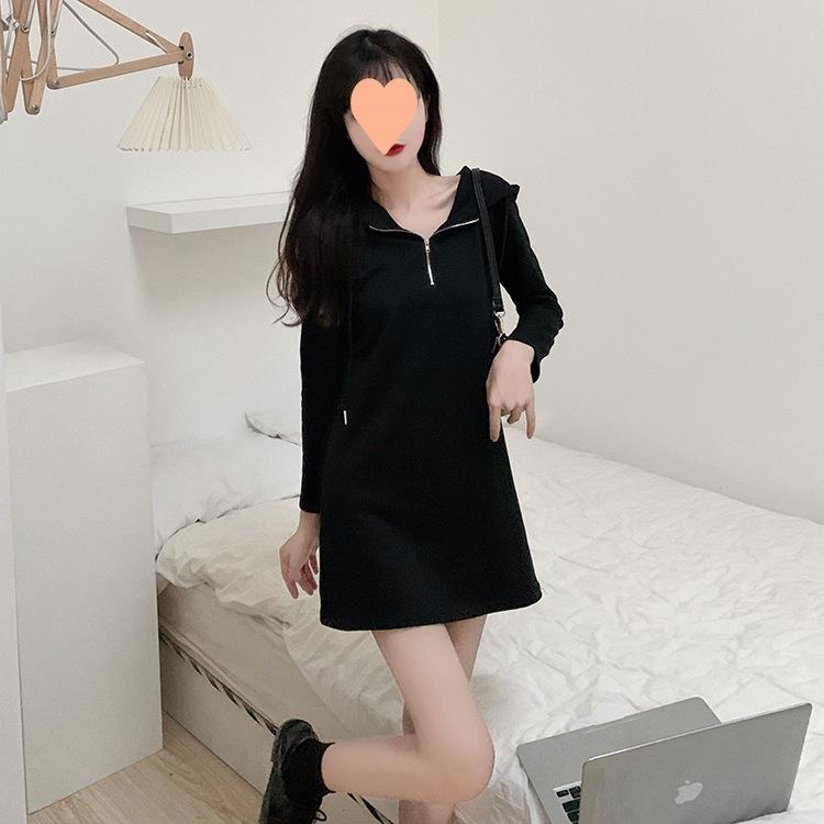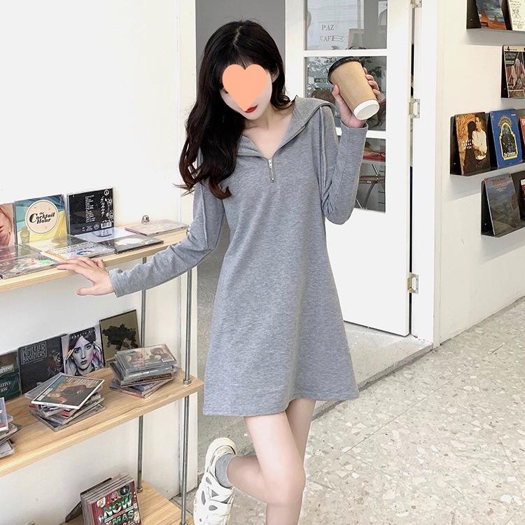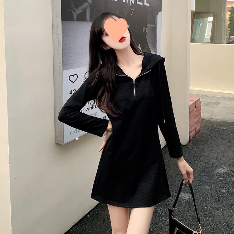 Compra Vestido de suéter con capucha para chica gordita para mujer, otoño e invierno, nuevo, ropa de mujer de talla grande, vestido de parte inferior suelto y adelgazante de longitud media al por mayor en Joom.pro