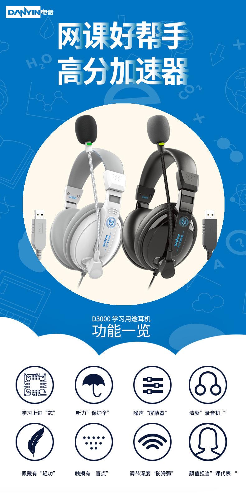 Auriculares de Música Electrónica Auriculares para Computadora D3000 Evaluación de Escucha con Habla en Inglés Auriculares Dedicados para Exámenes Dedicados a la Enseñanza Exámenes