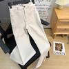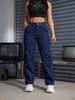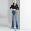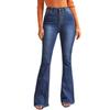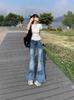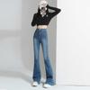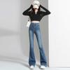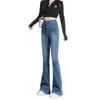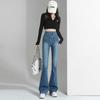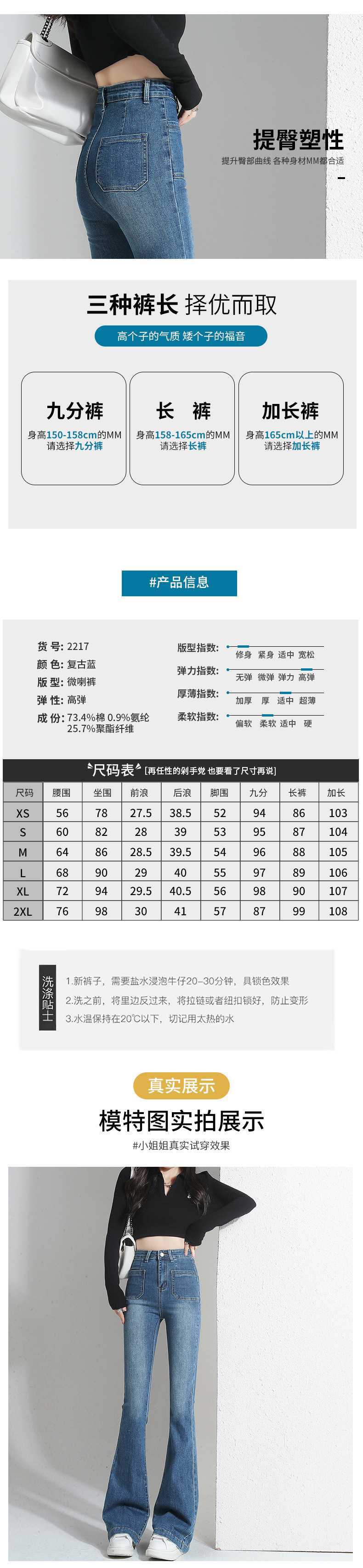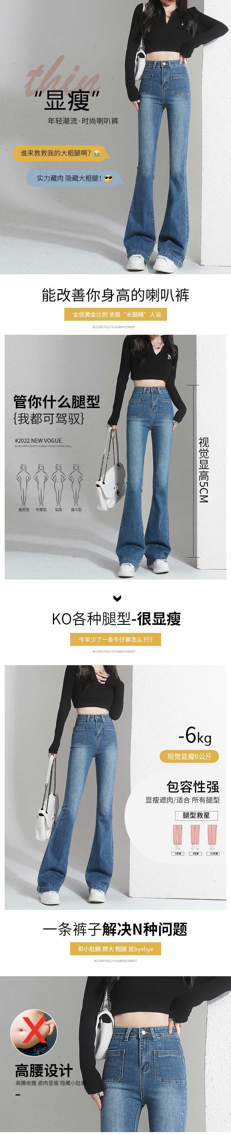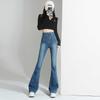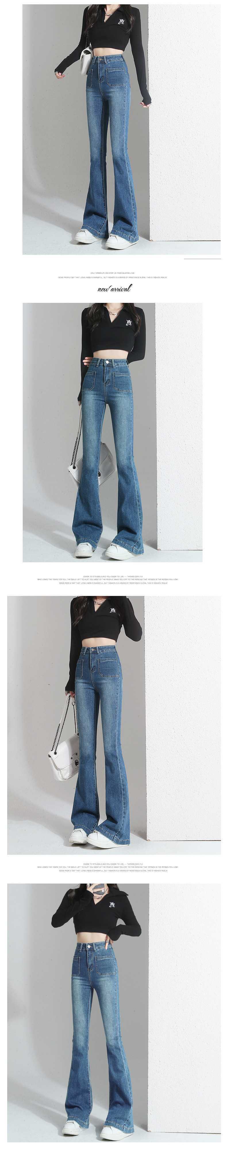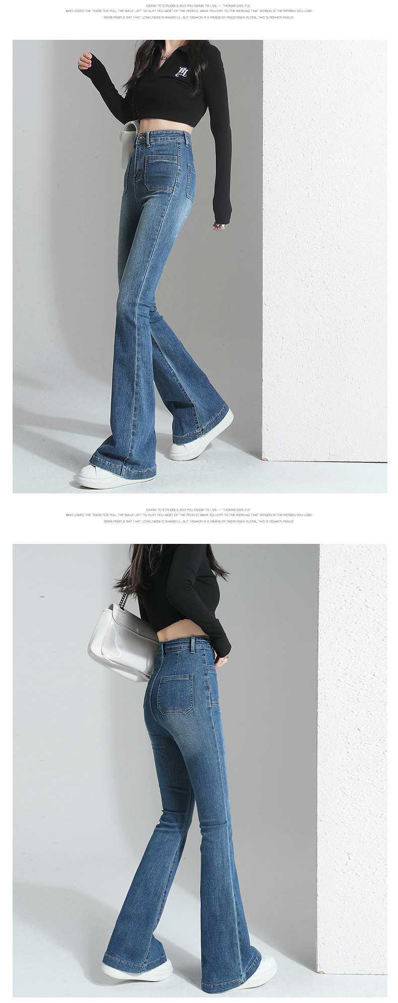 Pantalones acampanados de cintura alta azul retro de buena calidad con doble bolsillo, pantalones cortos, vaqueros largos