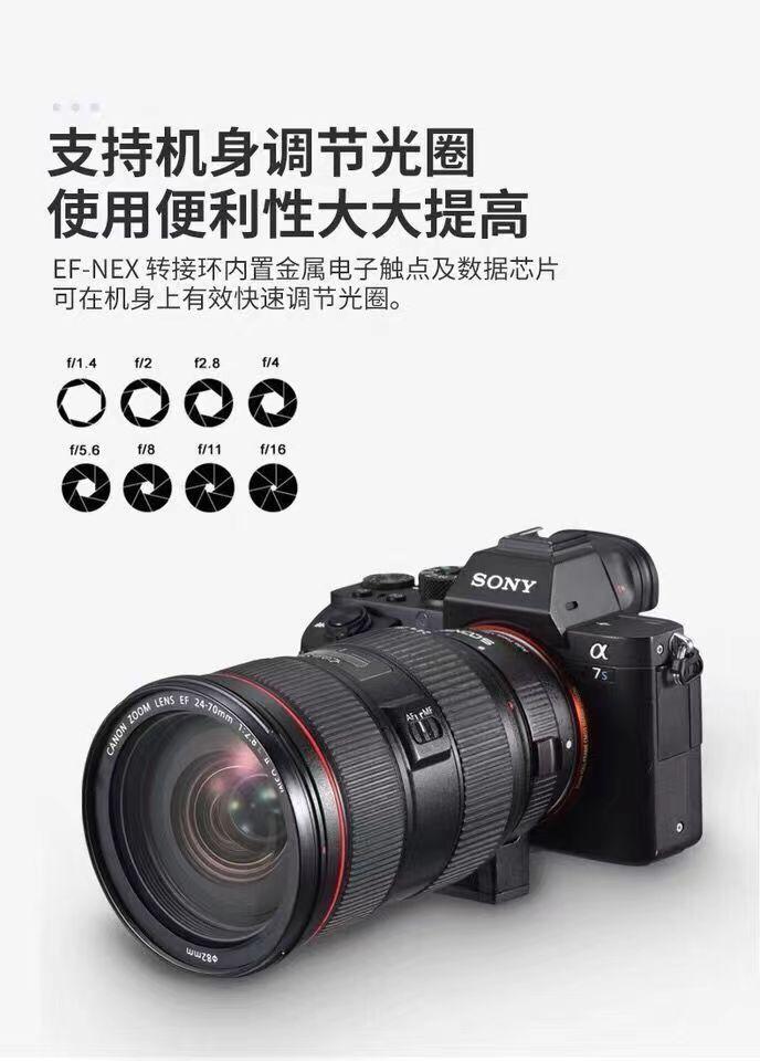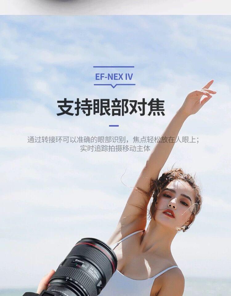 Anillo adaptador de enfoque automático sin espejo de cuarta generación Ef-Nex IV para lentes Canon Ef a montura E de Sony