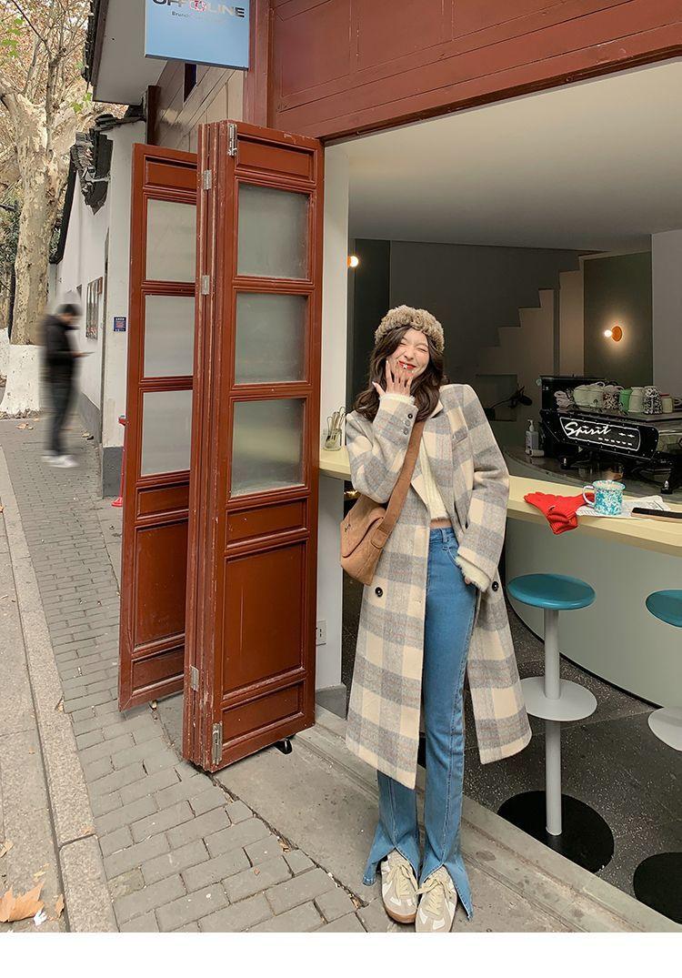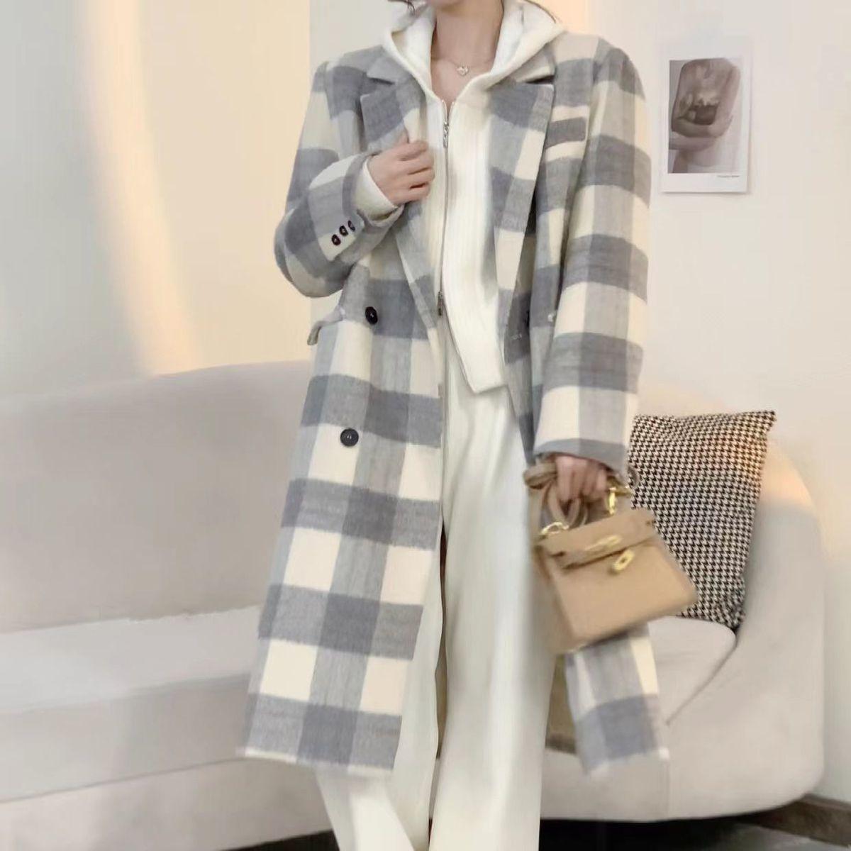 Abrigo de Lana Estilo Hepburn para Mujer en Otoño e Invierno 2025 Nuevo Estilo Estilo Urbano Abrigo de Lana de Largo Medio Engrosado