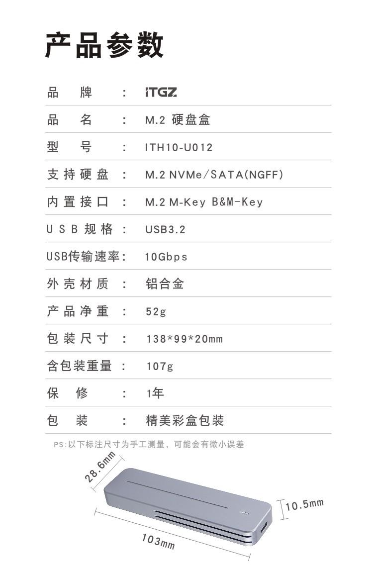 Caja de disco duro de estado sólido ITGZ m.2 NVMe/SATA RTL9210B, protocolo dual, 10 Gbps, caja externa de aleación de aluminio