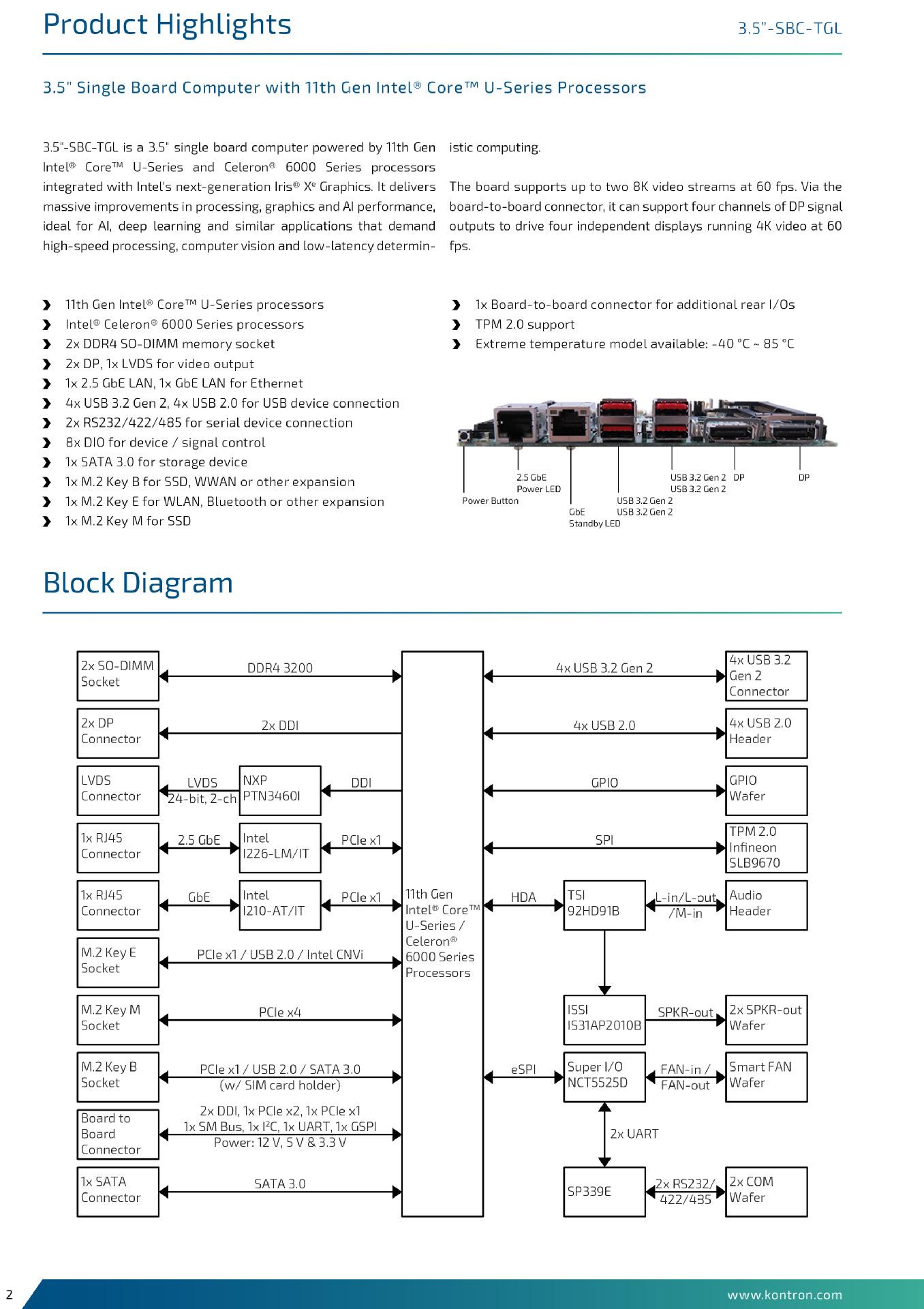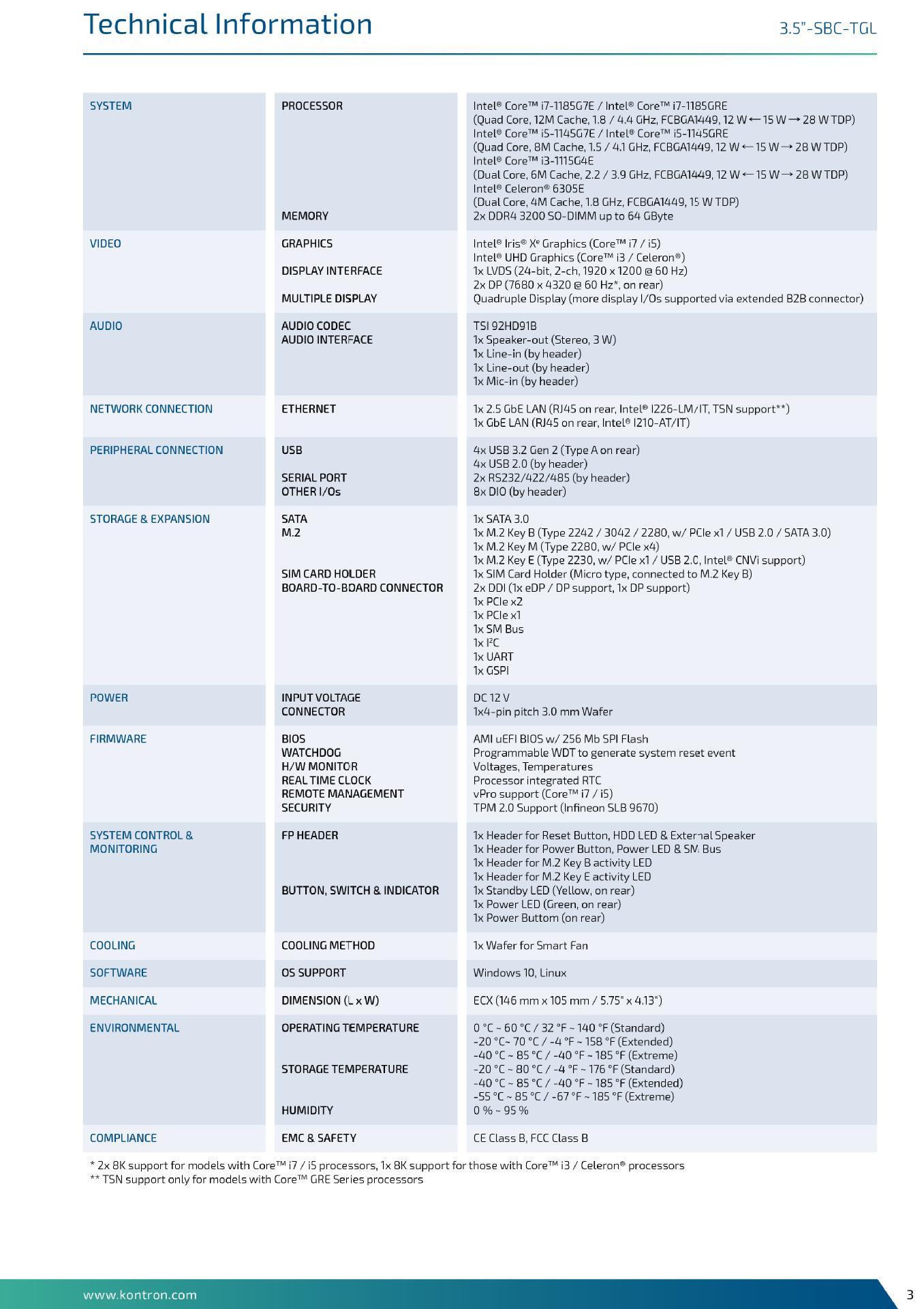Kontron Control Placa Base SBC de 3.5" Serie Tiger Lake Placa Base de Control Industrial Placa Base Modular